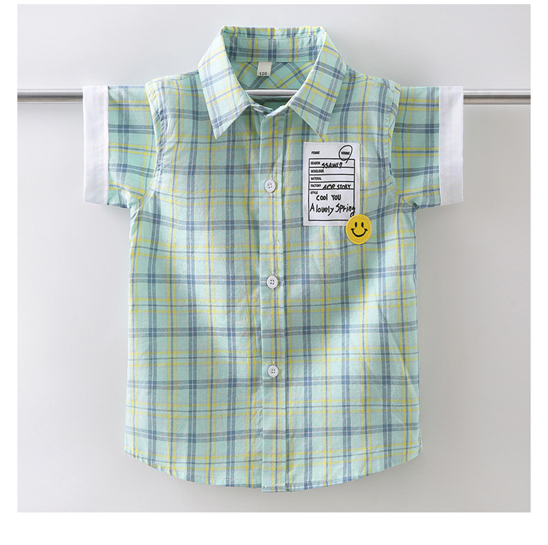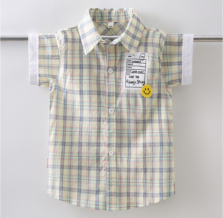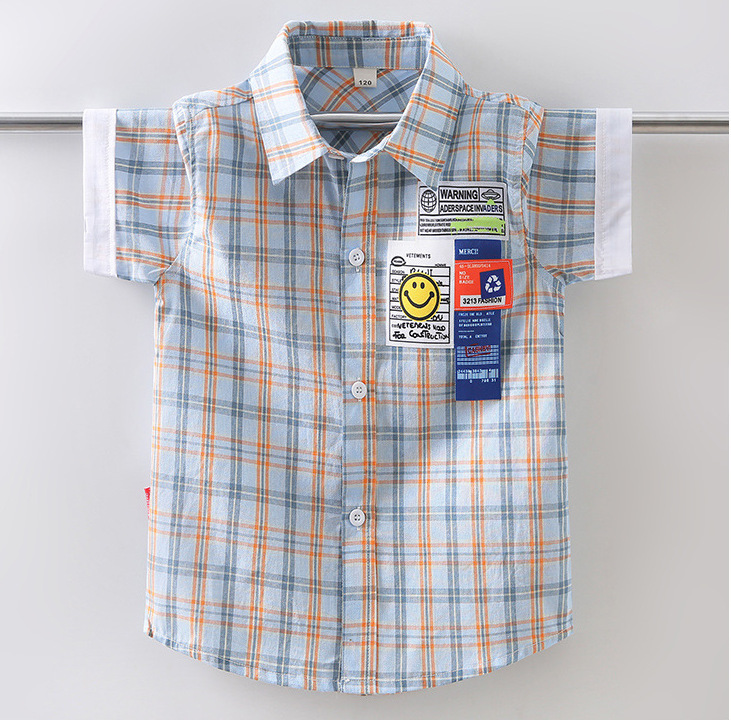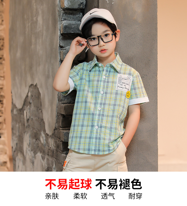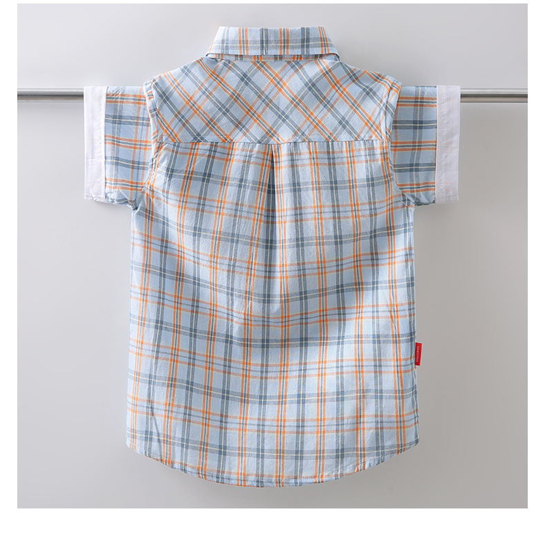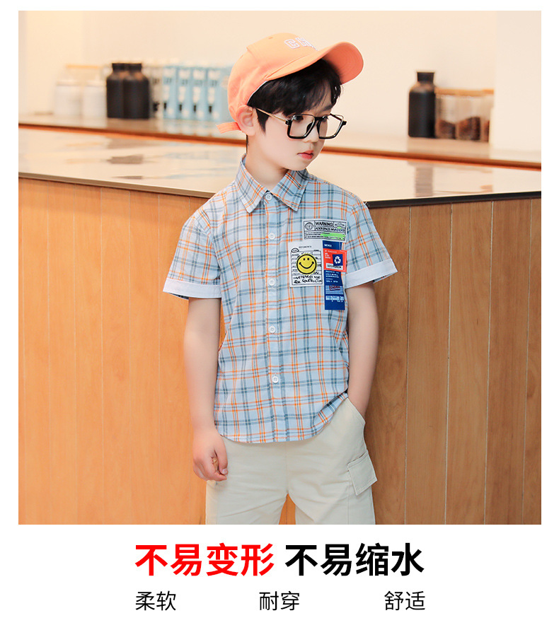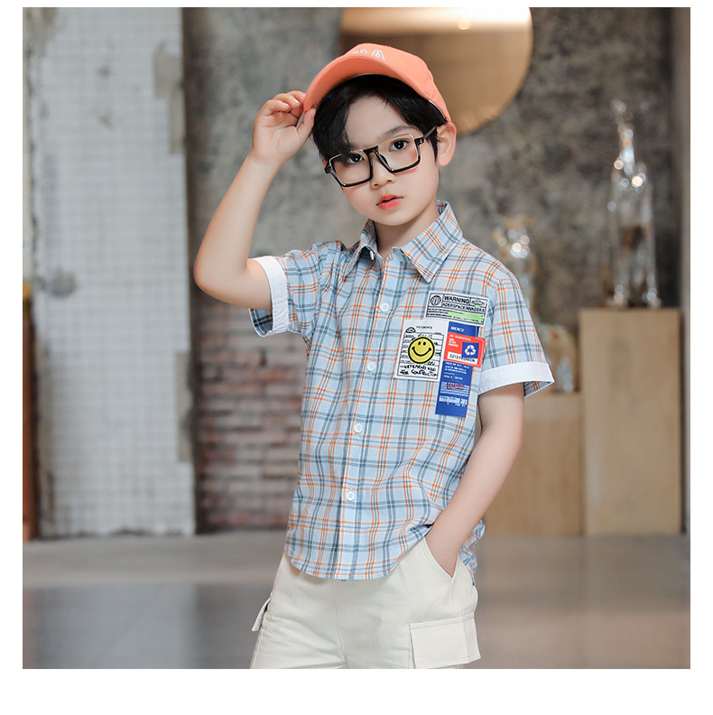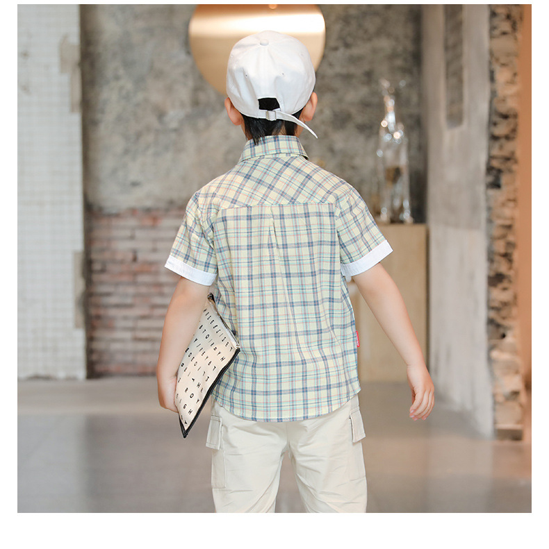 새로운 소년 셔츠 반팔 면화 어린이 격자 무늬 셔츠 큰 소년 탑 여름 캐주얼 서양식 셔츠스토어 가기