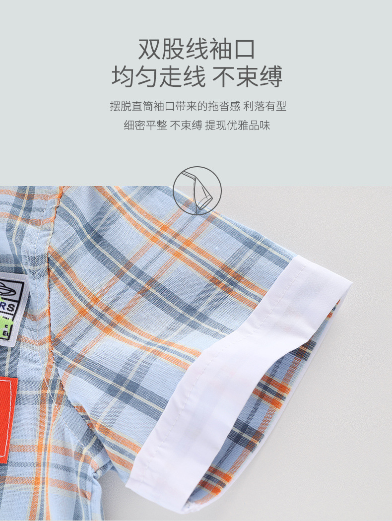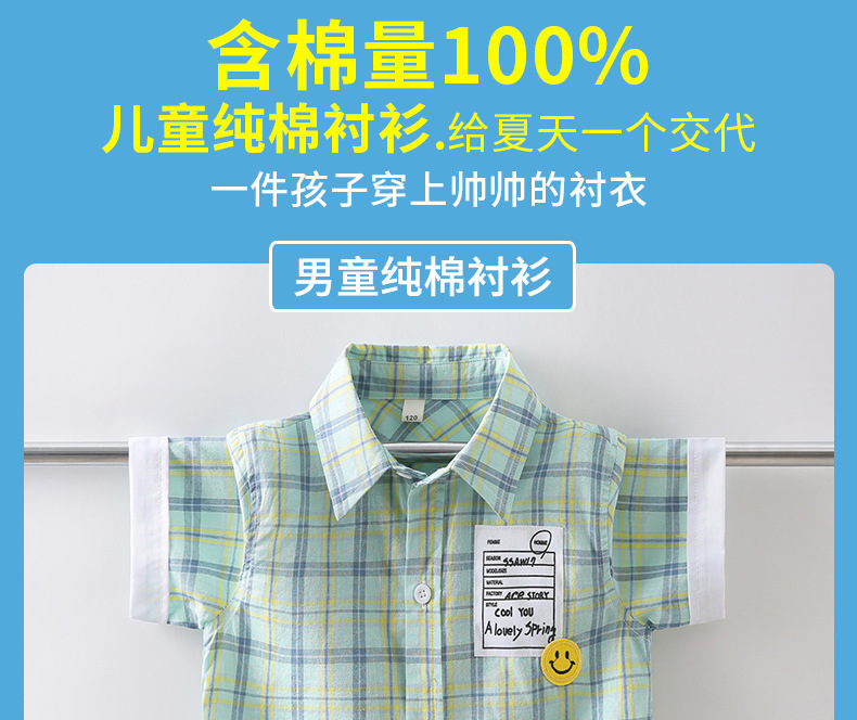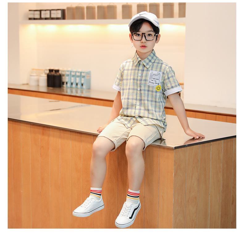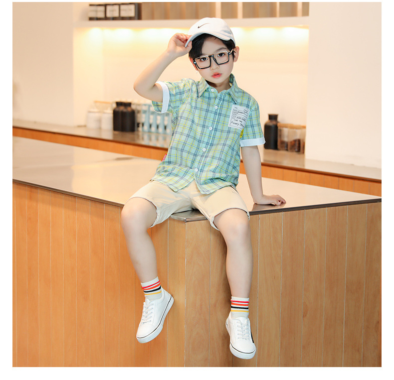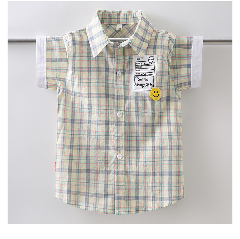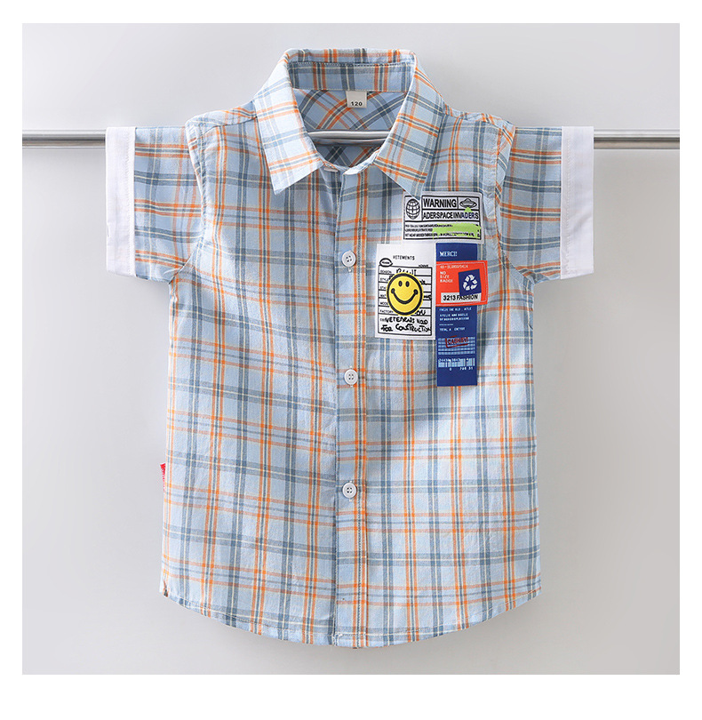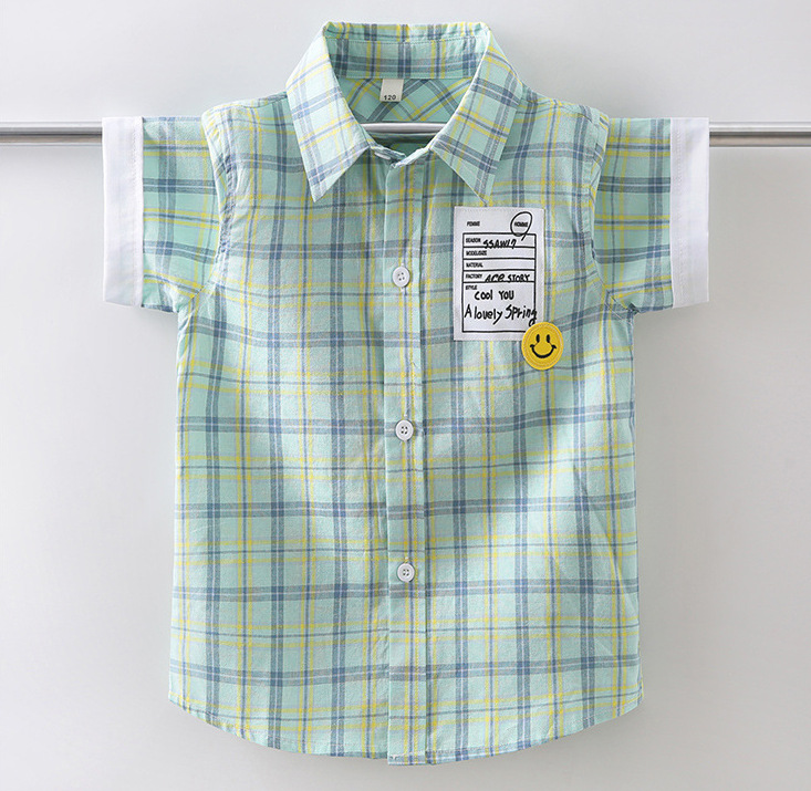 새로운 소년 셔츠 반팔 면화 어린이 격자 무늬 셔츠 큰 소년 탑 여름 캐주얼 서양식 셔츠스토어 가기