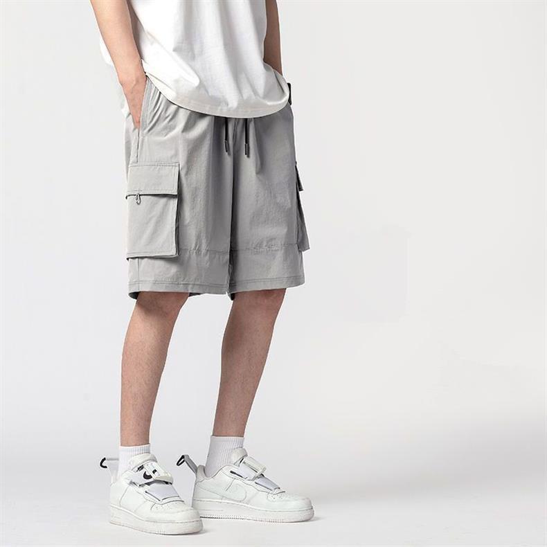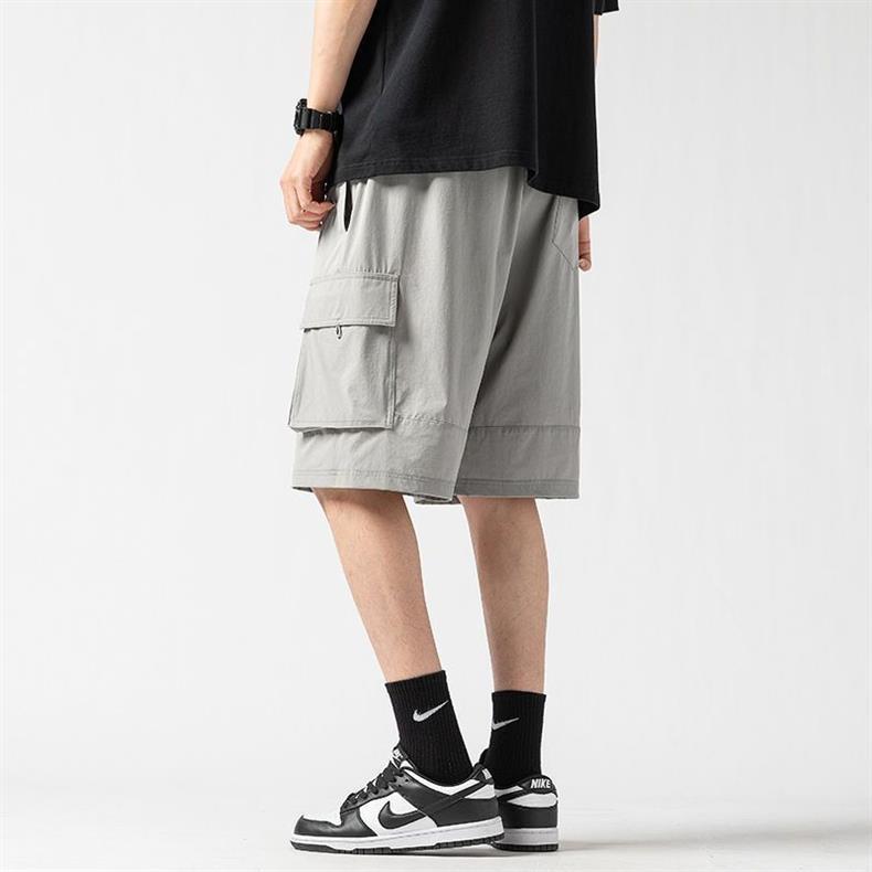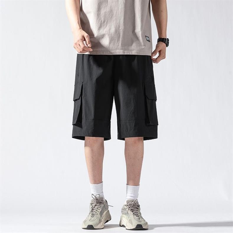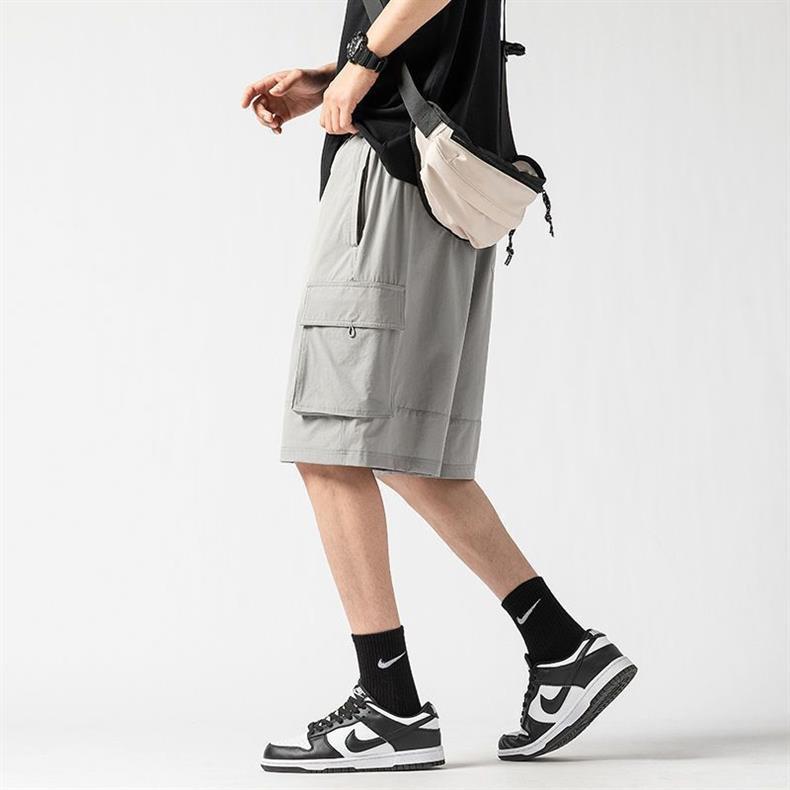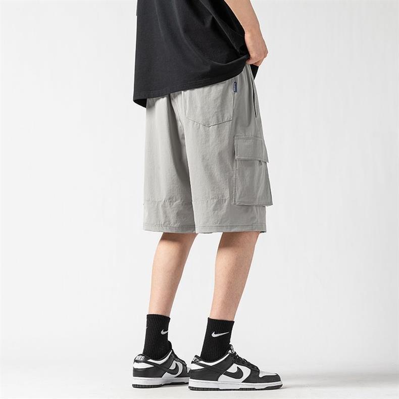 캐주얼 아이스 실크 바지 남자 2023 여름 새로운 느슨한 대형 작업복 반바지 외부 착용 스포츠 바지스토어 가기