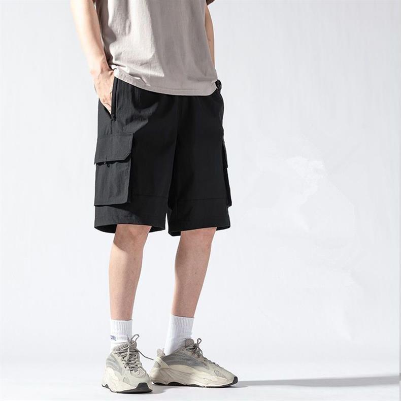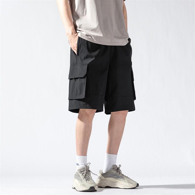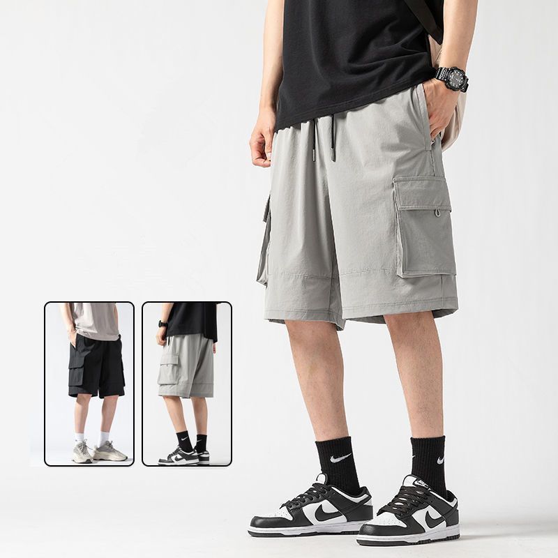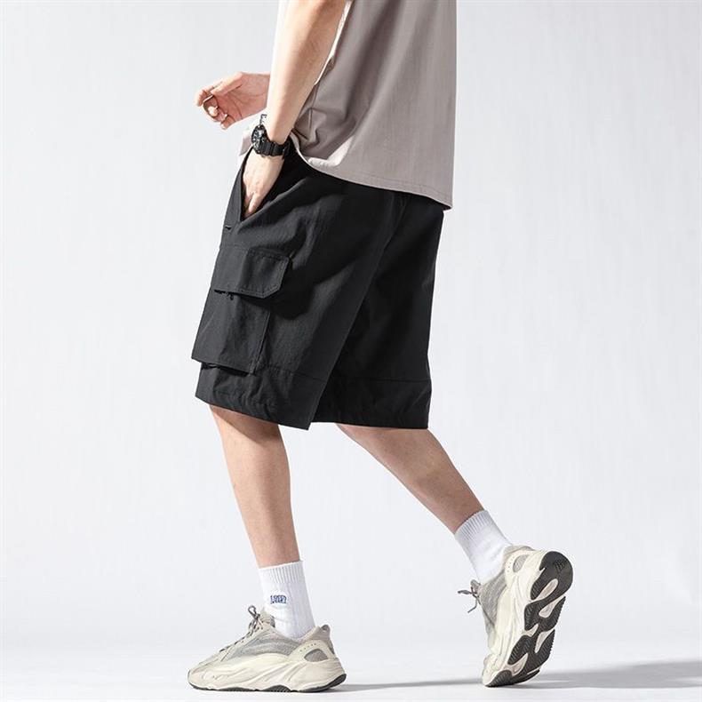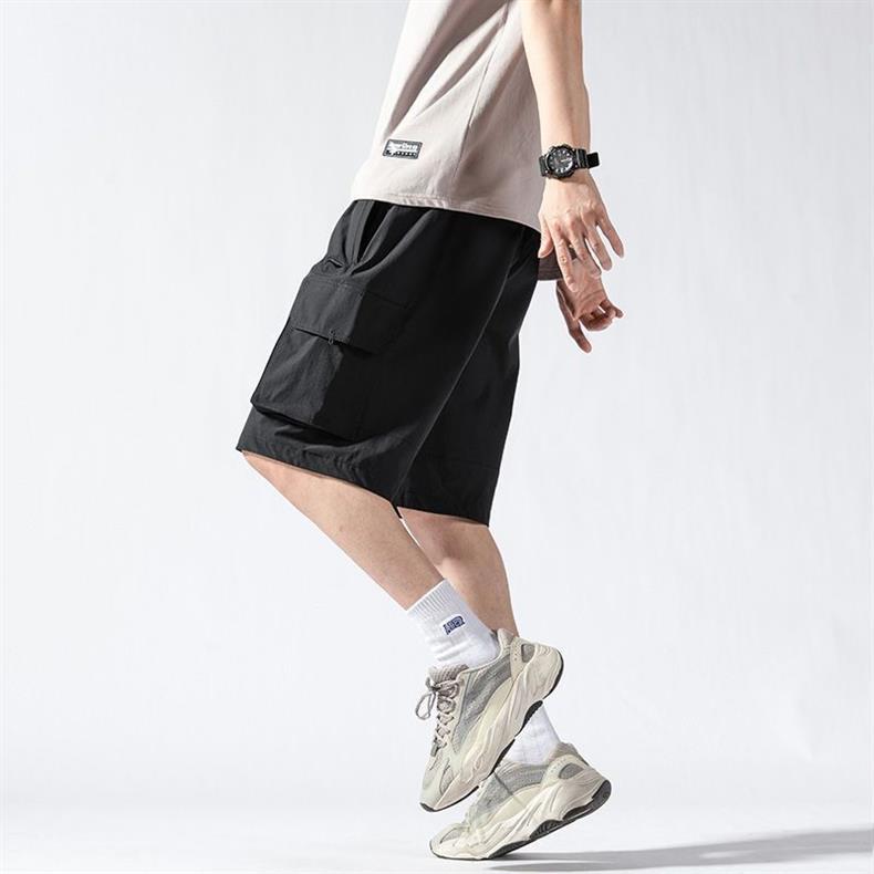 캐주얼 아이스 실크 바지 남자 2023 여름 새로운 느슨한 대형 작업복 반바지 외부 착용 스포츠 바지스토어 가기