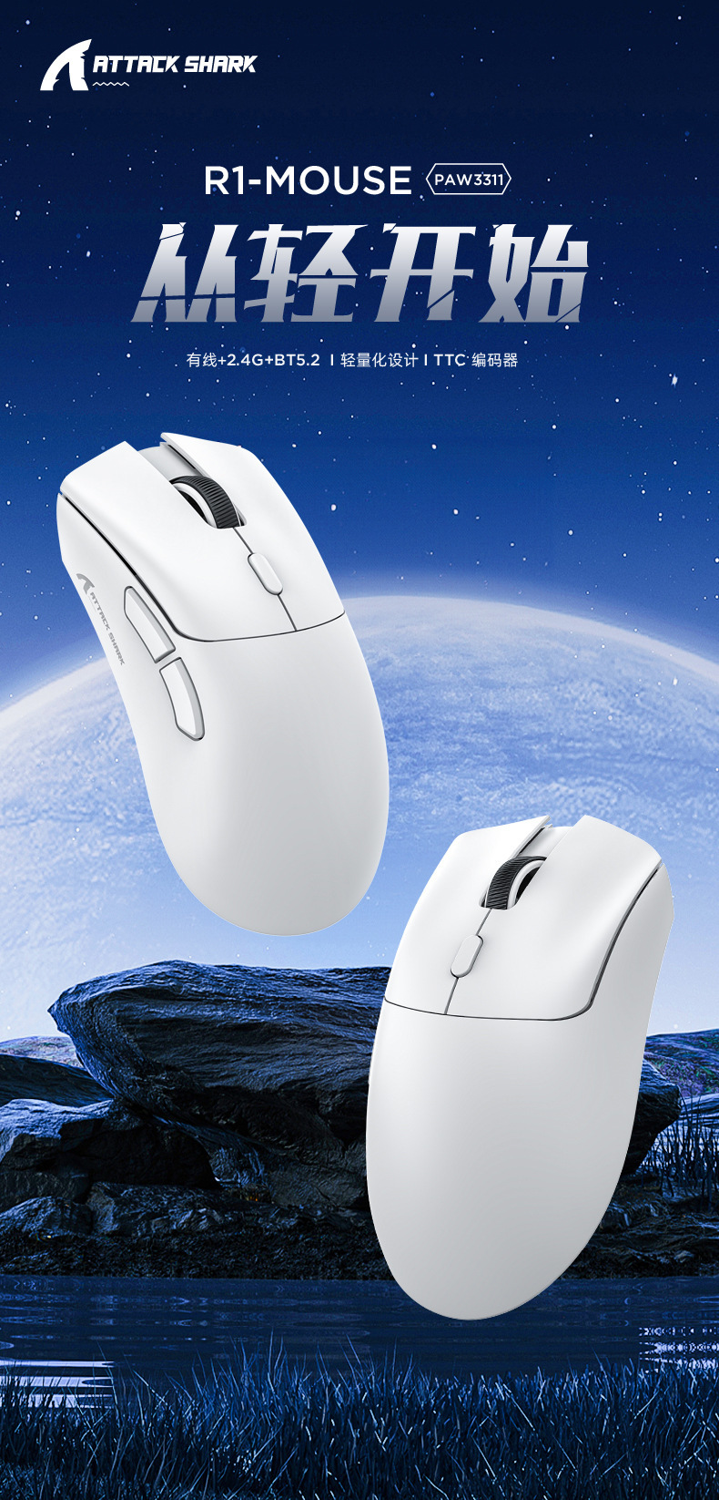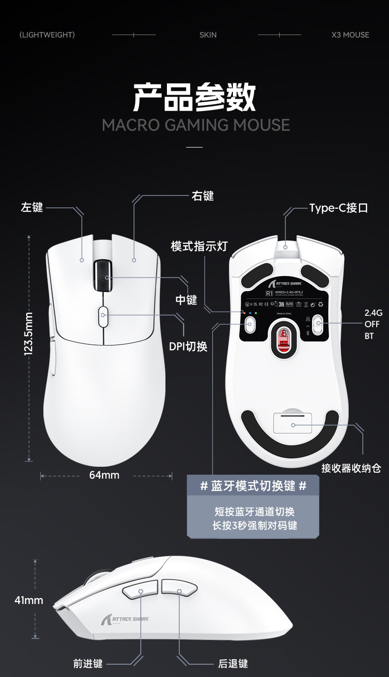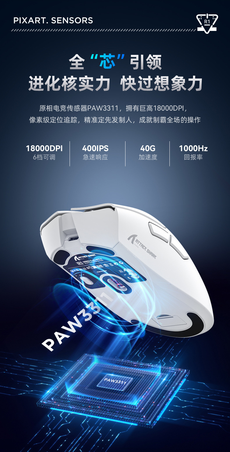 Attack Shark攻击鲨R1轻量化三模鼠标