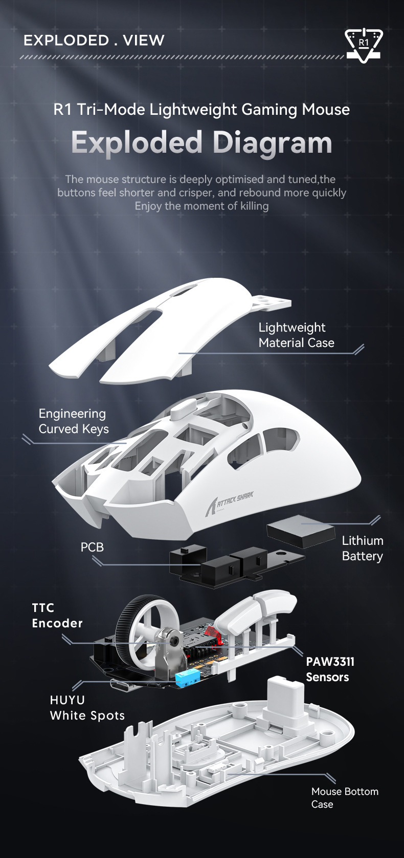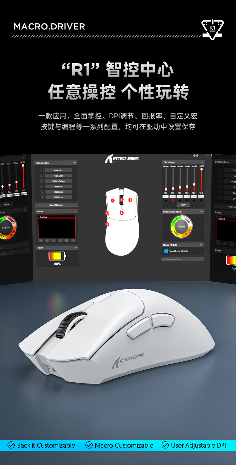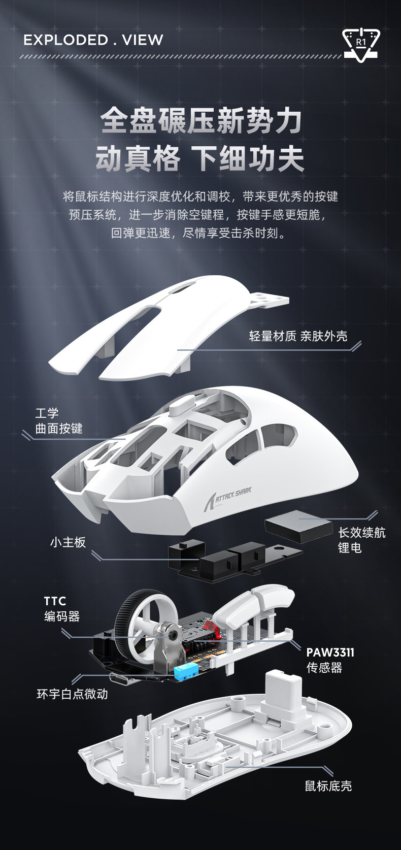 Attack Shark攻击鲨R1轻量化三模鼠标
