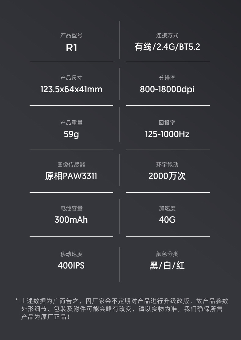 鼠标重量:59G+—3G