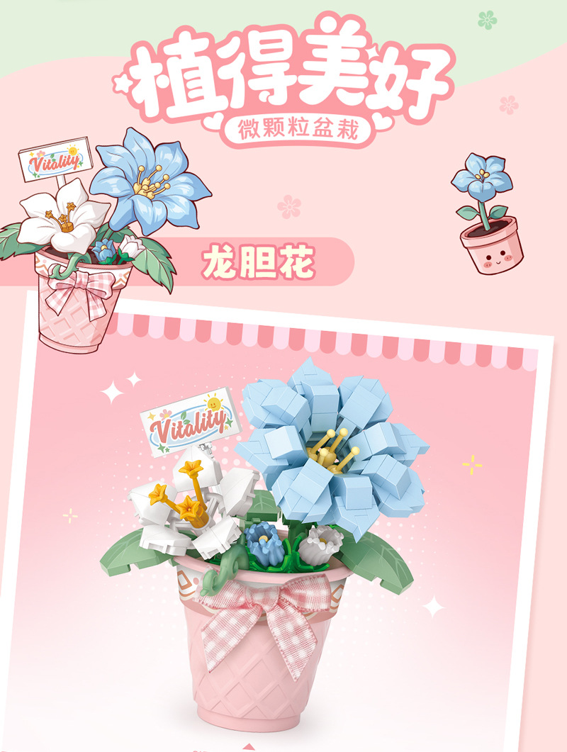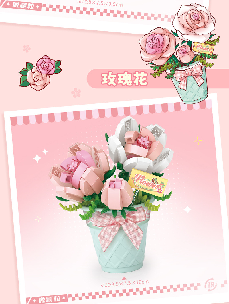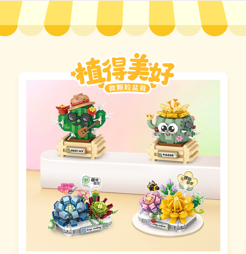LOZ8831-8834 마이크로 드릴 입자 조립 장난감 어린이용 시뮬레이션 다육식물 교육용 블록 어린이 중추절 선물스토어 가기