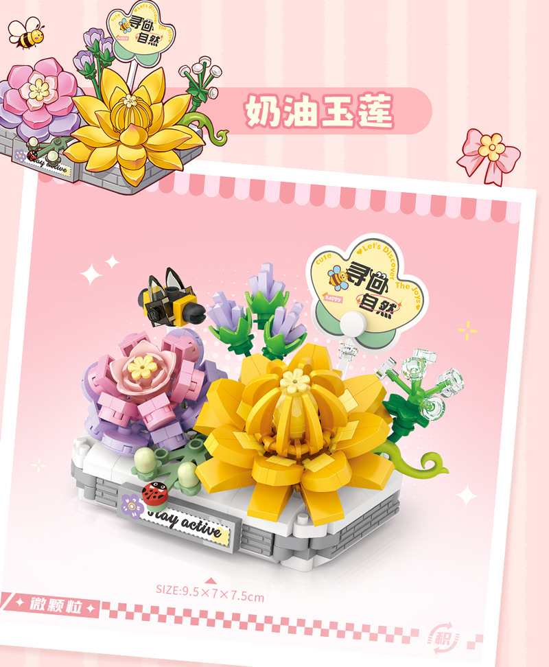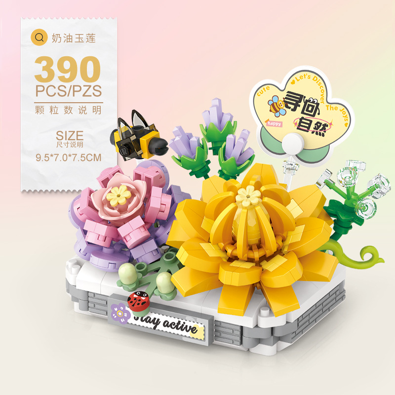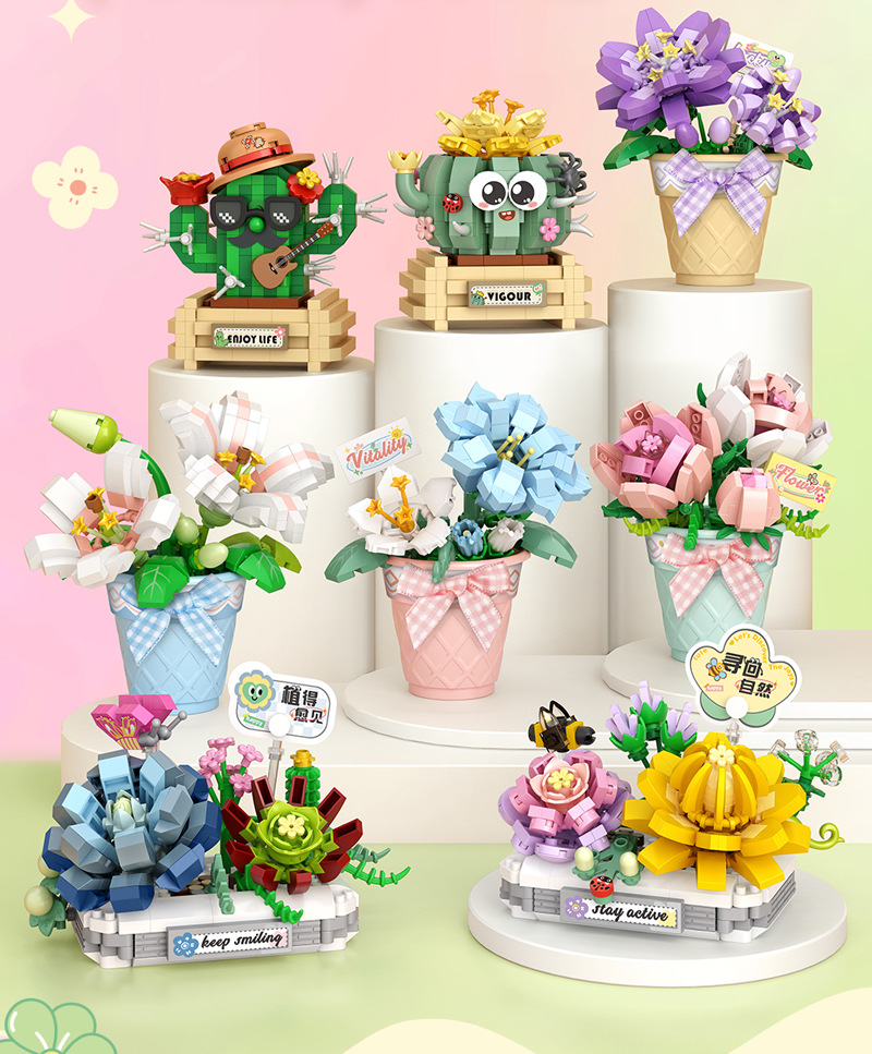 LOZ8831-8834 마이크로 드릴 입자 조립 장난감 어린이용 시뮬레이션 다육식물 교육용 블록 어린이 중추절 선물