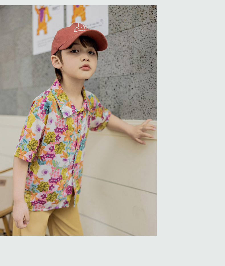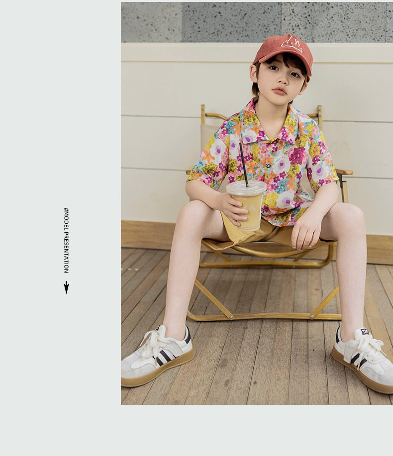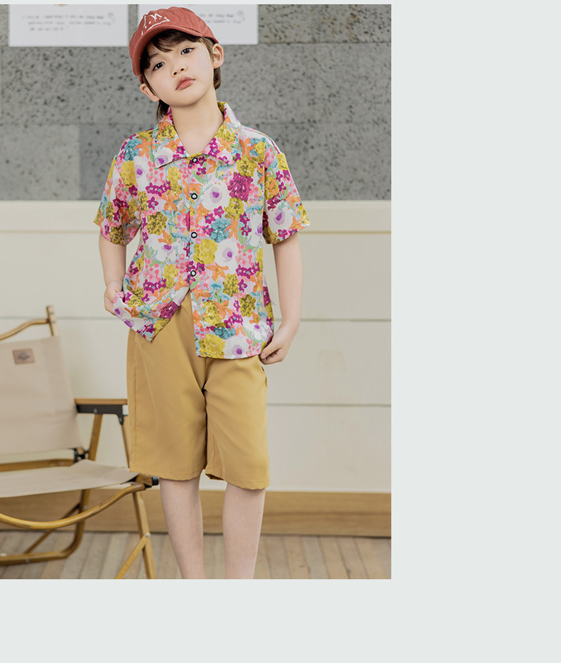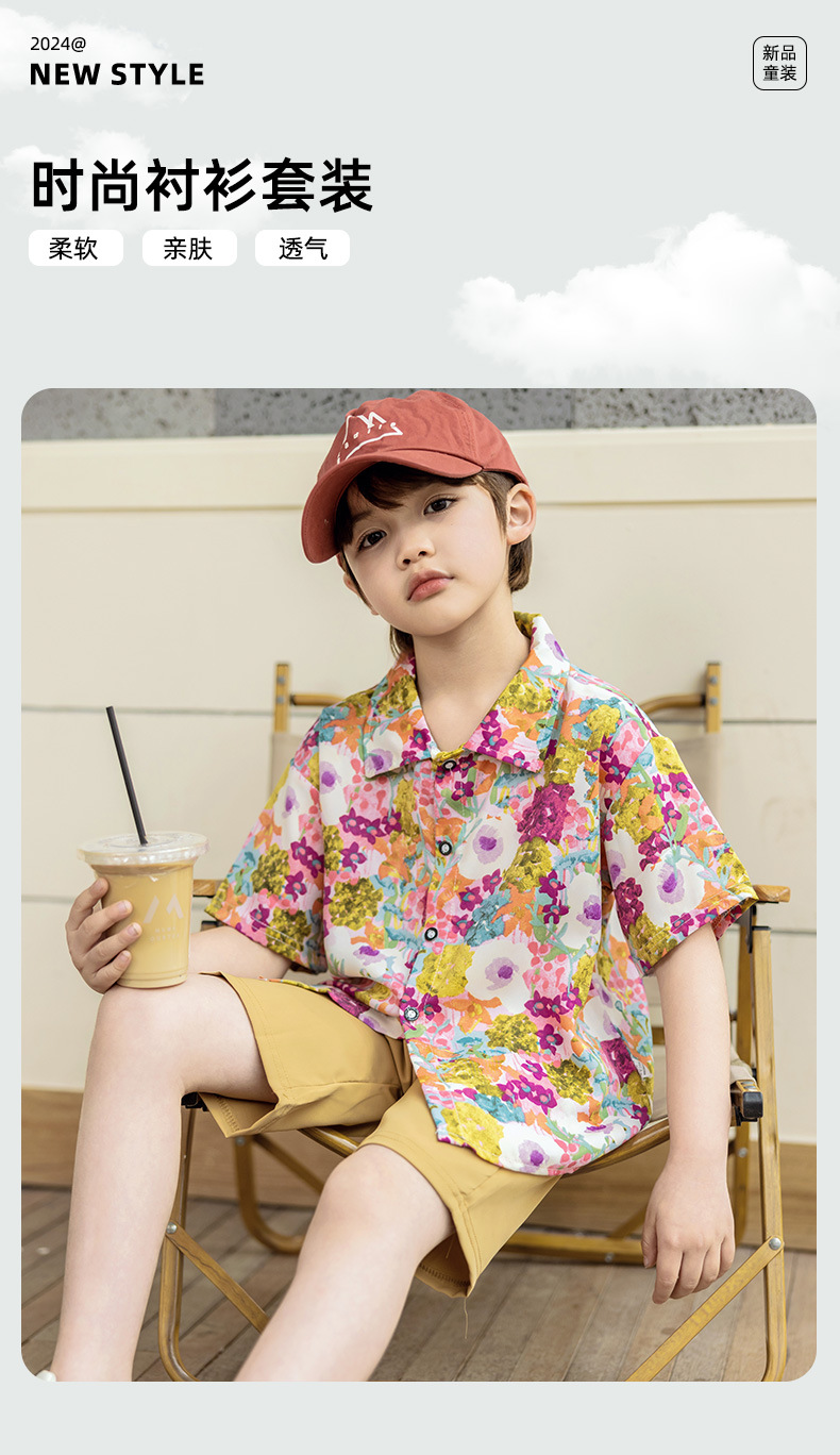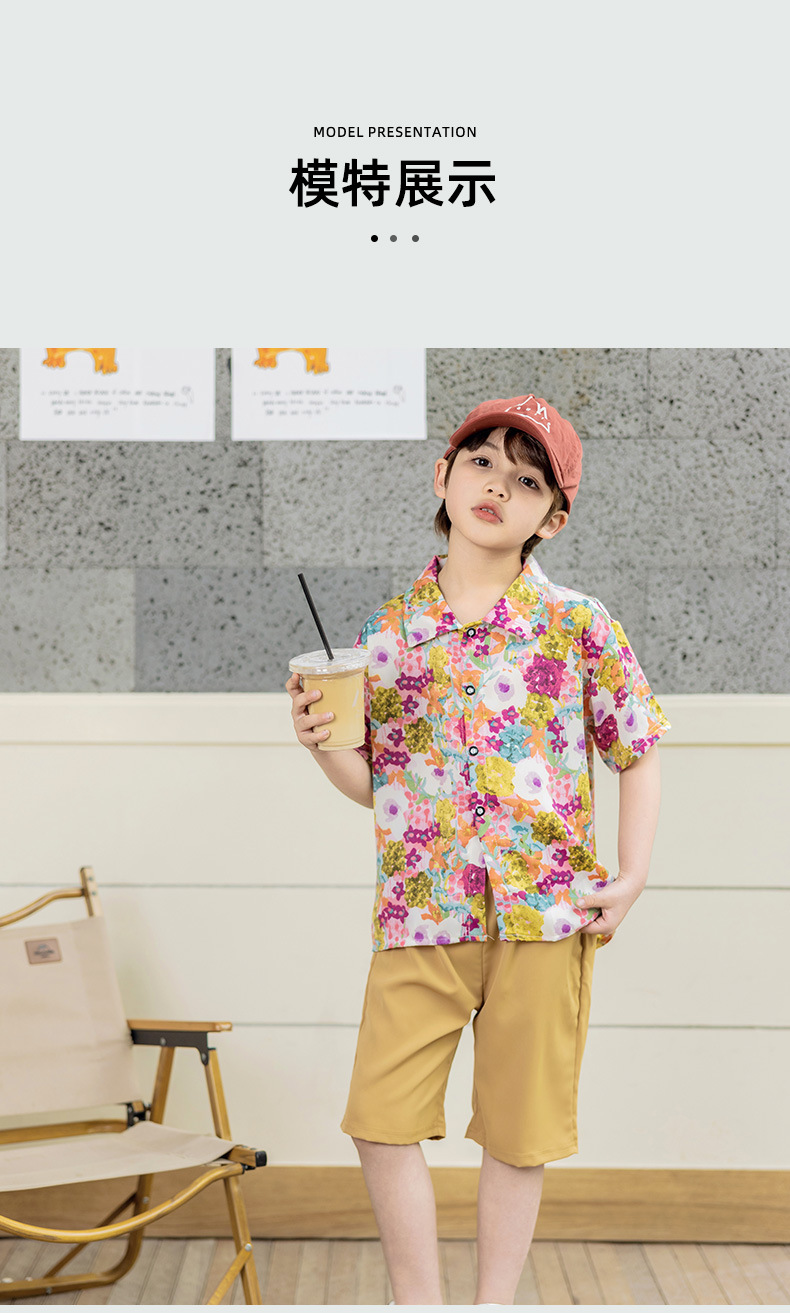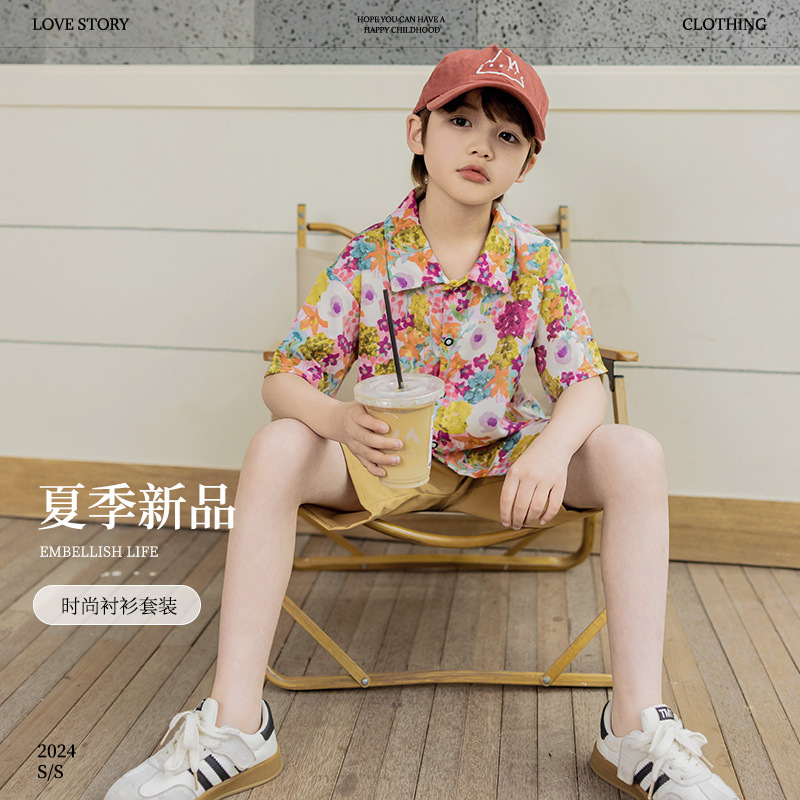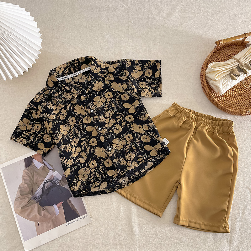 어린이 여름 셔츠 세트 소년 반팔 반바지 세트 베이비 비치 반바지 셔츠 아카데미 스타일 티셔츠스토어 가기