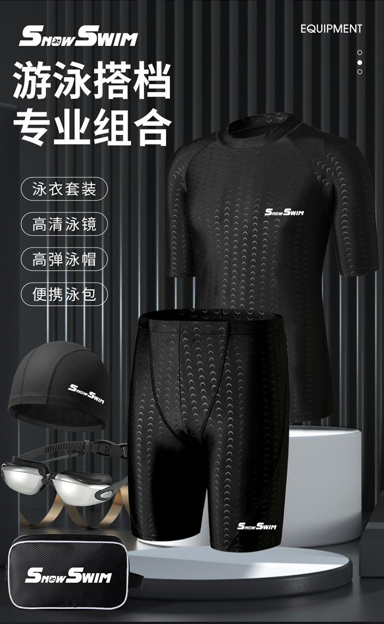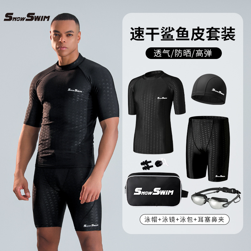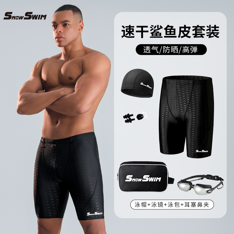 폭발성 남성 모방 상어 피부 수영 트렁크 남자의 빠른 건조 국경 수영 세트 수영 고글 달리기 피트니스 의류 수영 장비