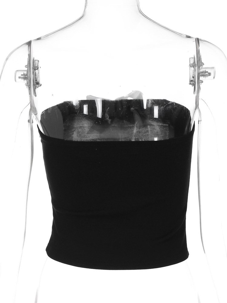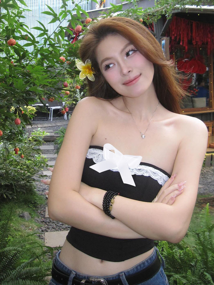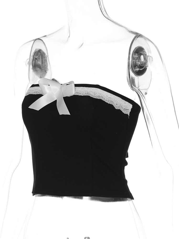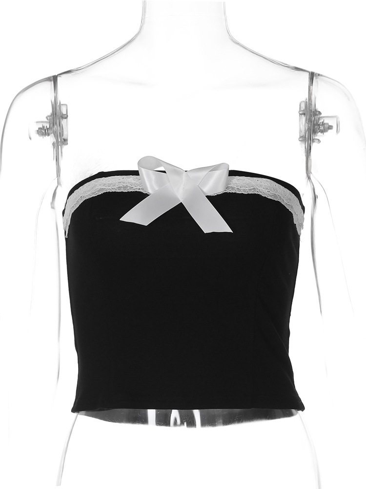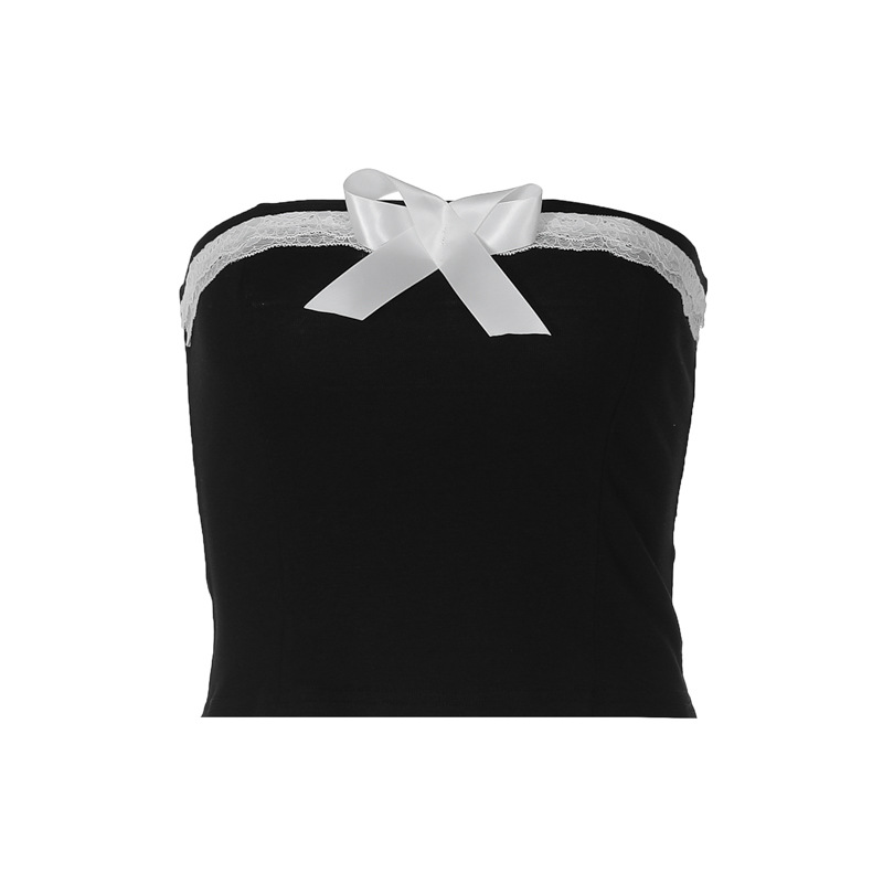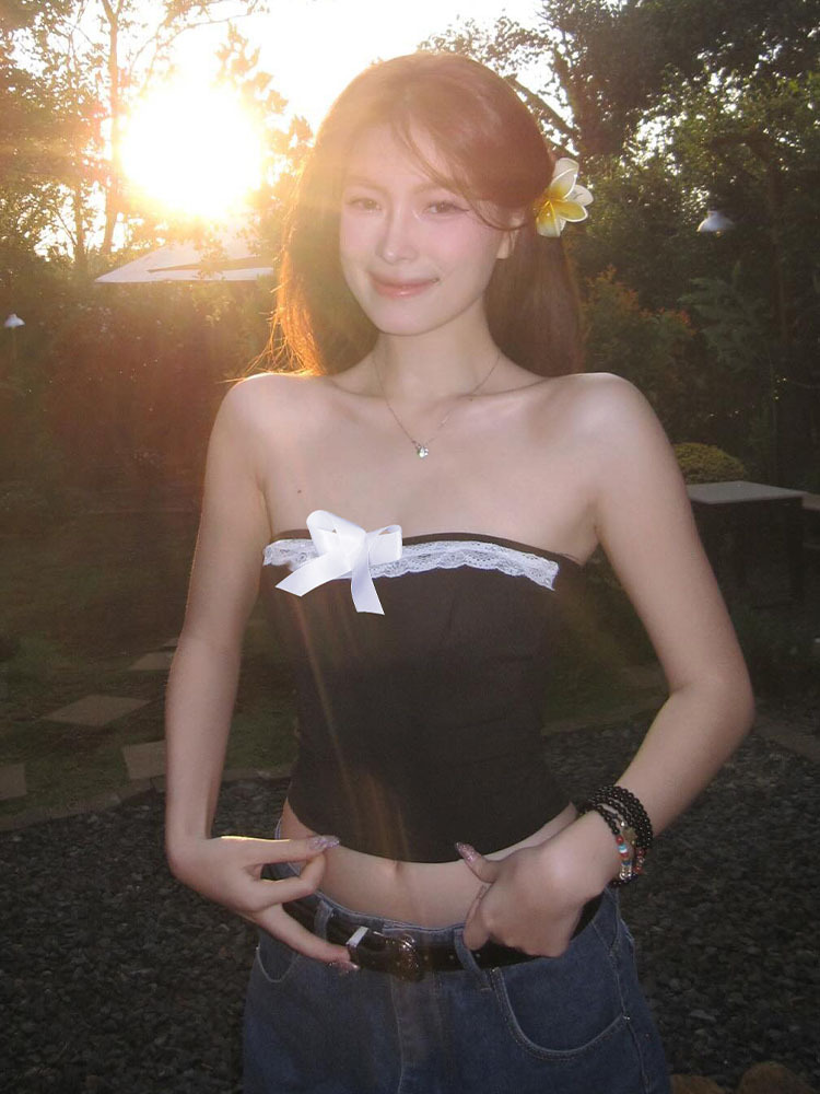 유럽과 미국 여성의 2024 봄 새로운 섹시한 퓨어 레이스 보우 스티칭 스트랩리스 카미 솔 조끼