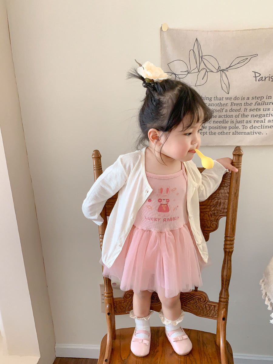 사탕 수수 배 어린이 의류 아기 니트 카디건 2024 여름 새로운 어린이 한국 스타일 탑 여자 코트 아기 옷