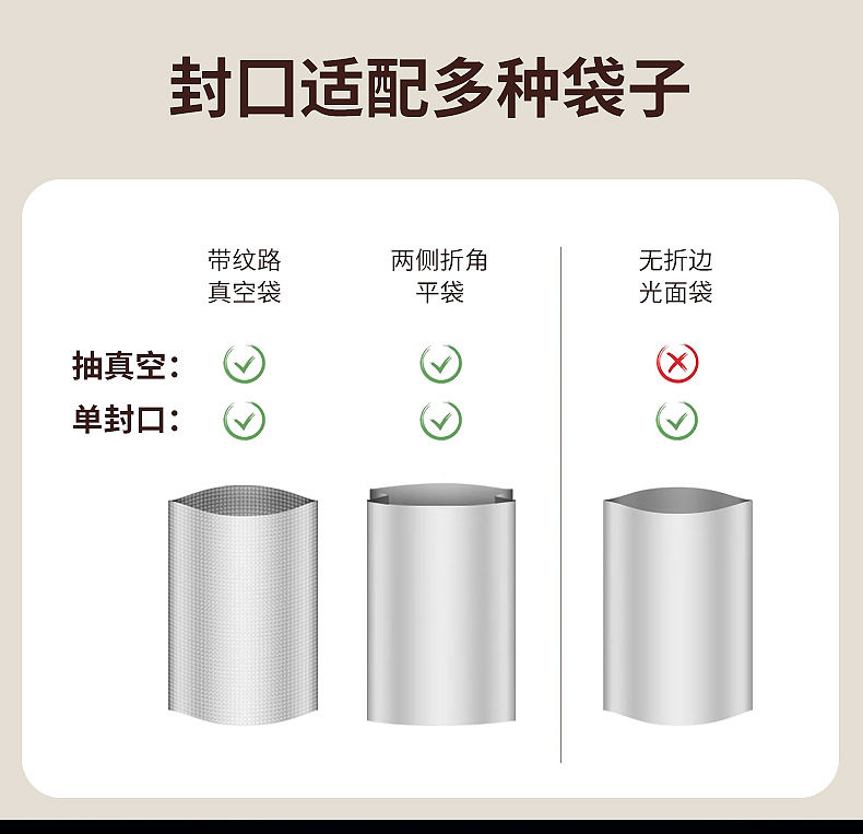 真空度:- 62 kpa; 最大封口:30cm