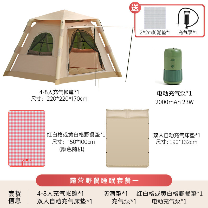 • 풍선 텐트 + 전기 펌프 + 방습 매트 + 피크닉 매트 + 더블 에어 매트리스
