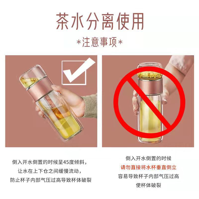 차 분리 유리 더블 레이어 두꺼운 내열 휴대용 워터 컵 여름 인터넷 여학생을위한 귀여운 티 컵