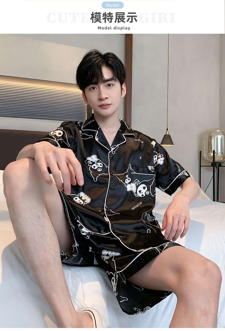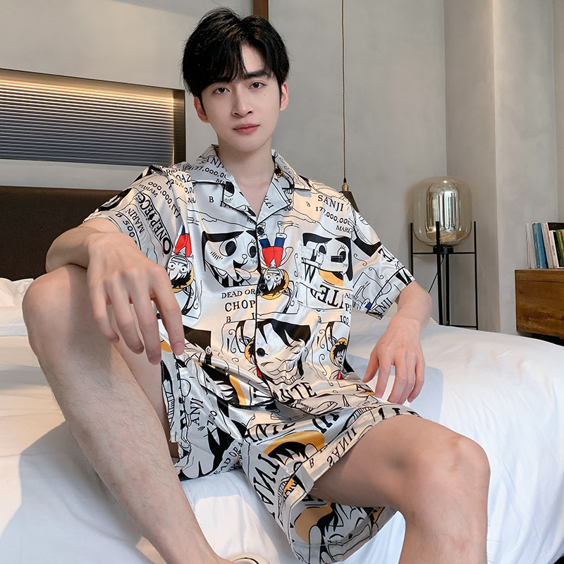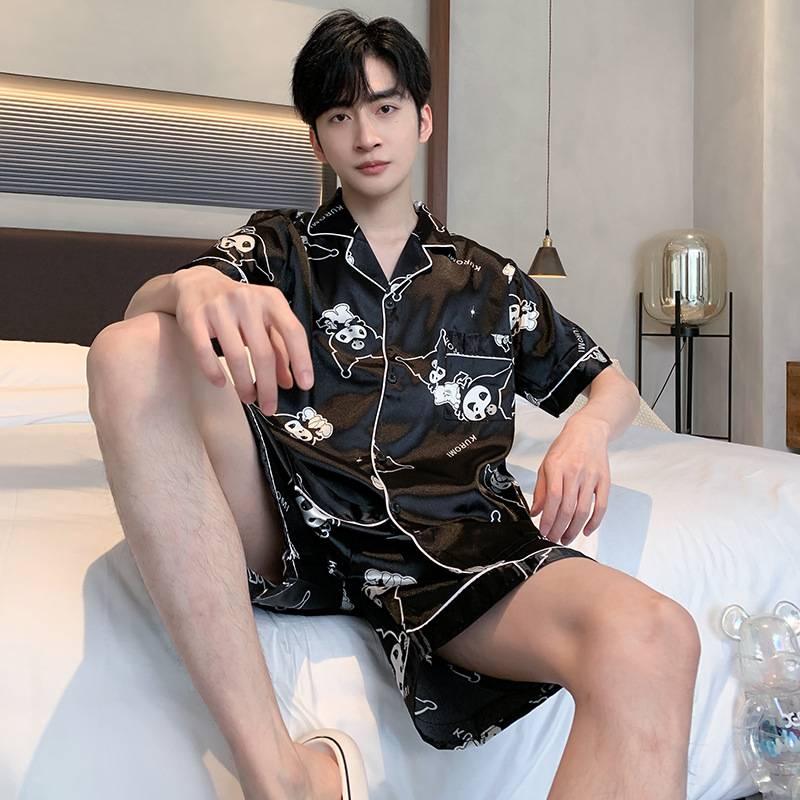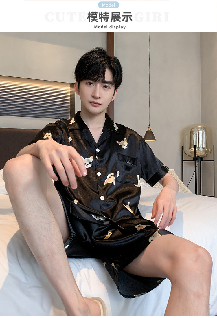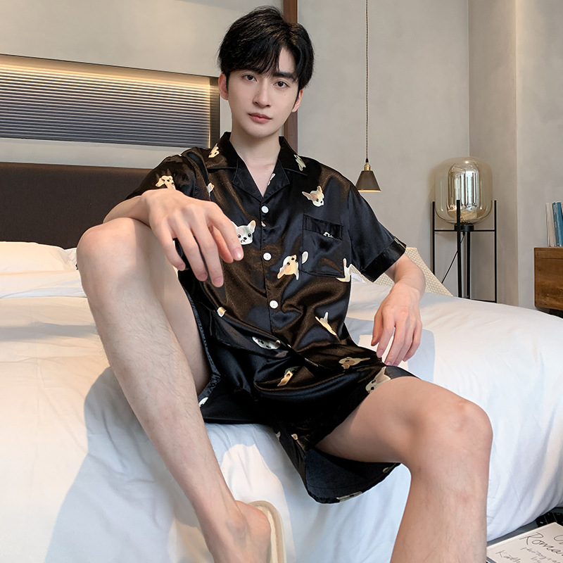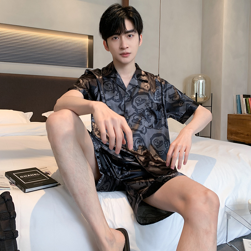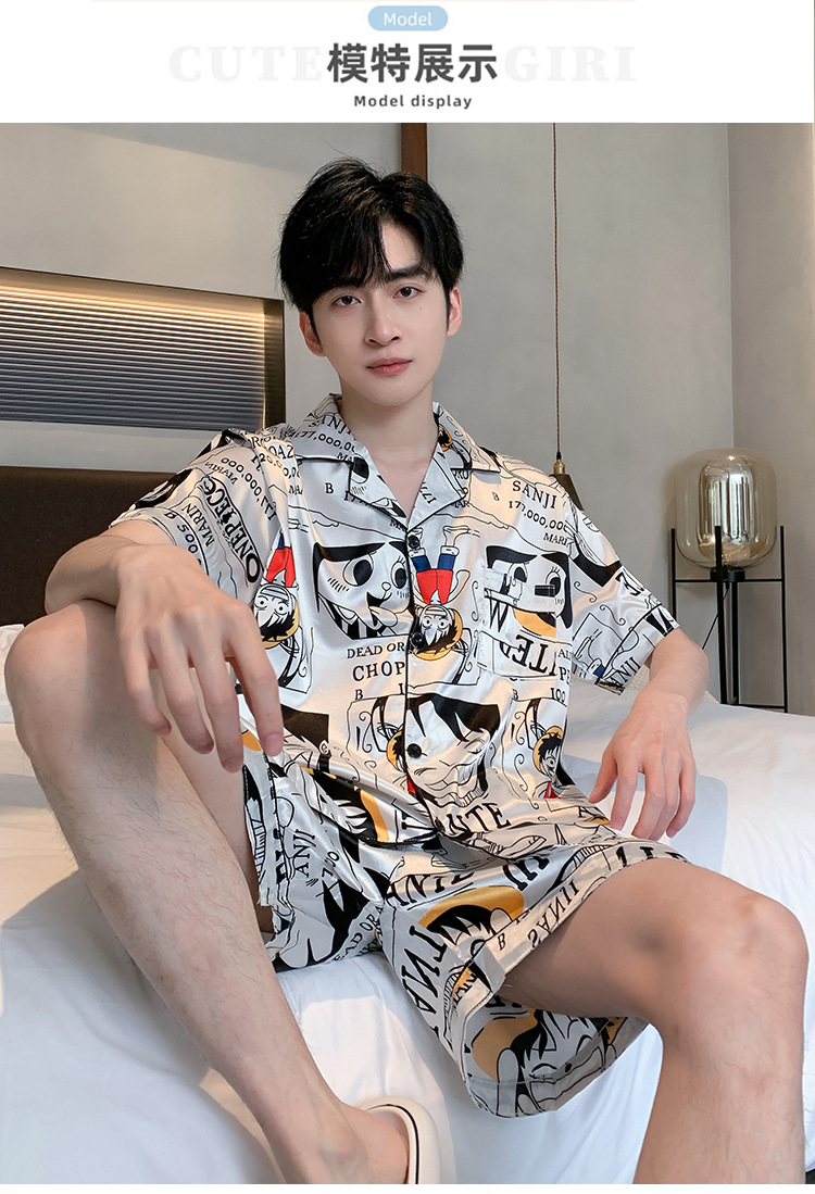 2024 새로운 도착 잠옷 남자 여름 아이스 실크 짧은 소매 반바지 얇은 소년 봄과 가을 청소년 홈 세트스토어 가기