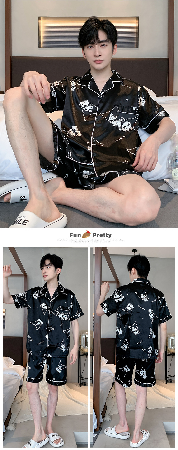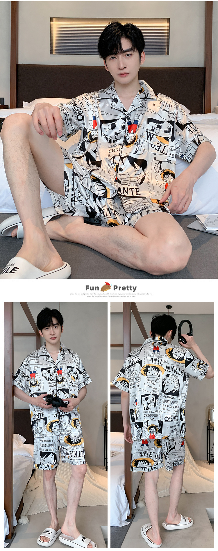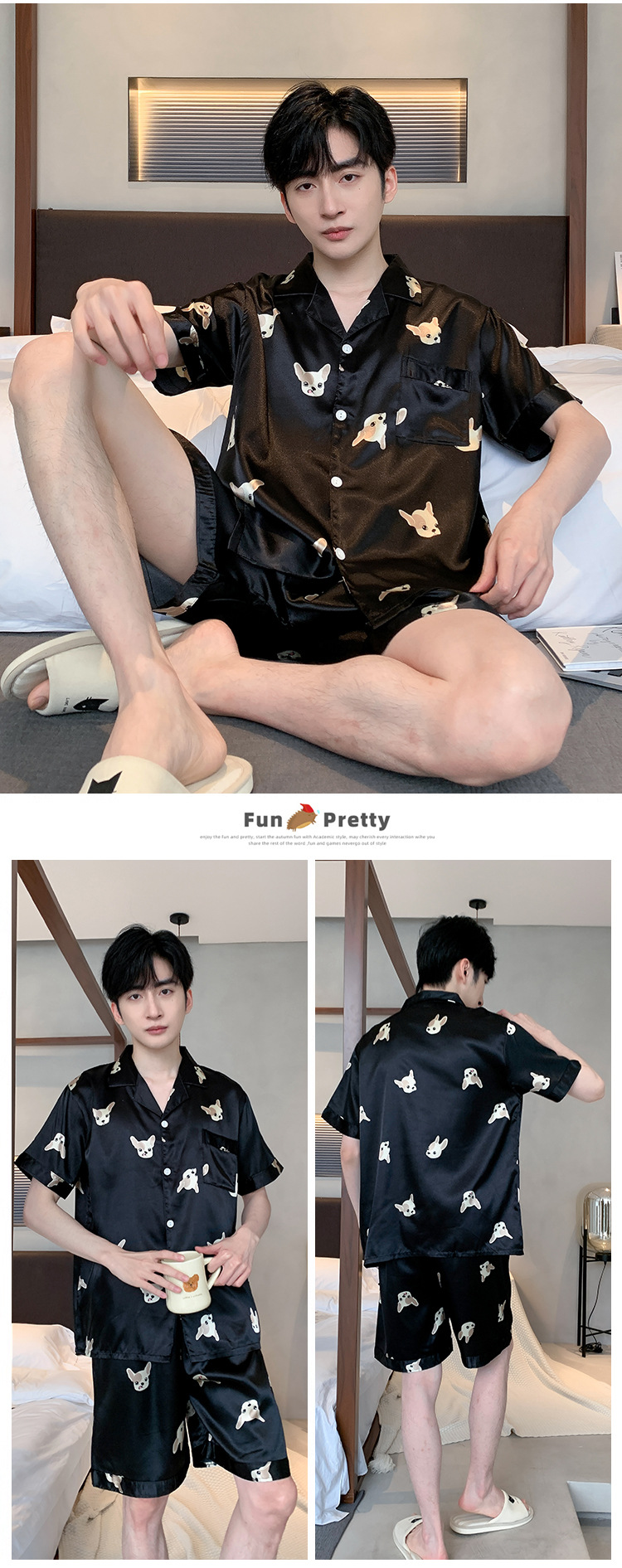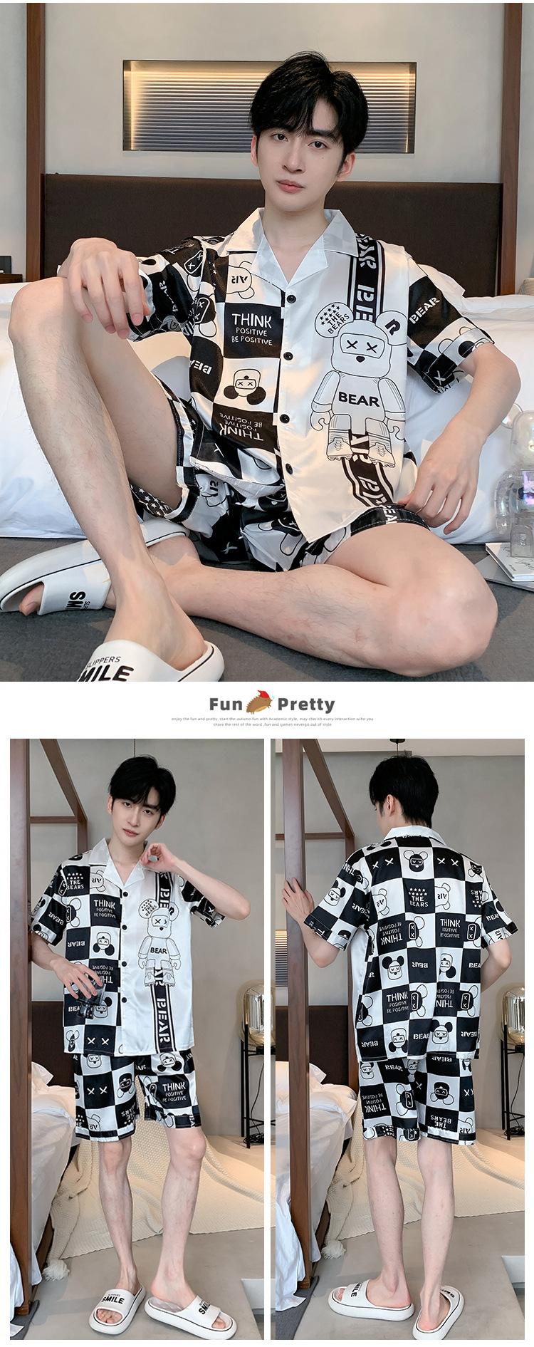 2024 새로운 도착 잠옷 남자 여름 아이스 실크 짧은 소매 반바지 얇은 소년 봄과 가을 청소년 홈 세트스토어 가기