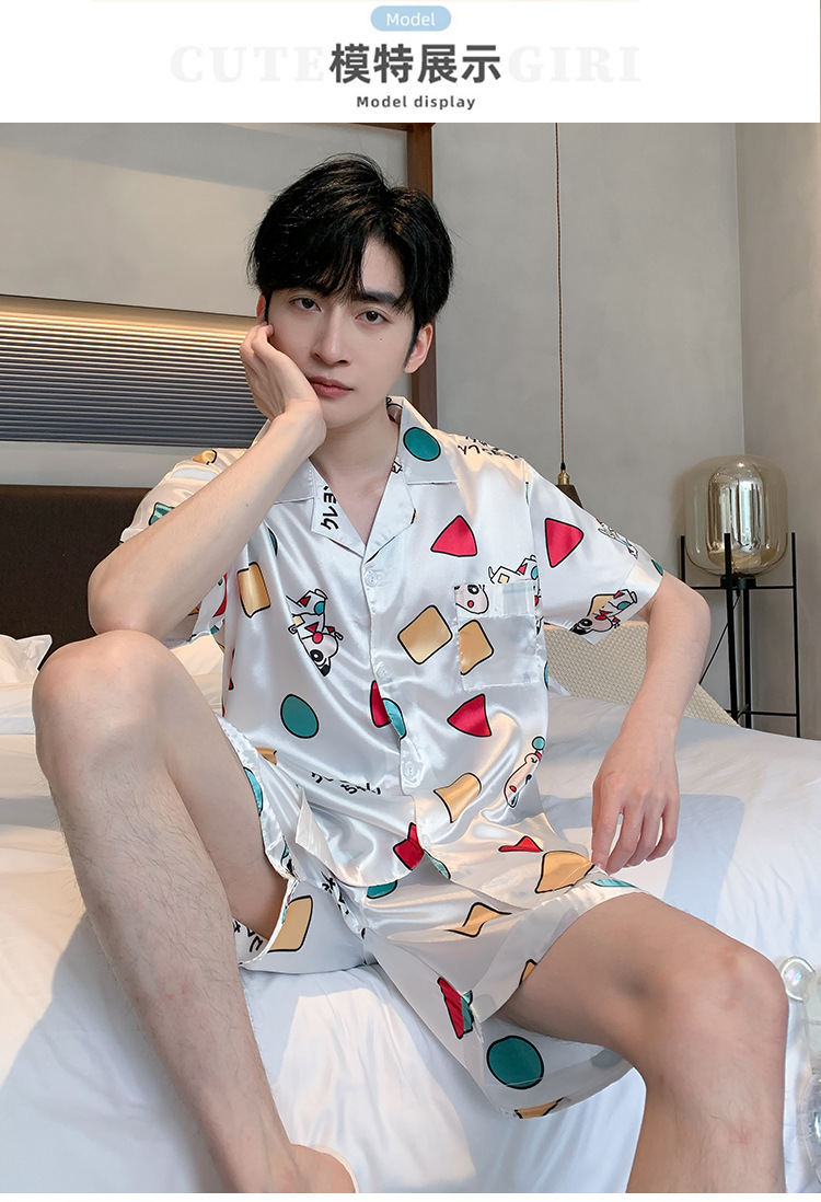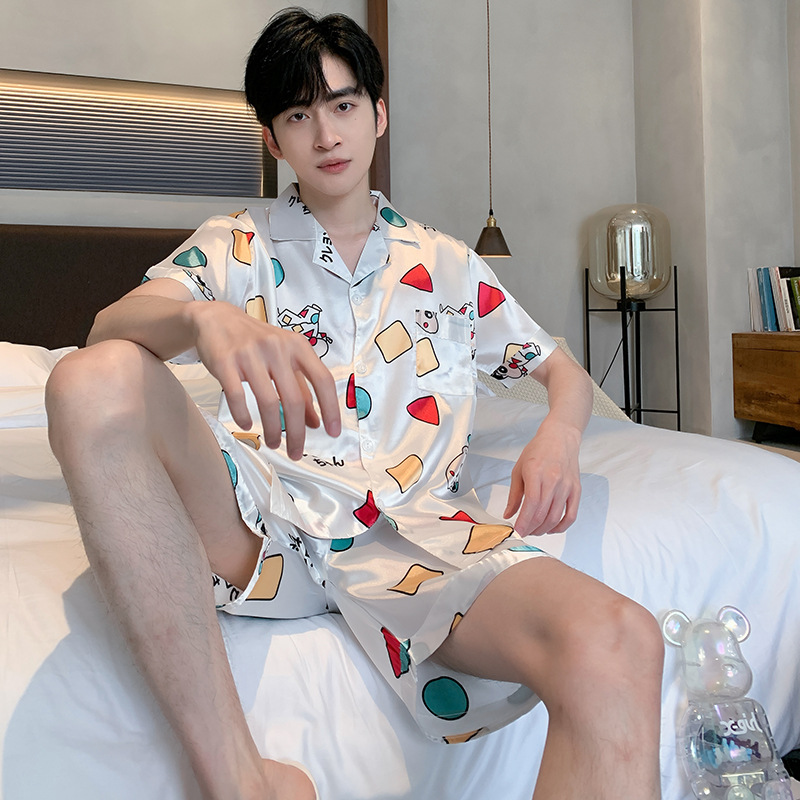 2024 새로운 도착 잠옷 남자 여름 아이스 실크 짧은 소매 반바지 얇은 소년 봄과 가을 청소년 홈 세트