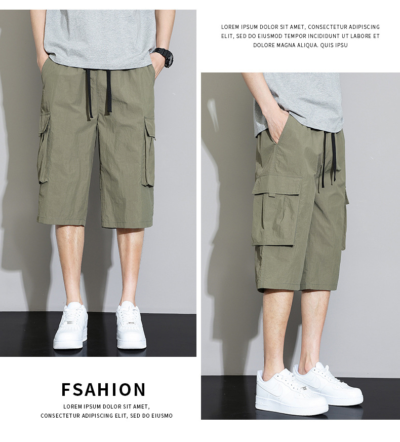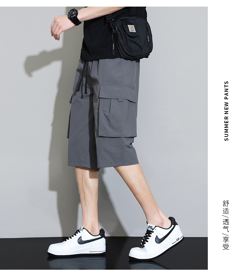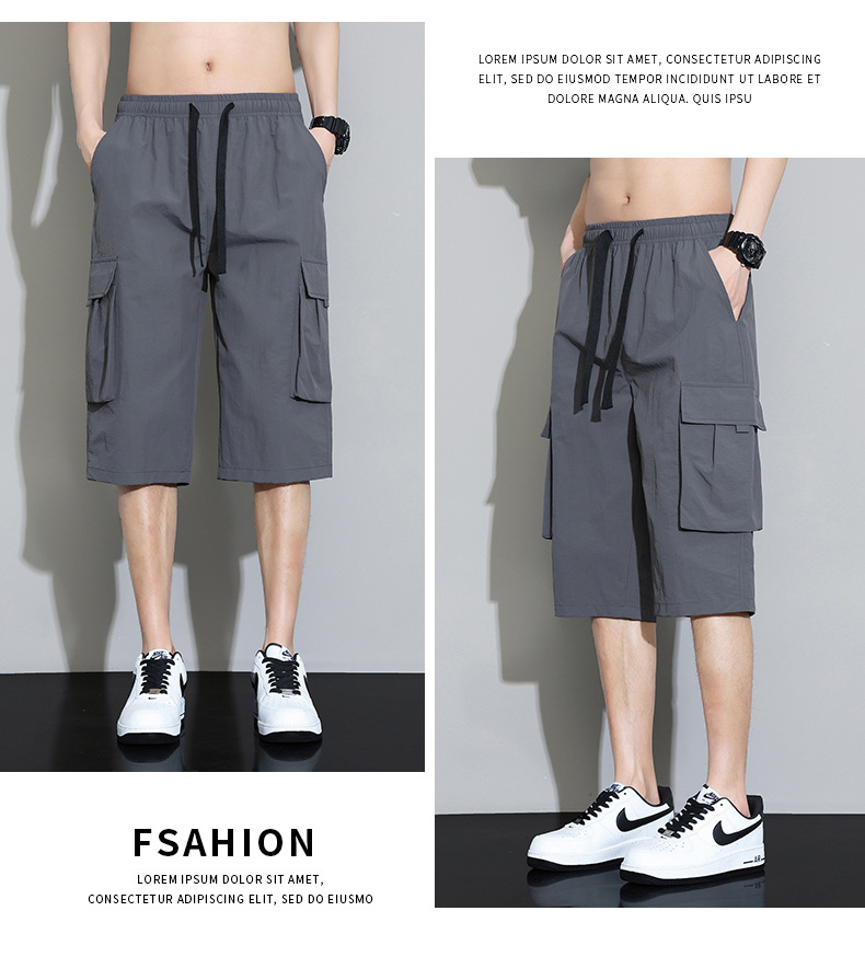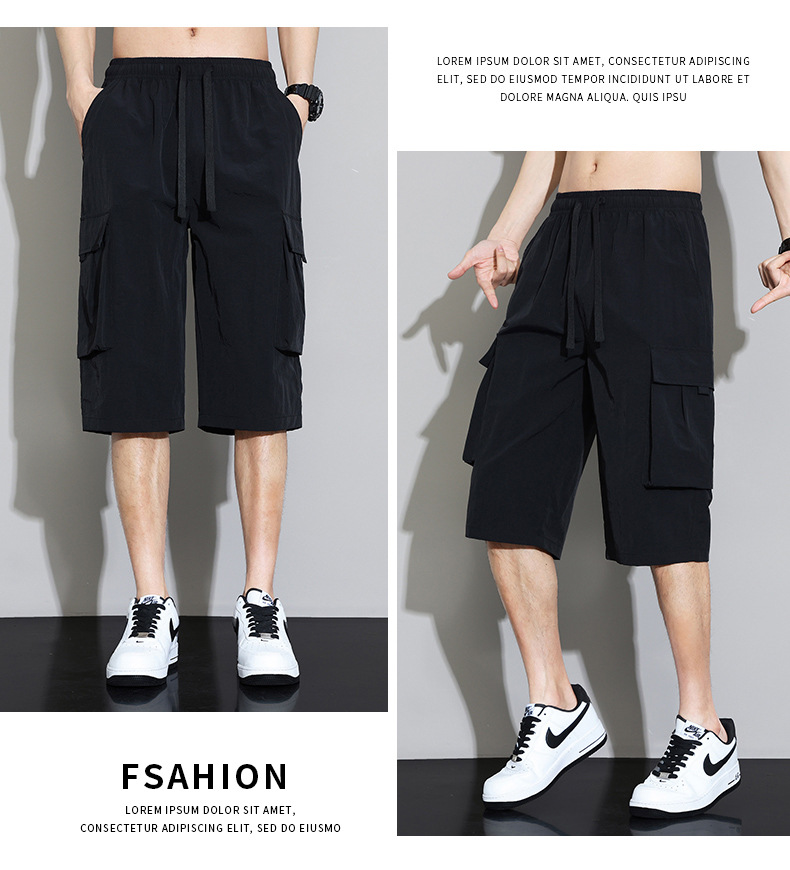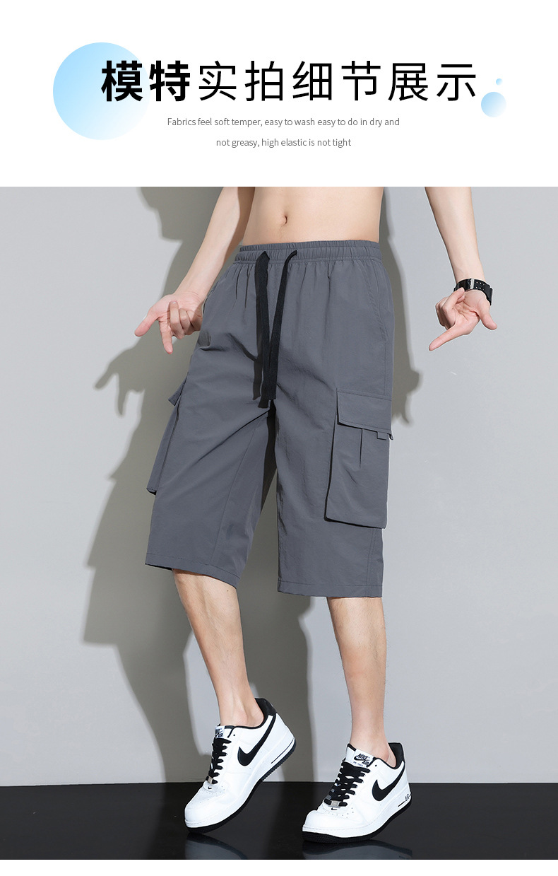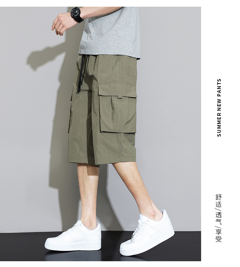 작업복 카프리 바지 남자 여름 얇은 빠른 건조 무릎 길이 바지 느슨한 유행 여름 스포츠 캐주얼 반바지