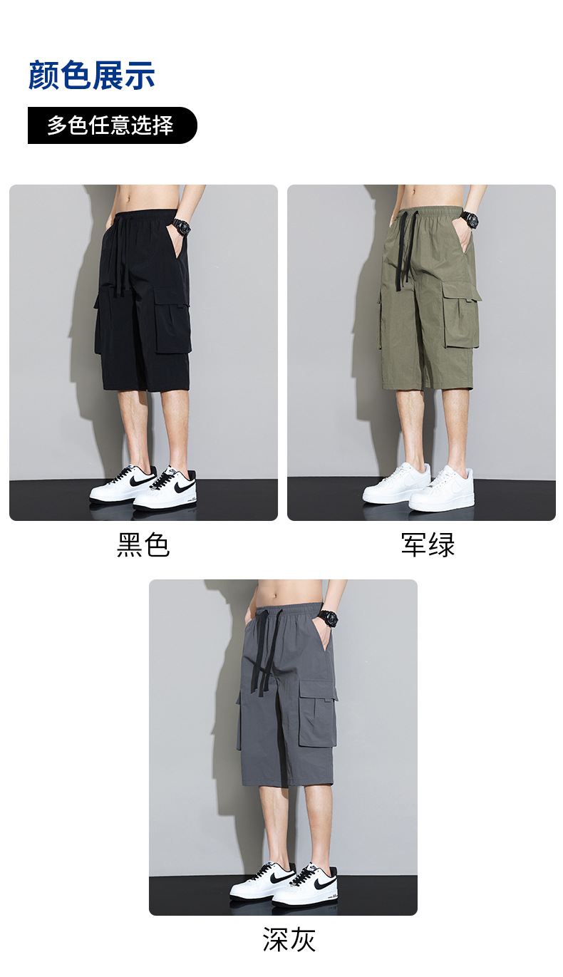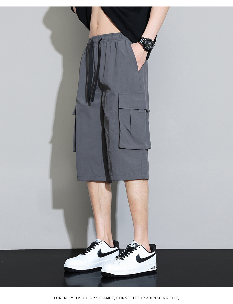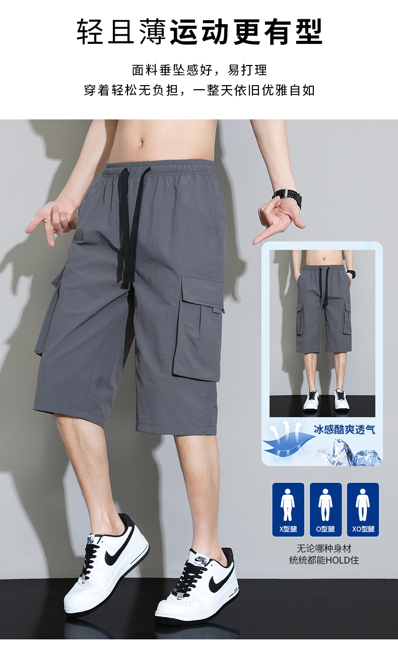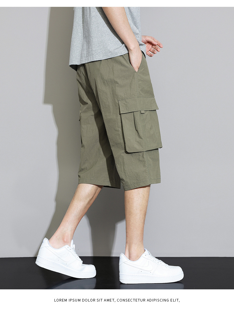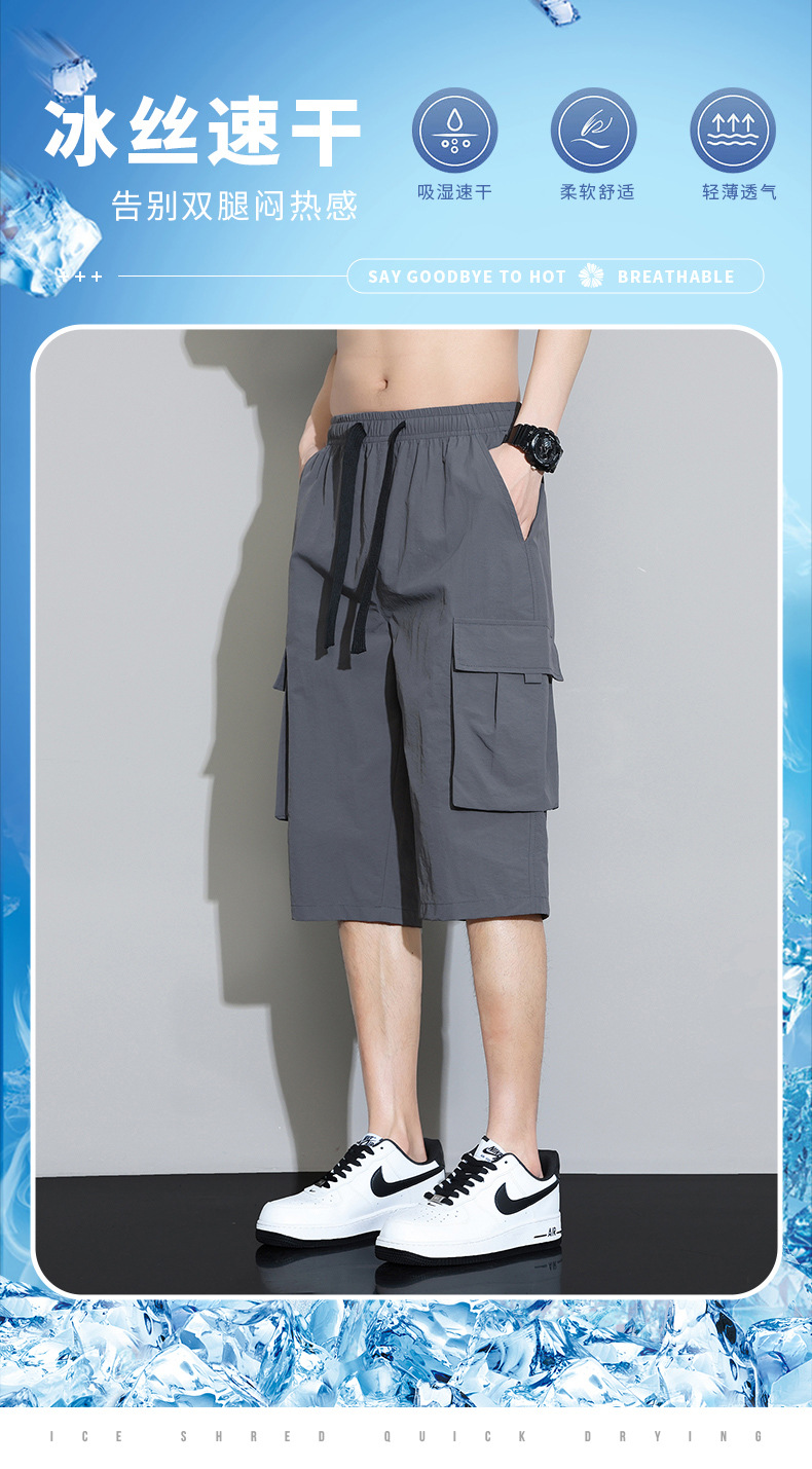 작업복 카프리 바지 남자 여름 얇은 빠른 건조 무릎 길이 바지 느슨한 유행 여름 스포츠 캐주얼 반바지