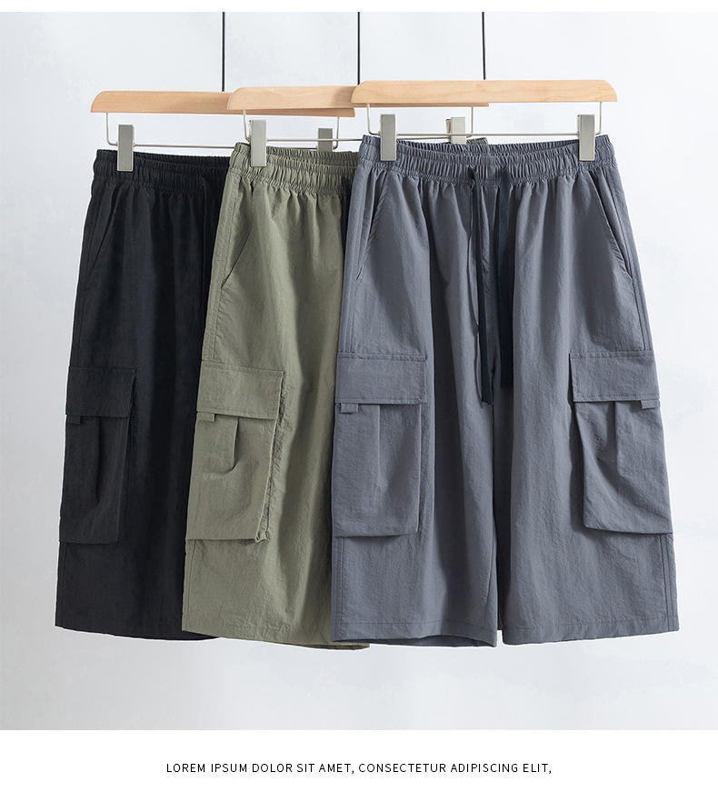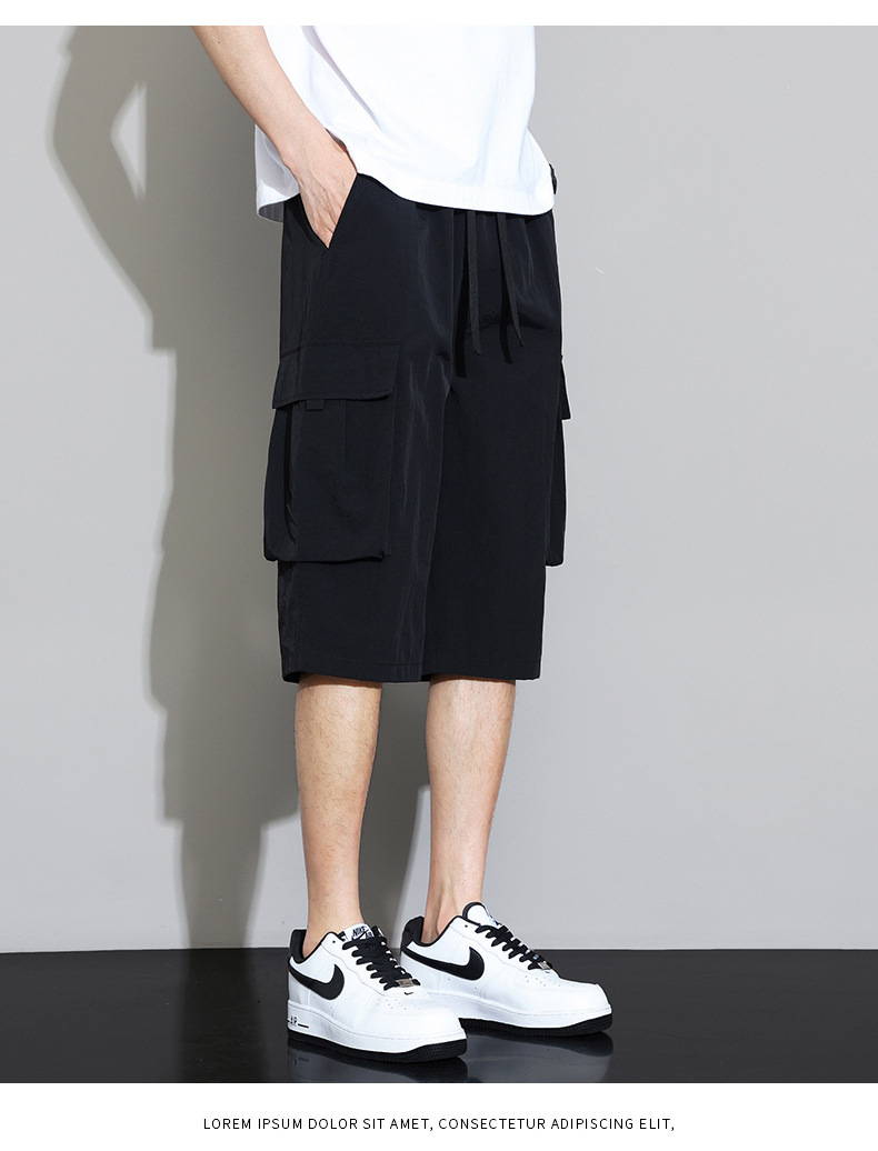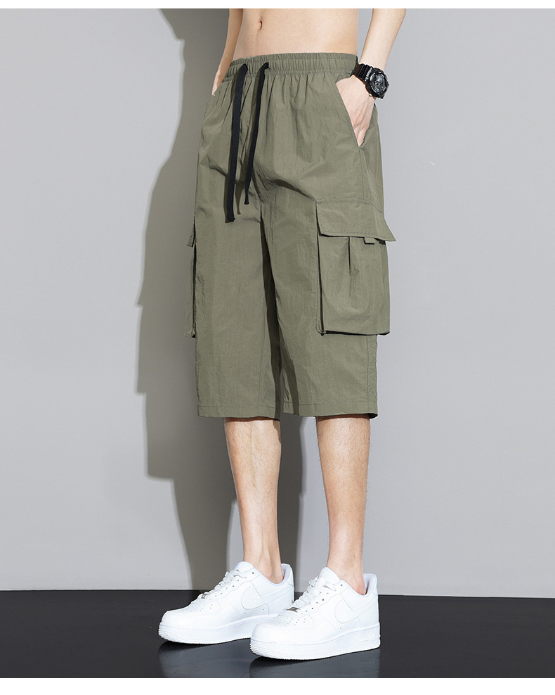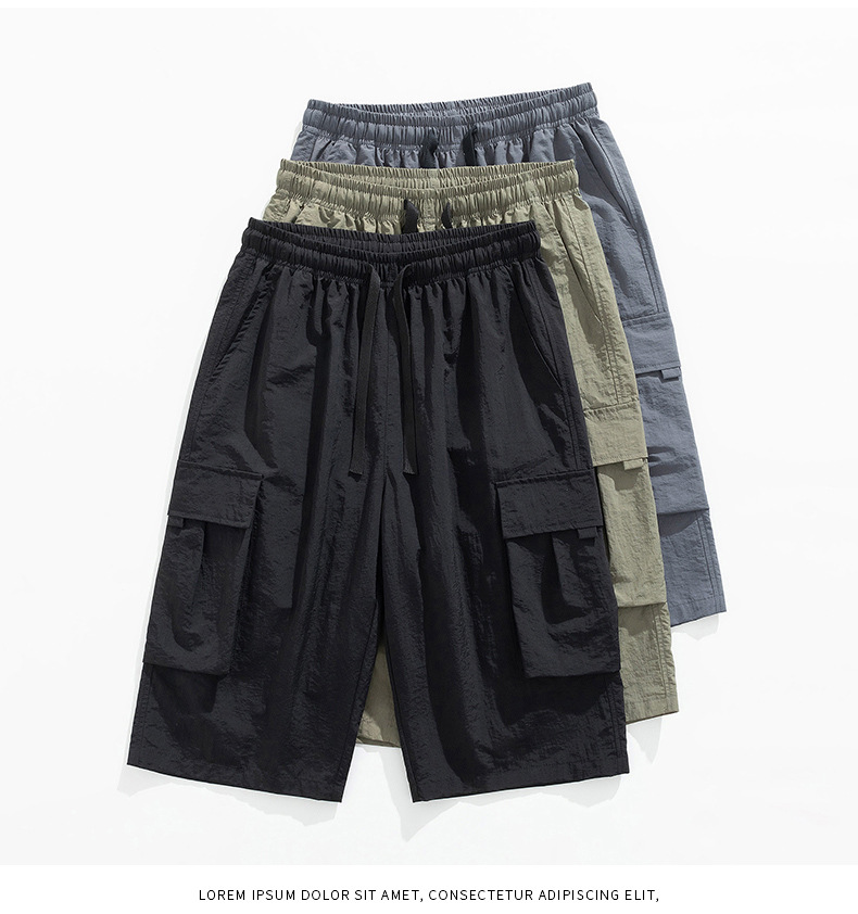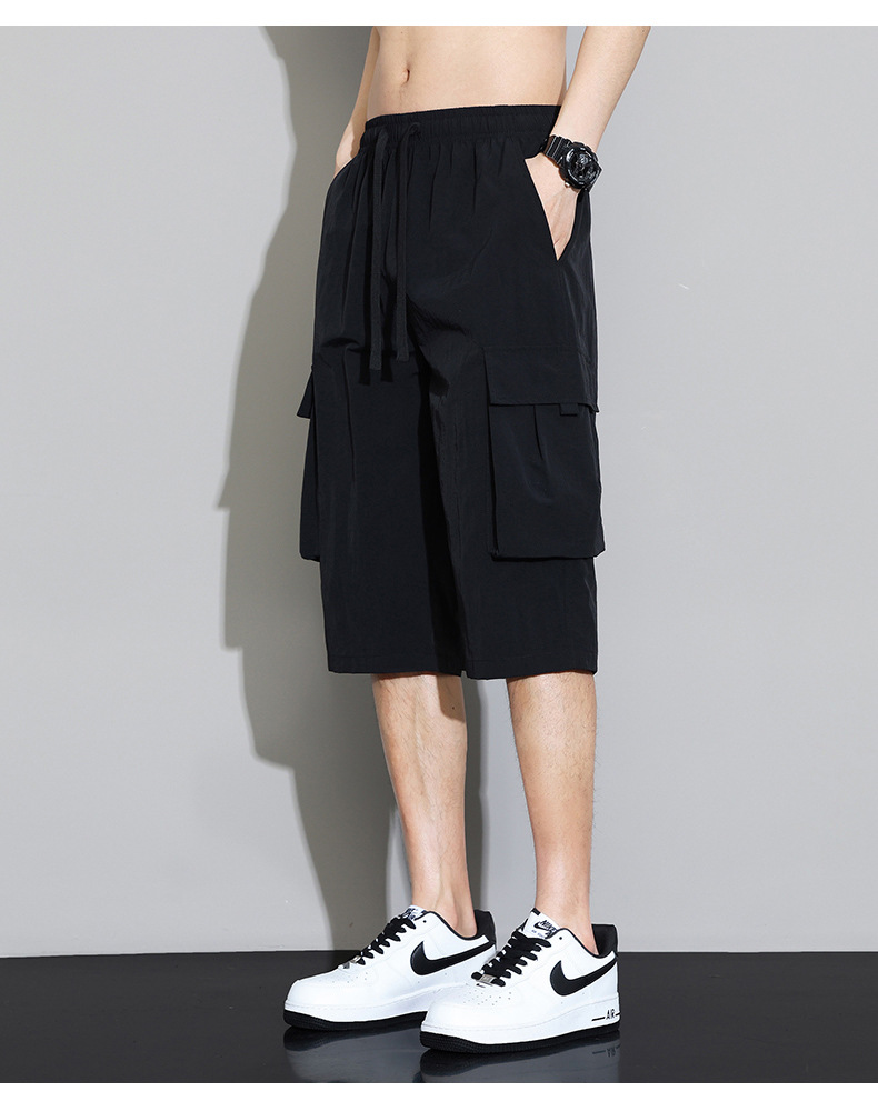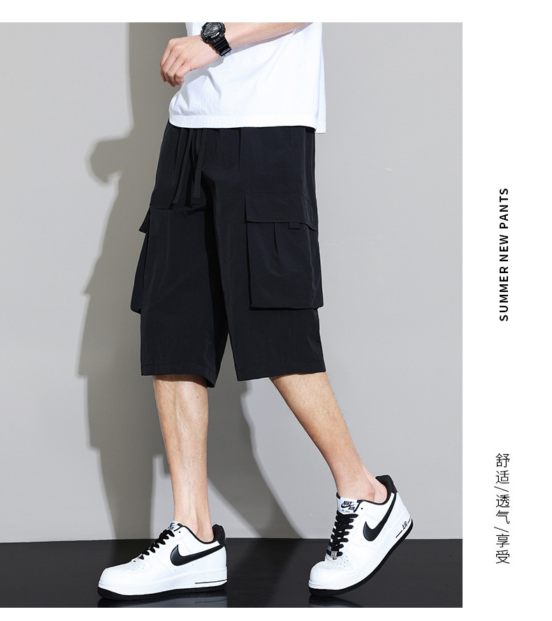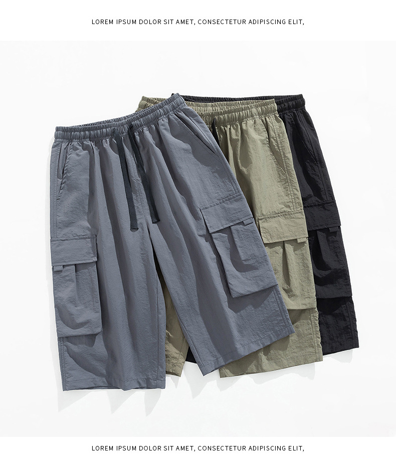 작업복 카프리 바지 남자 여름 얇은 빠른 건조 무릎 길이 바지 느슨한 유행 여름 스포츠 캐주얼 반바지