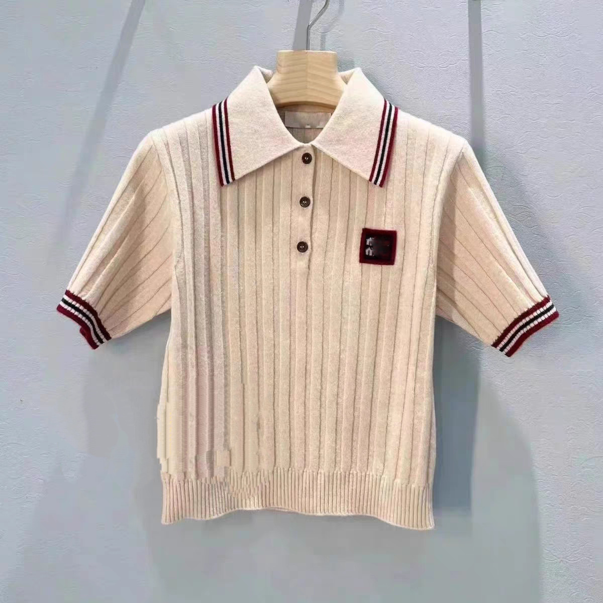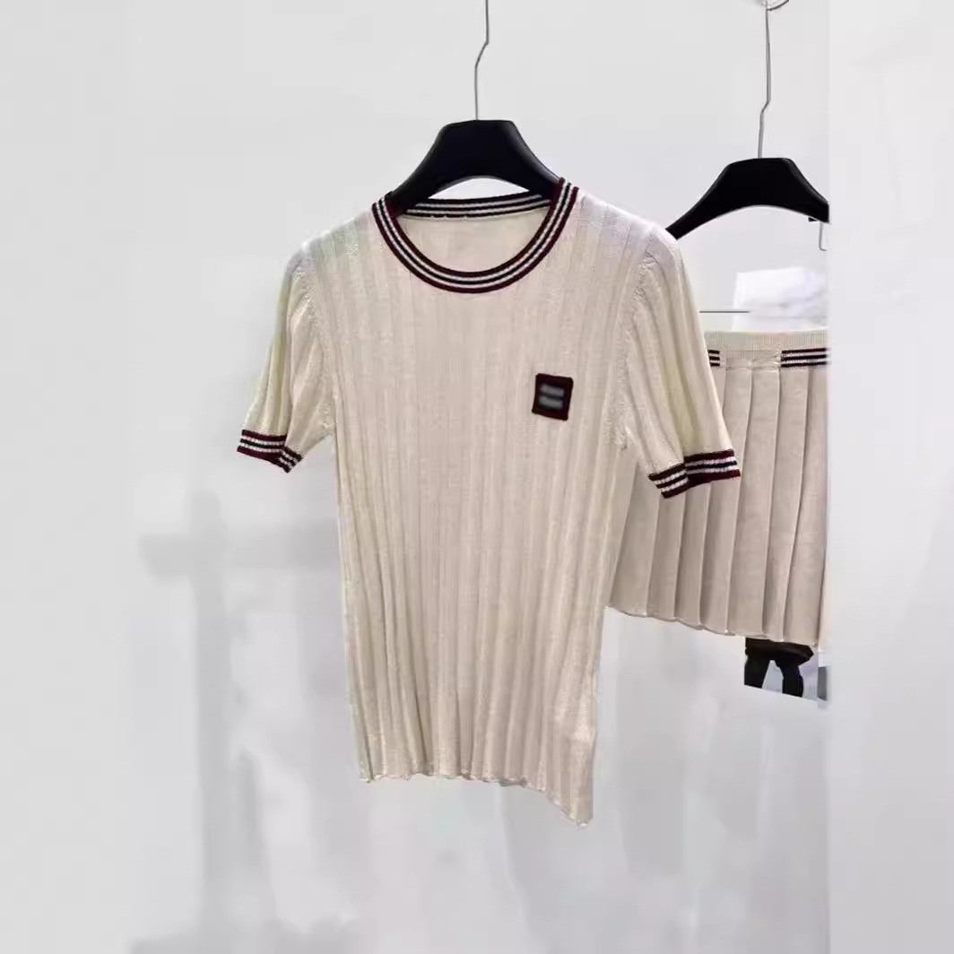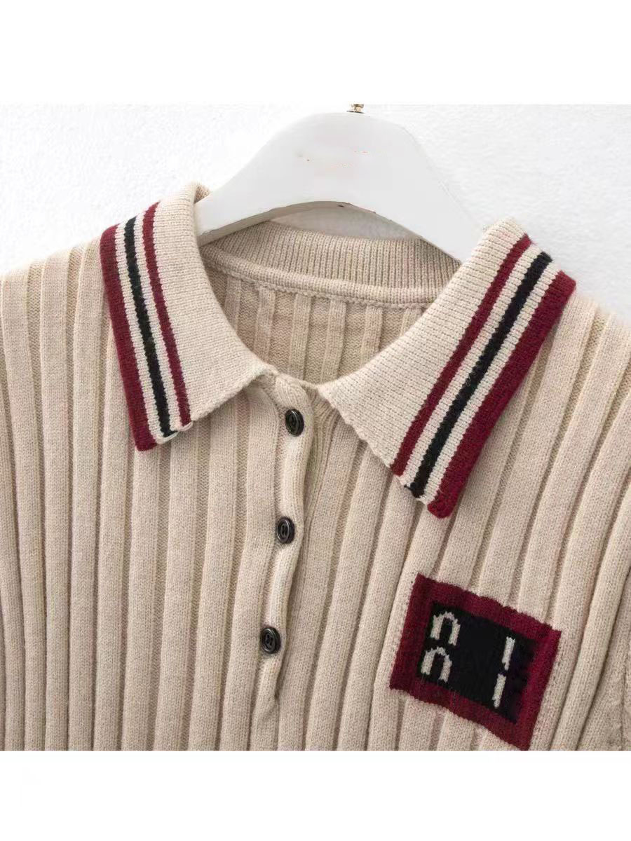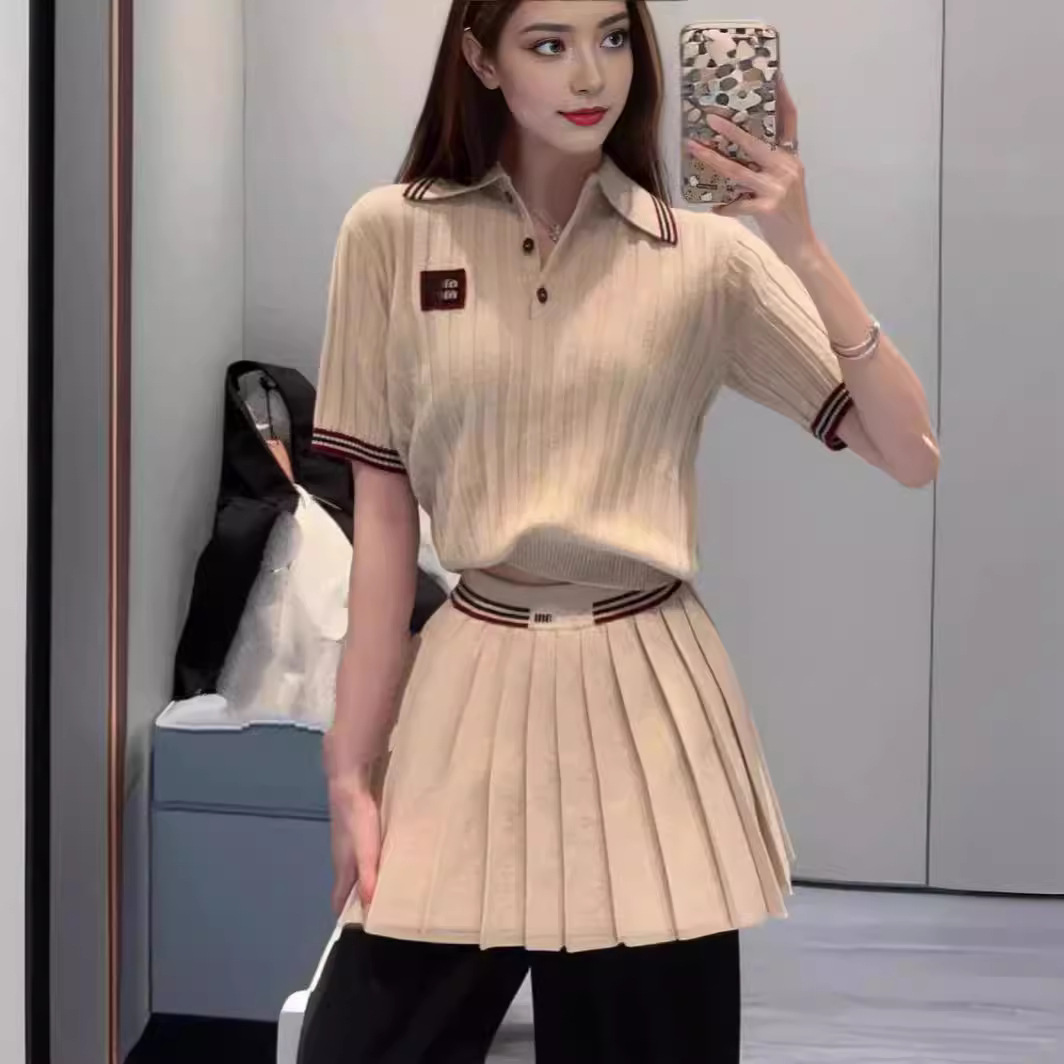 2026 봄/여름 대학 스타일 배색 스트라이프 라운드넥 탑, 라펠 반팔 니트, 플리츠 숏 스커트, 여성용 스웨터스토어 가기