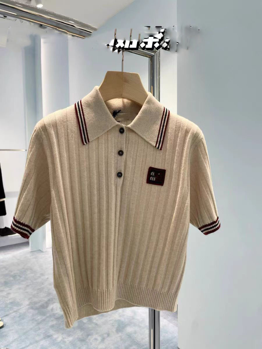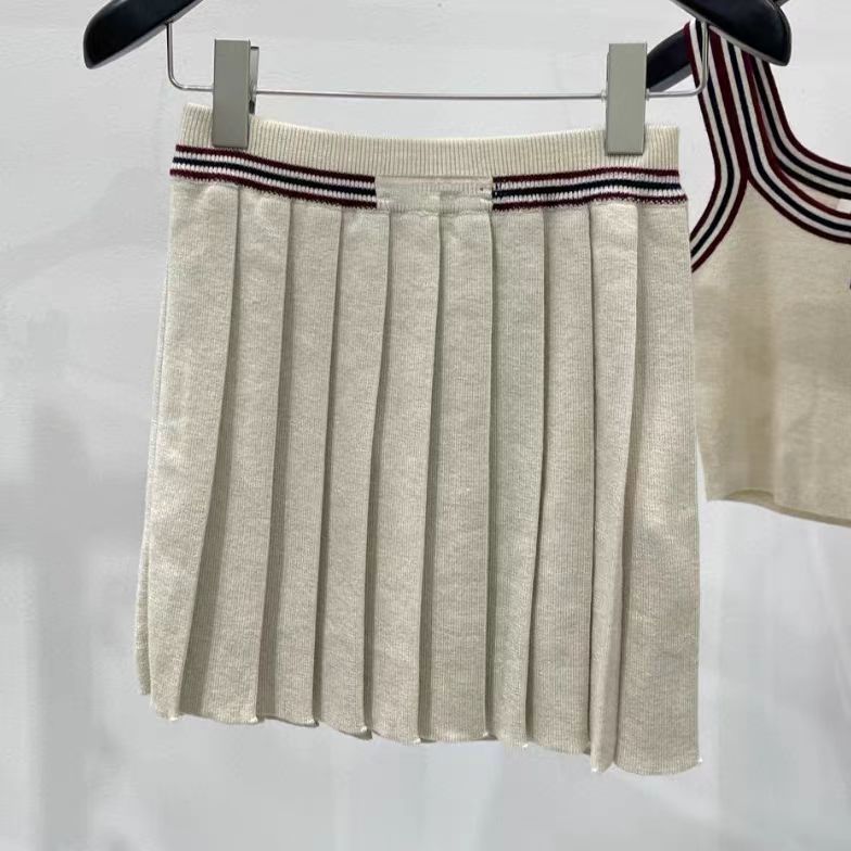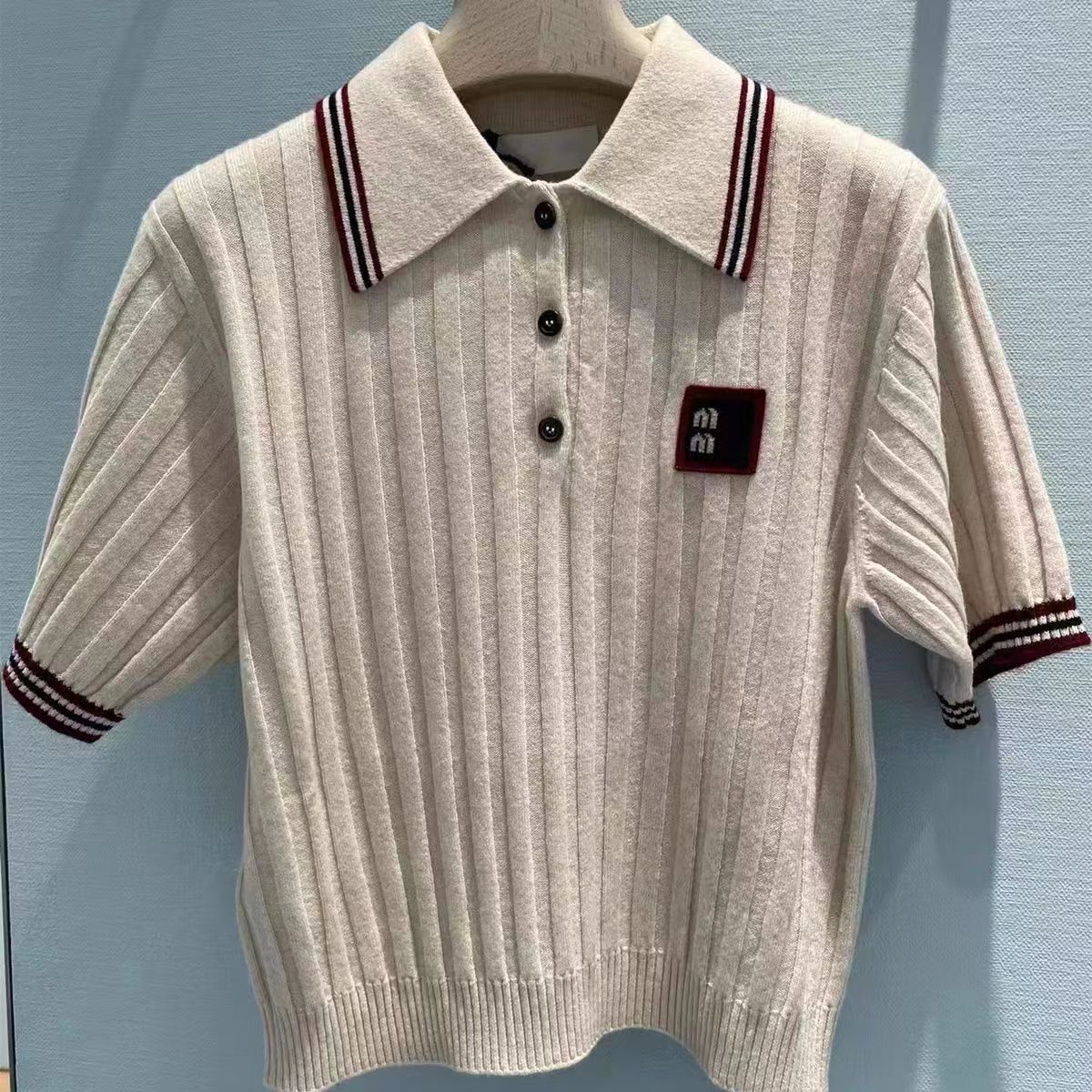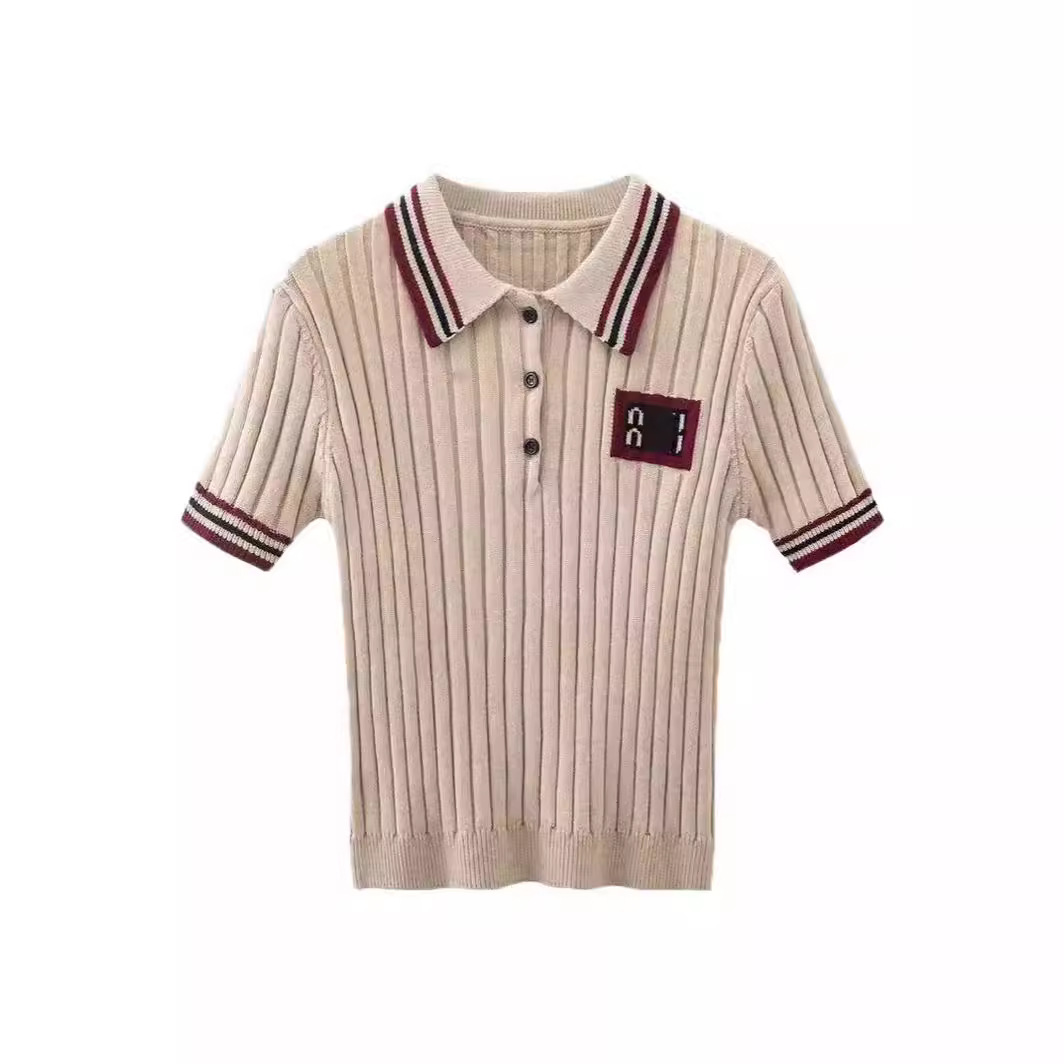 2026 봄/여름 대학 스타일 배색 스트라이프 라운드넥 탑, 라펠 반팔 니트, 플리츠 숏 스커트, 여성용 스웨터스토어 가기