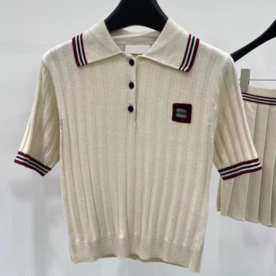 2026 봄/여름 대학 스타일 배색 스트라이프 라운드넥 탑, 라펠 반팔 니트, 플리츠 숏 스커트, 여성용 스웨터