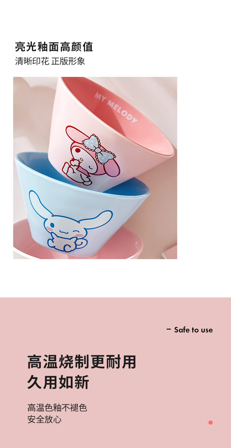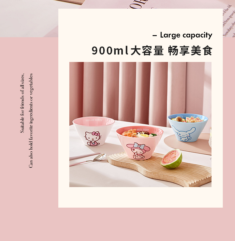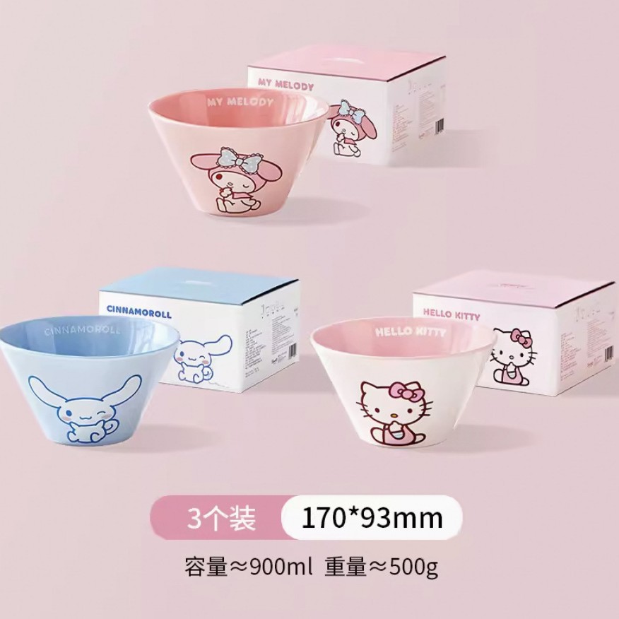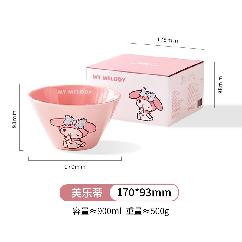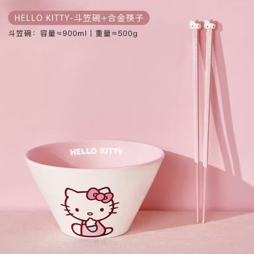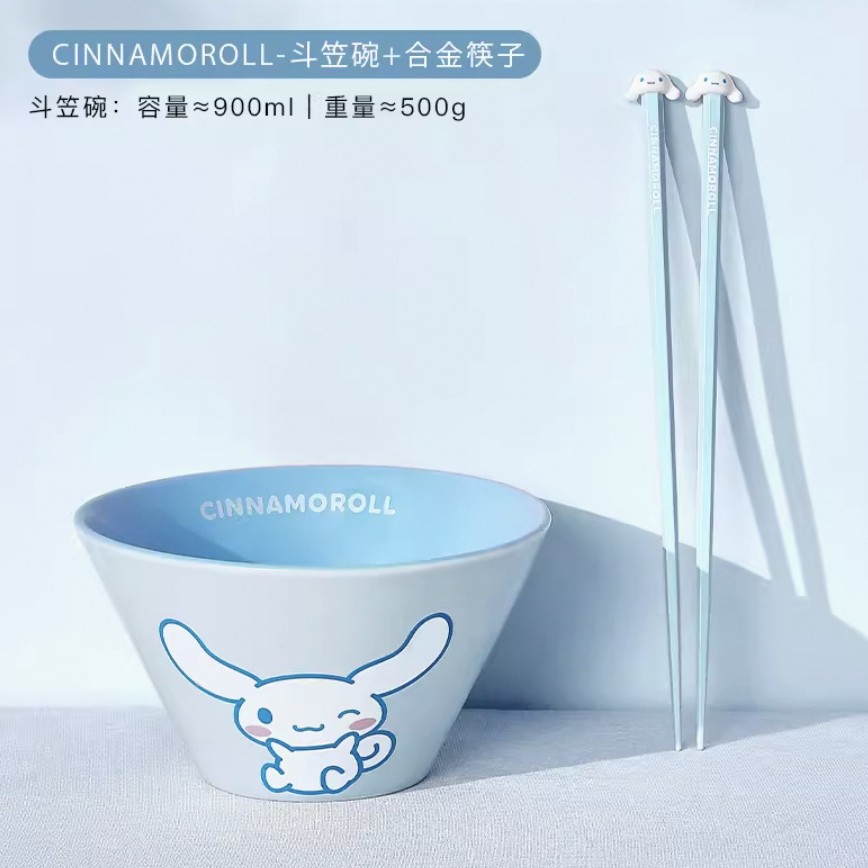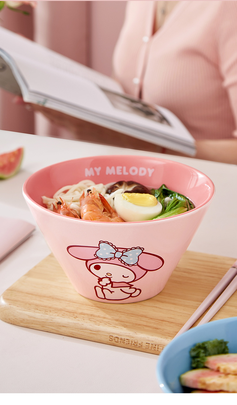 산리오 라면 그릇 개인용 가정용 세라믹 국수 그릇 두리그릇 식기 세트 M 그릇 젓가락 라면