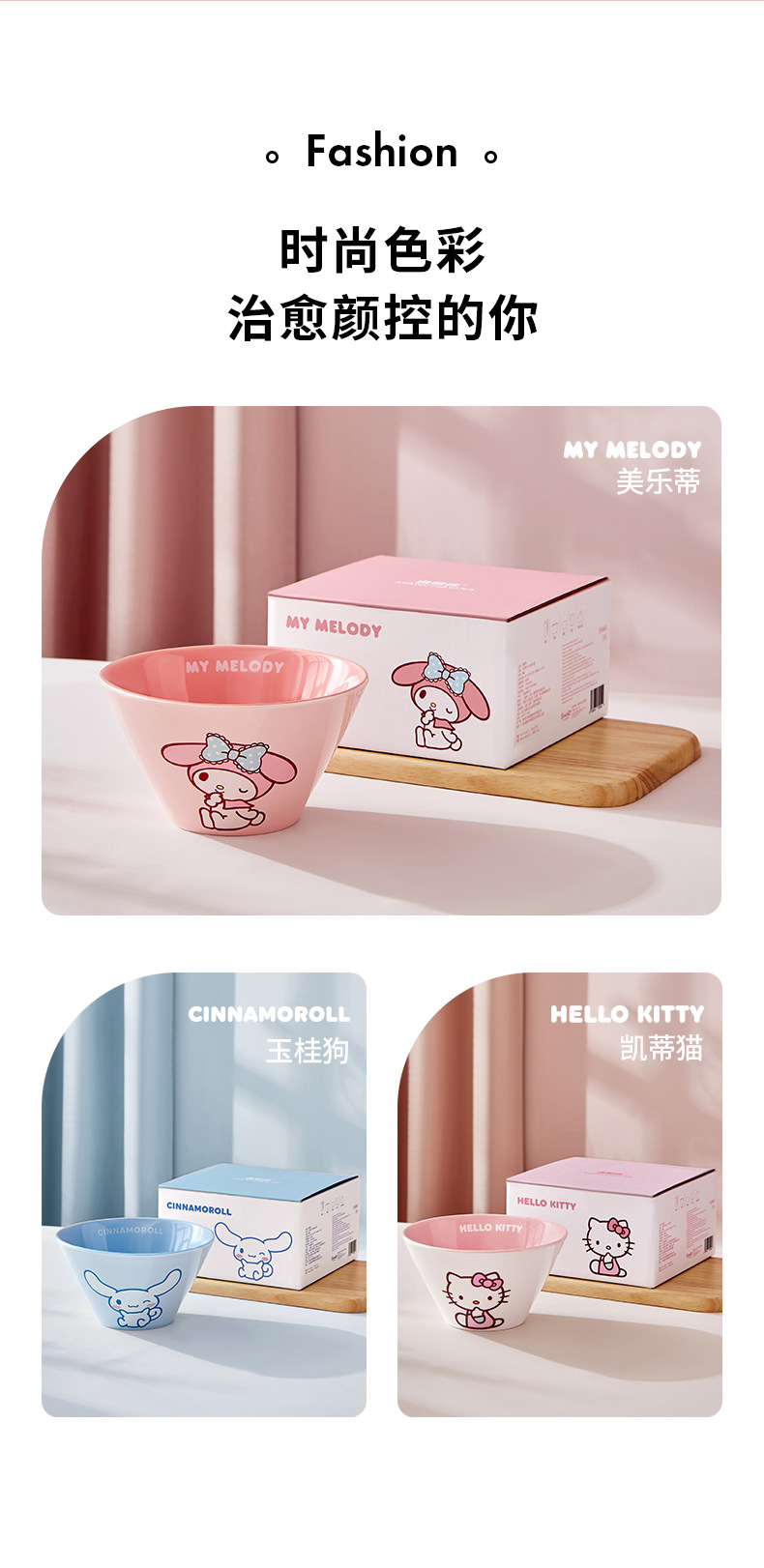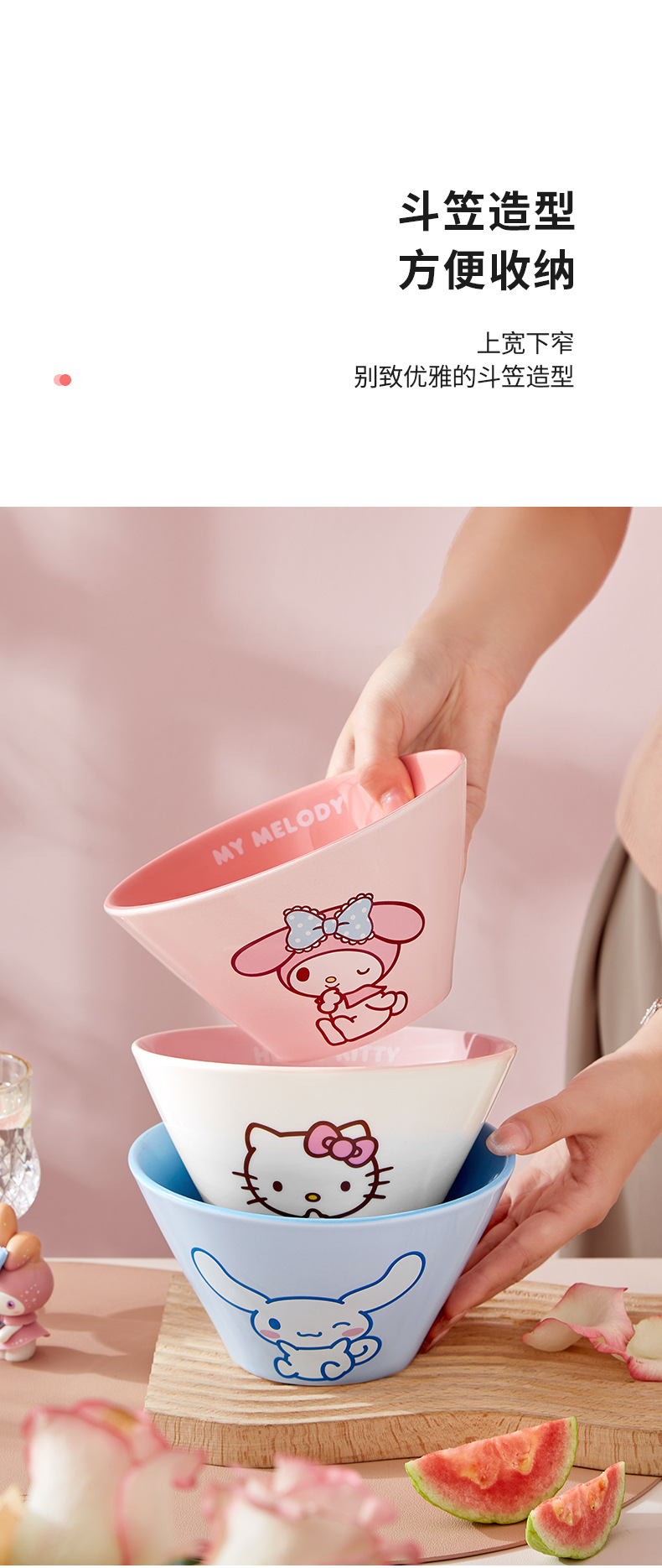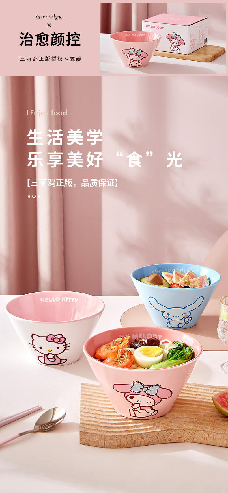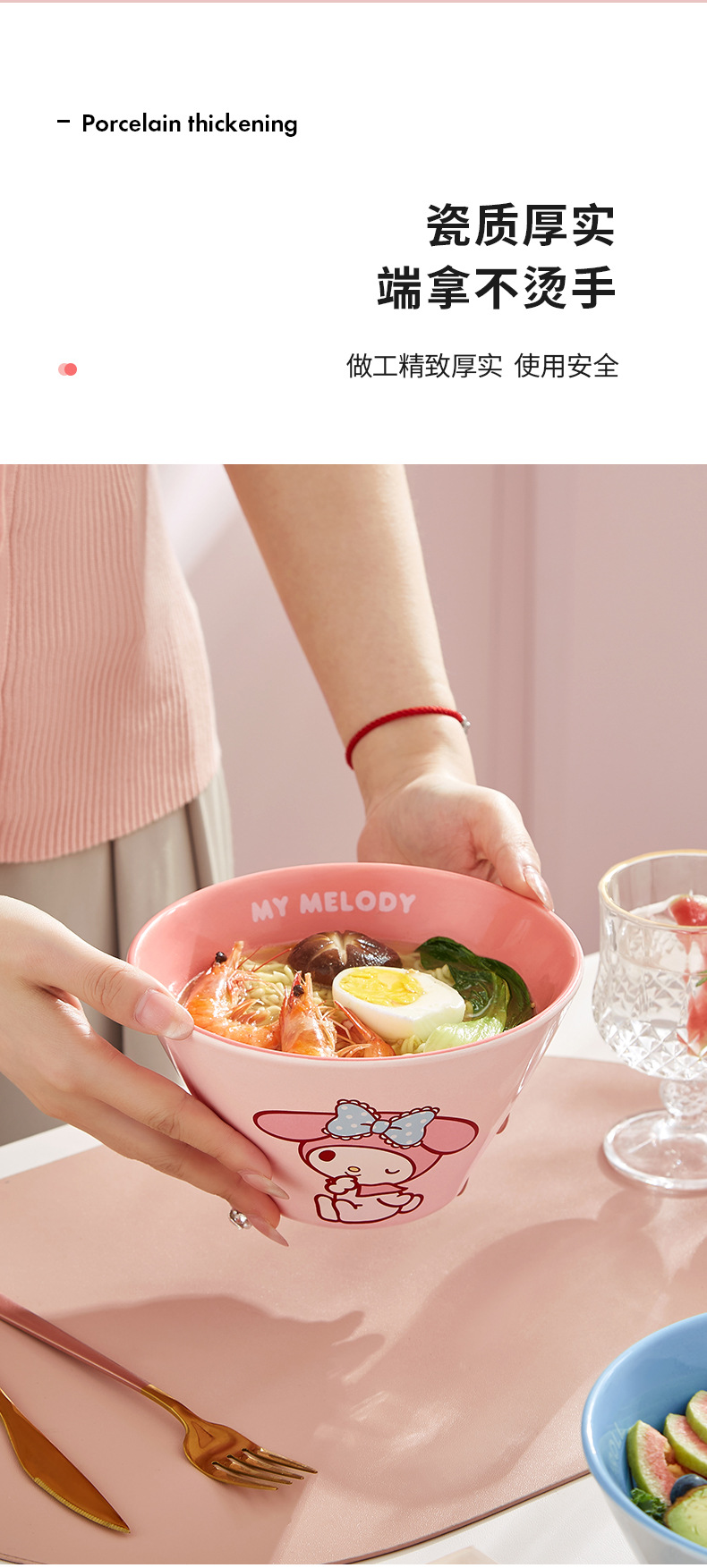 산리오 라면 그릇 개인용 가정용 세라믹 국수 그릇 두리그릇 식기 세트 M 그릇 젓가락 라면