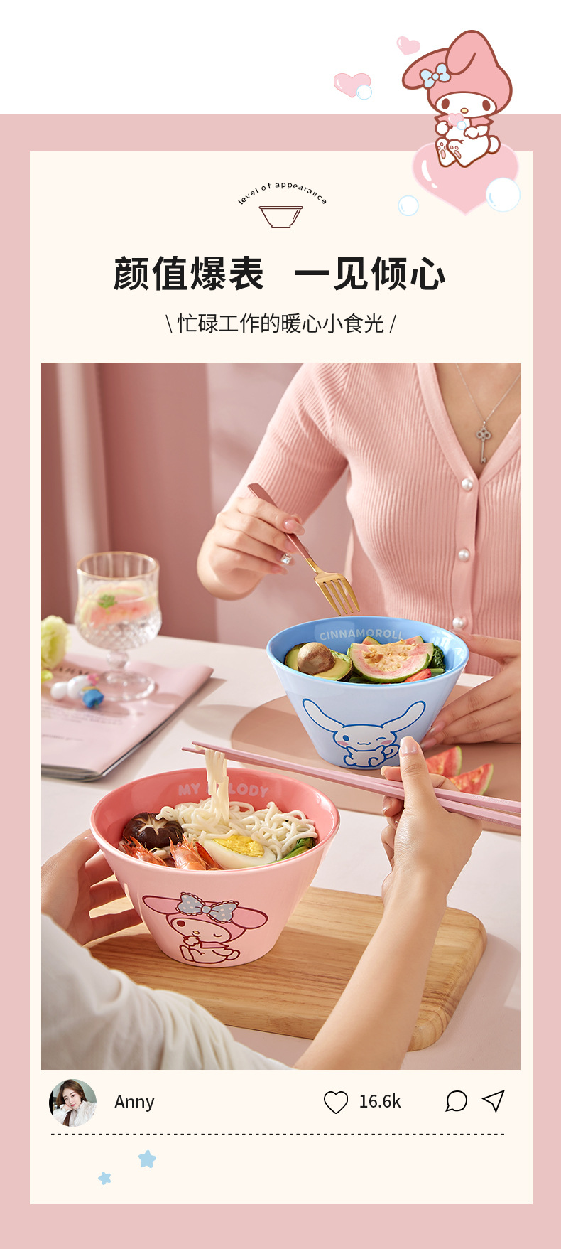 산리오 라면 그릇 개인용 가정용 세라믹 국수 그릇 두리그릇 식기 세트 M 그릇 젓가락 라면스토어 가기