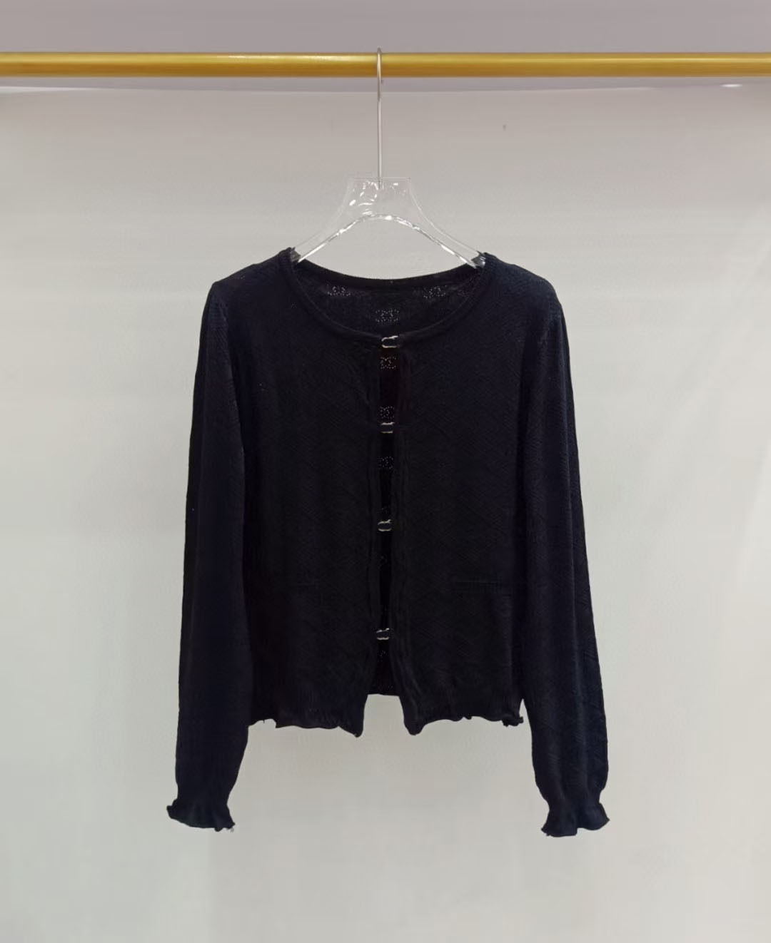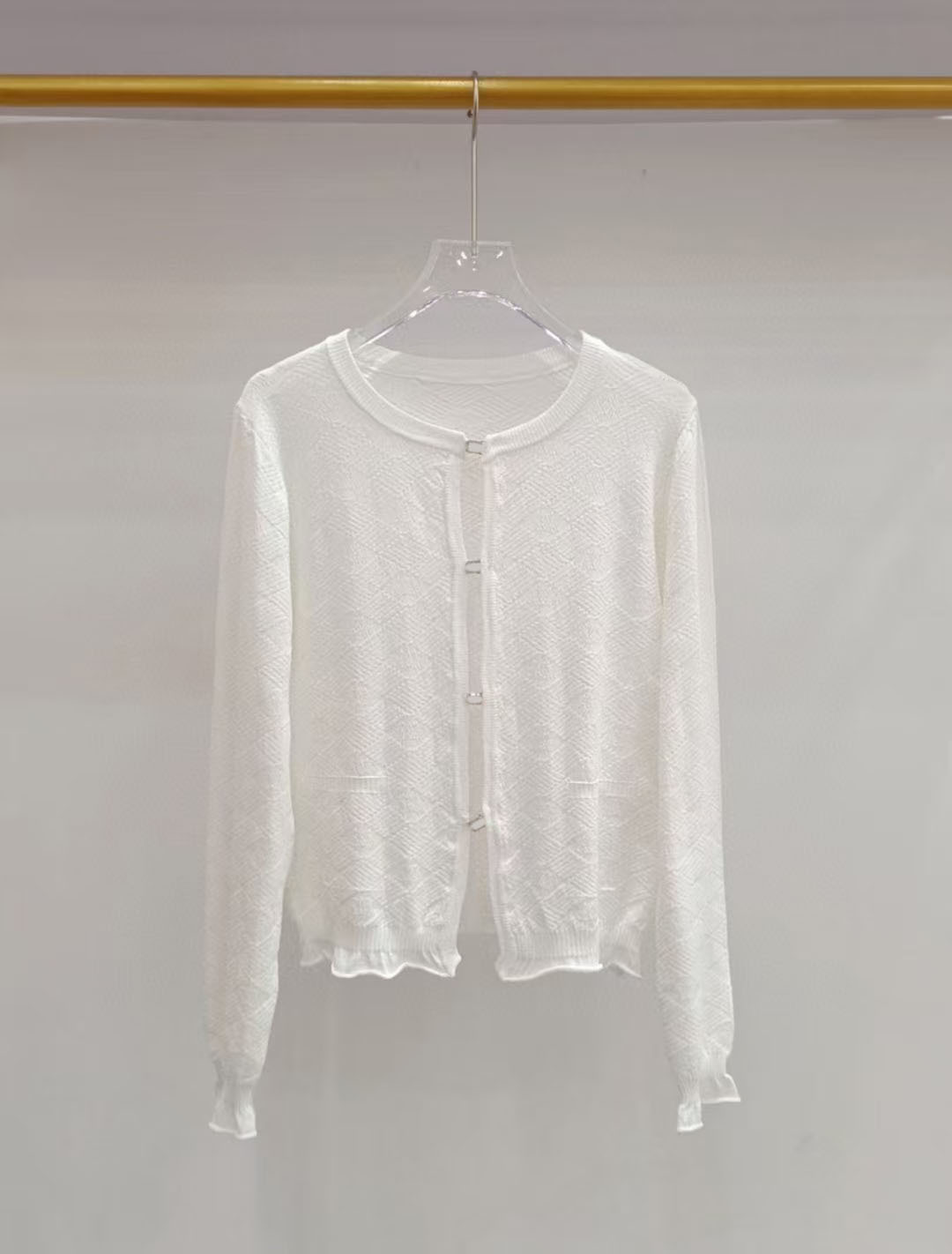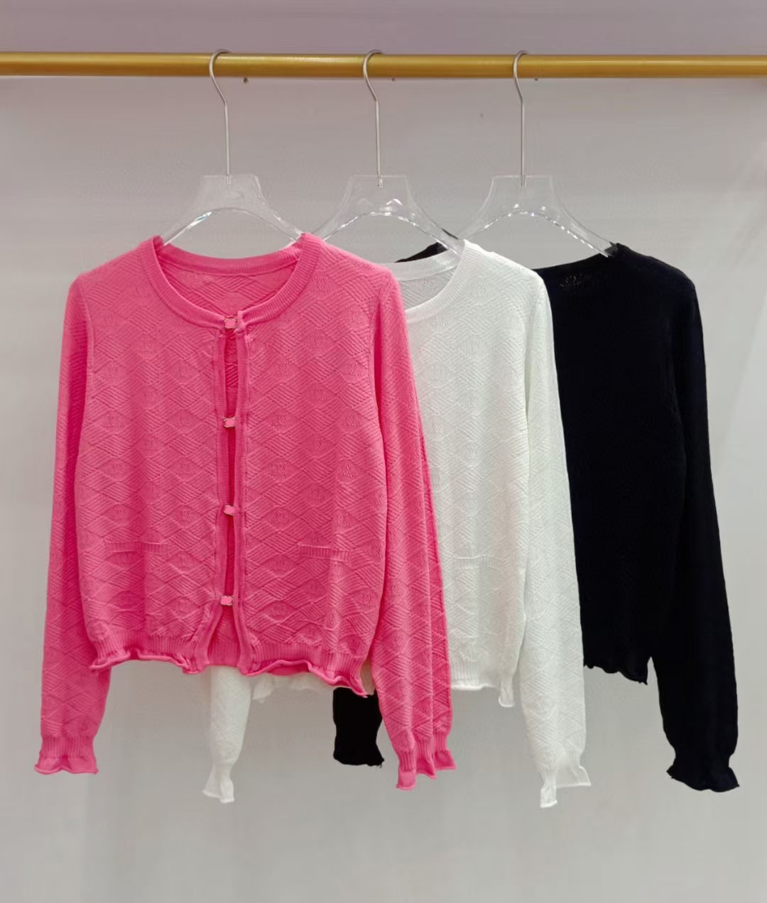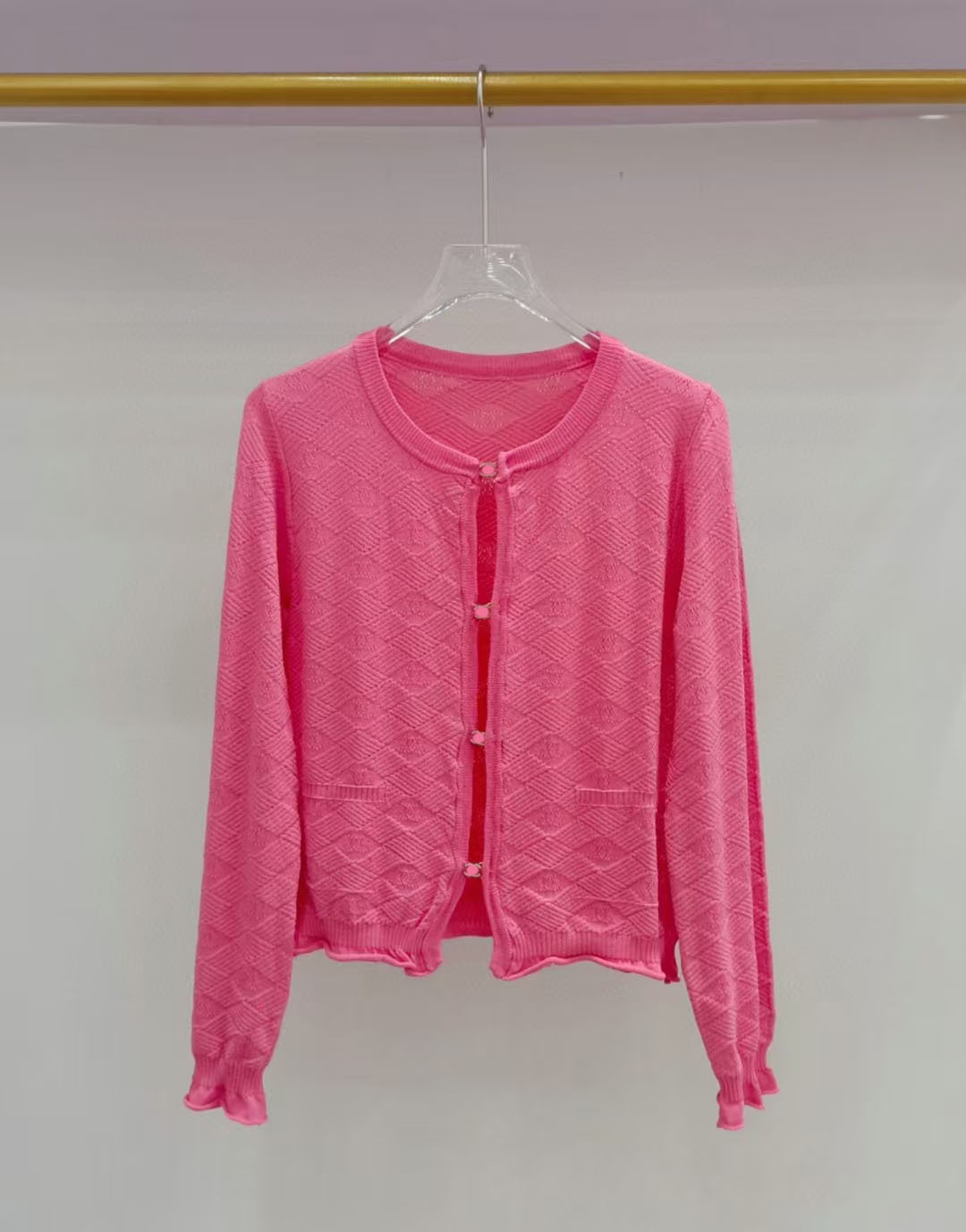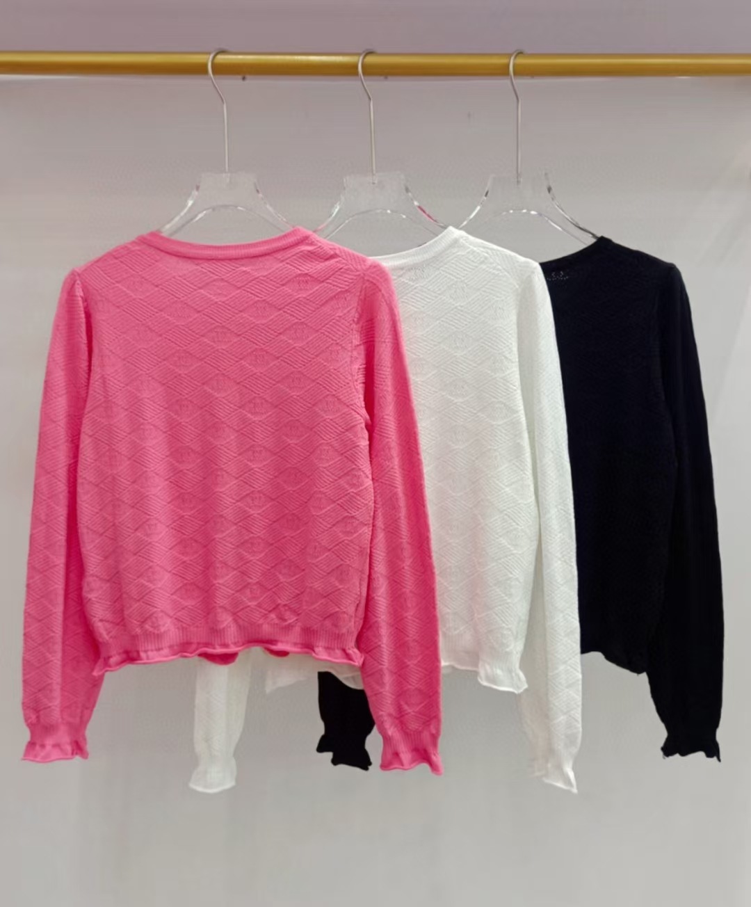 다이아몬드 버클 장식과 러플이 있는 라운드넥, 다이아몬드 패턴 레터링 자카드 긴팔 니트 가디건 탑, 여성용 통근용 스웨터, 숏 스타일스토어 가기