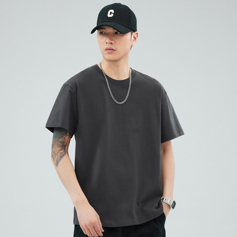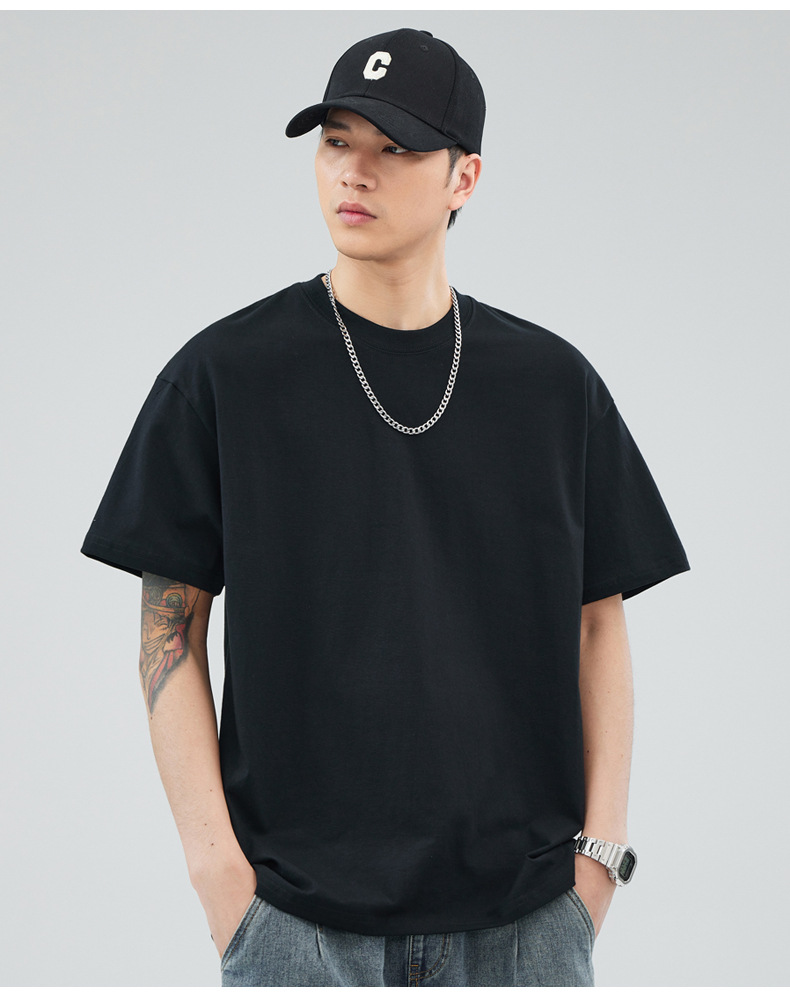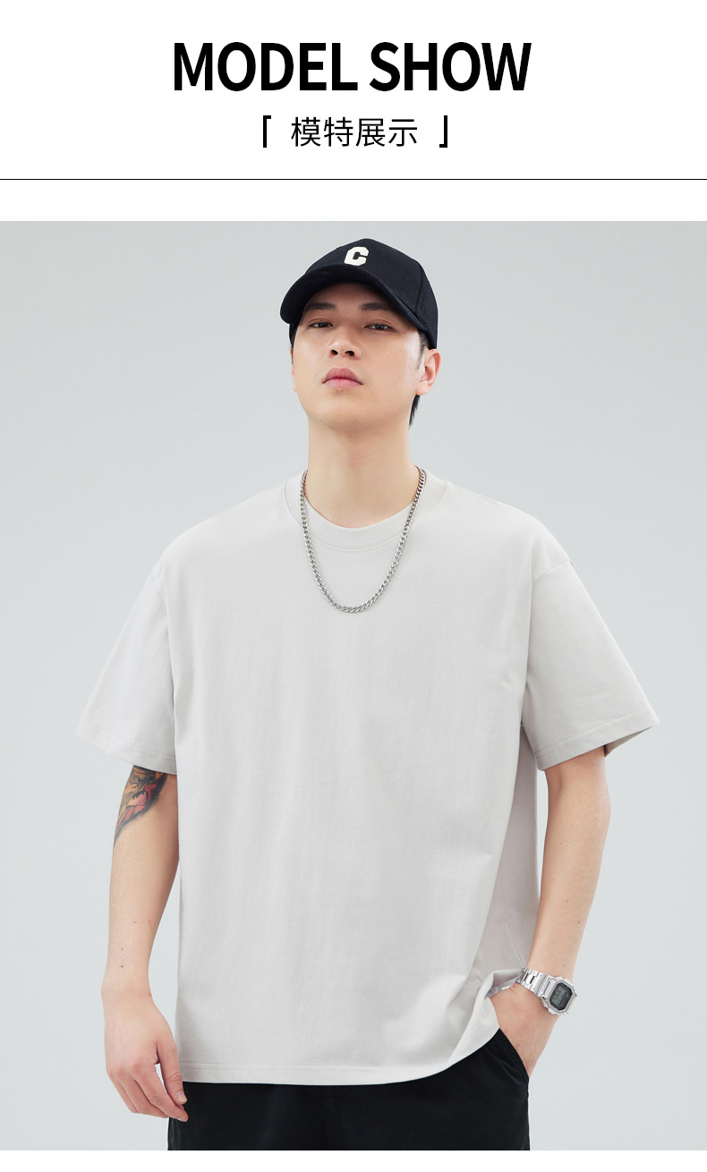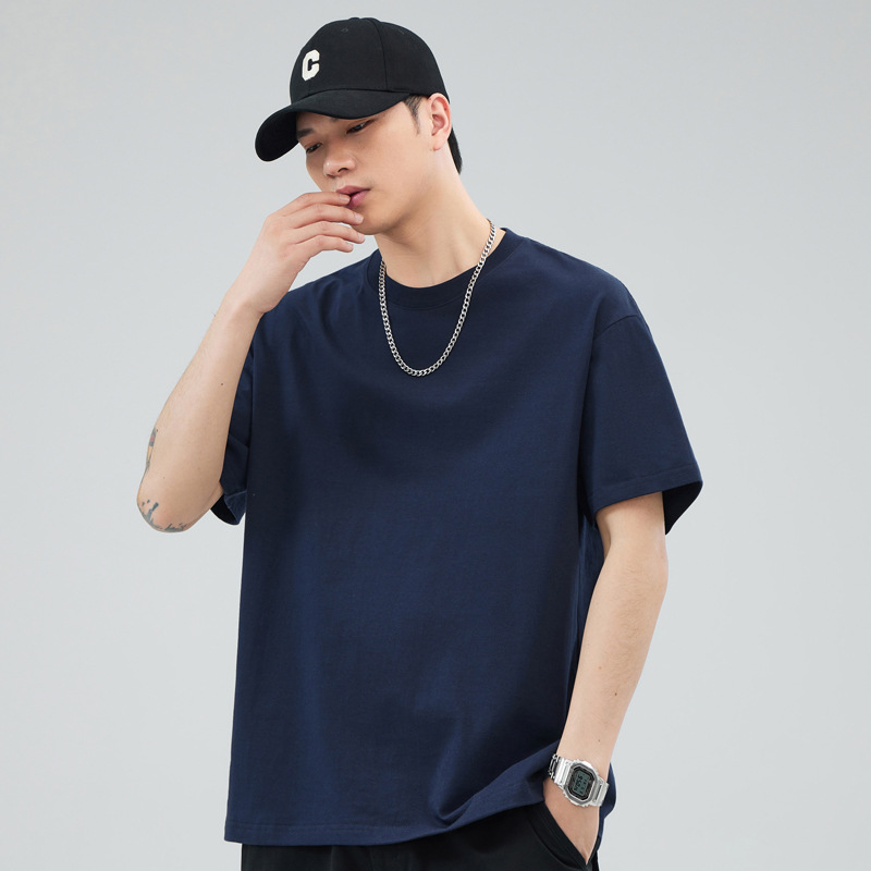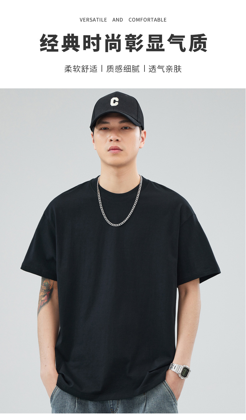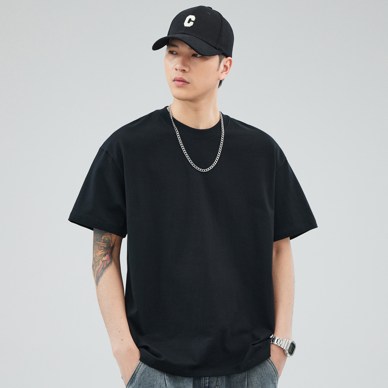 루즈핏 오버사이즈 드롭숄더 반팔 티셔츠 남성용 멋스럽고 트렌디한 넓은 칼라 무지 순면 반팔 티셔츠 남성용 라운드넥스토어 가기