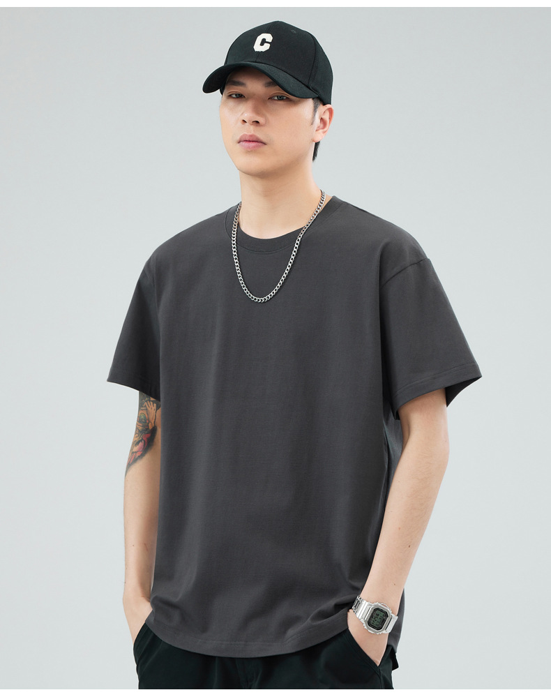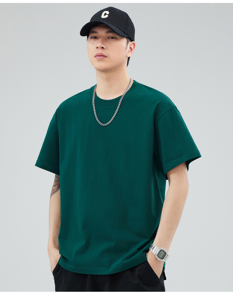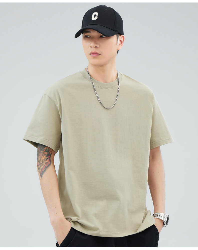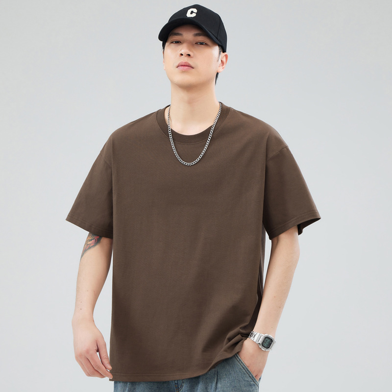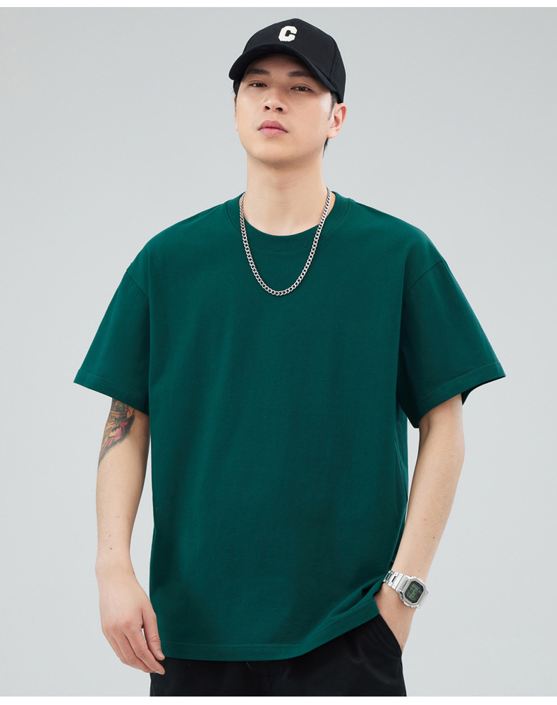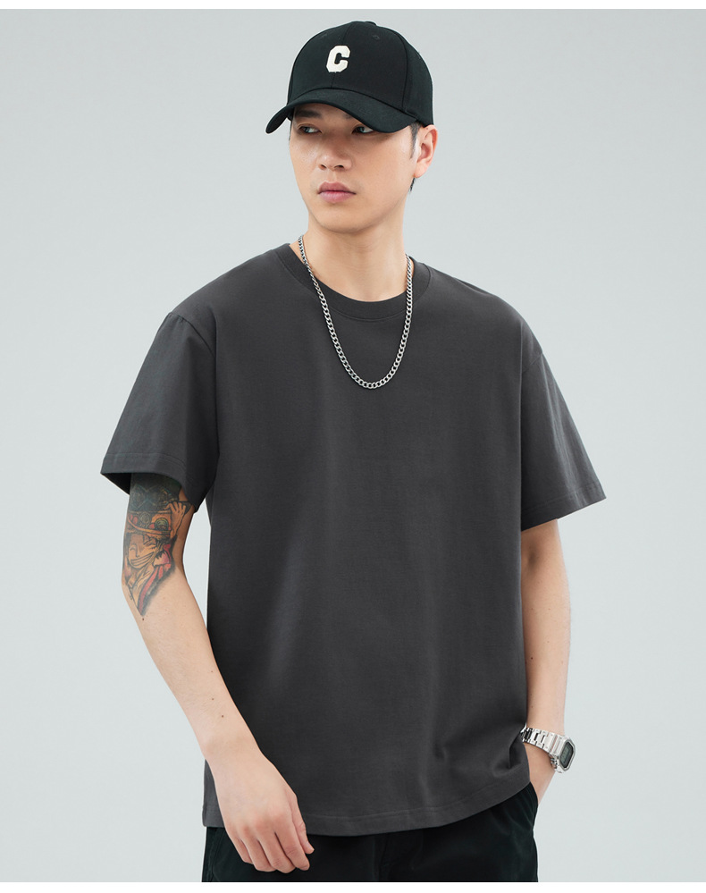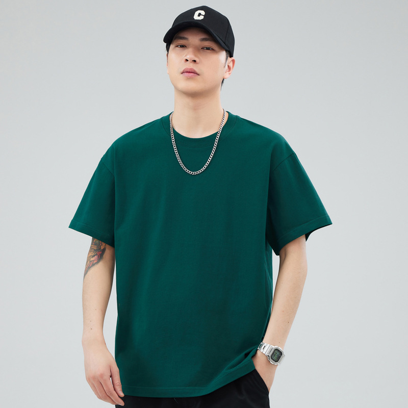 루즈핏 오버사이즈 드롭숄더 반팔 티셔츠 남성용 멋스럽고 트렌디한 넓은 칼라 무지 순면 반팔 티셔츠 남성용 라운드넥스토어 가기