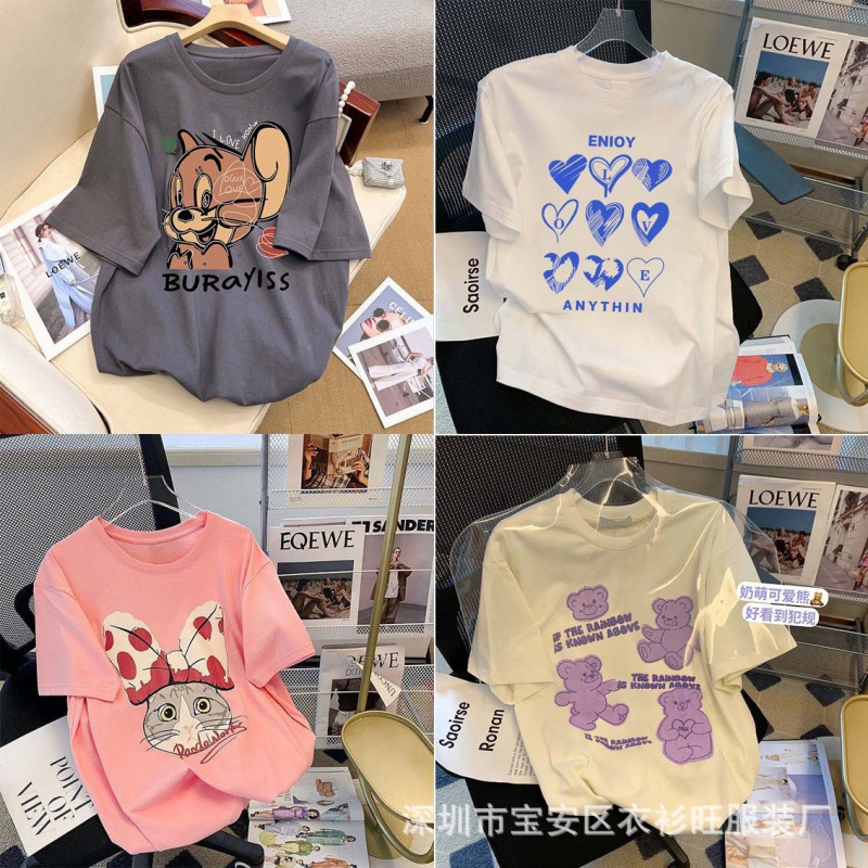 1위안 노점 도매 웹사이트 2025 여름 신상 반팔 여성 티셔츠 9.9 무료배송 여성 의류스토어 가기