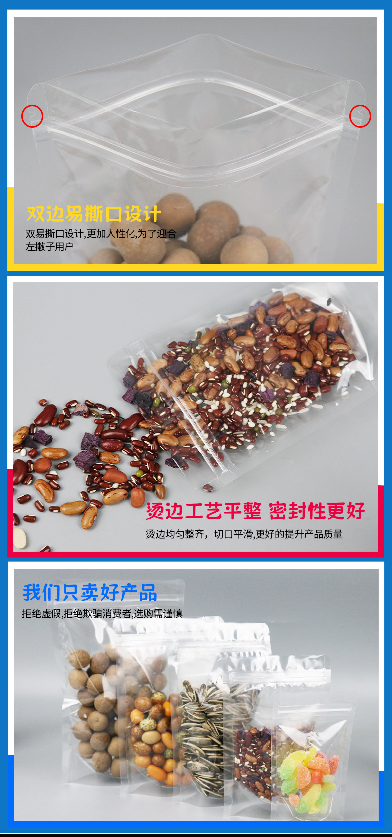반점 고화질 투명 자립 밀봉 가방 말린 과일 식품 선물 포장 가방 방습 지퍼 자체 밀봉 가방 도매