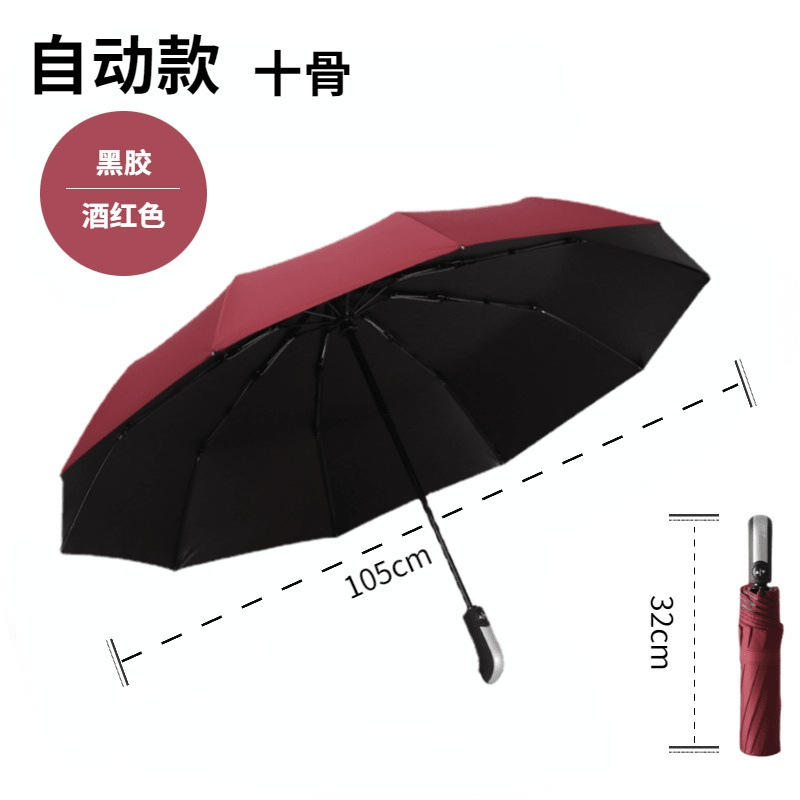 • 10 뼈 [자동 비닐] 버건디 우산