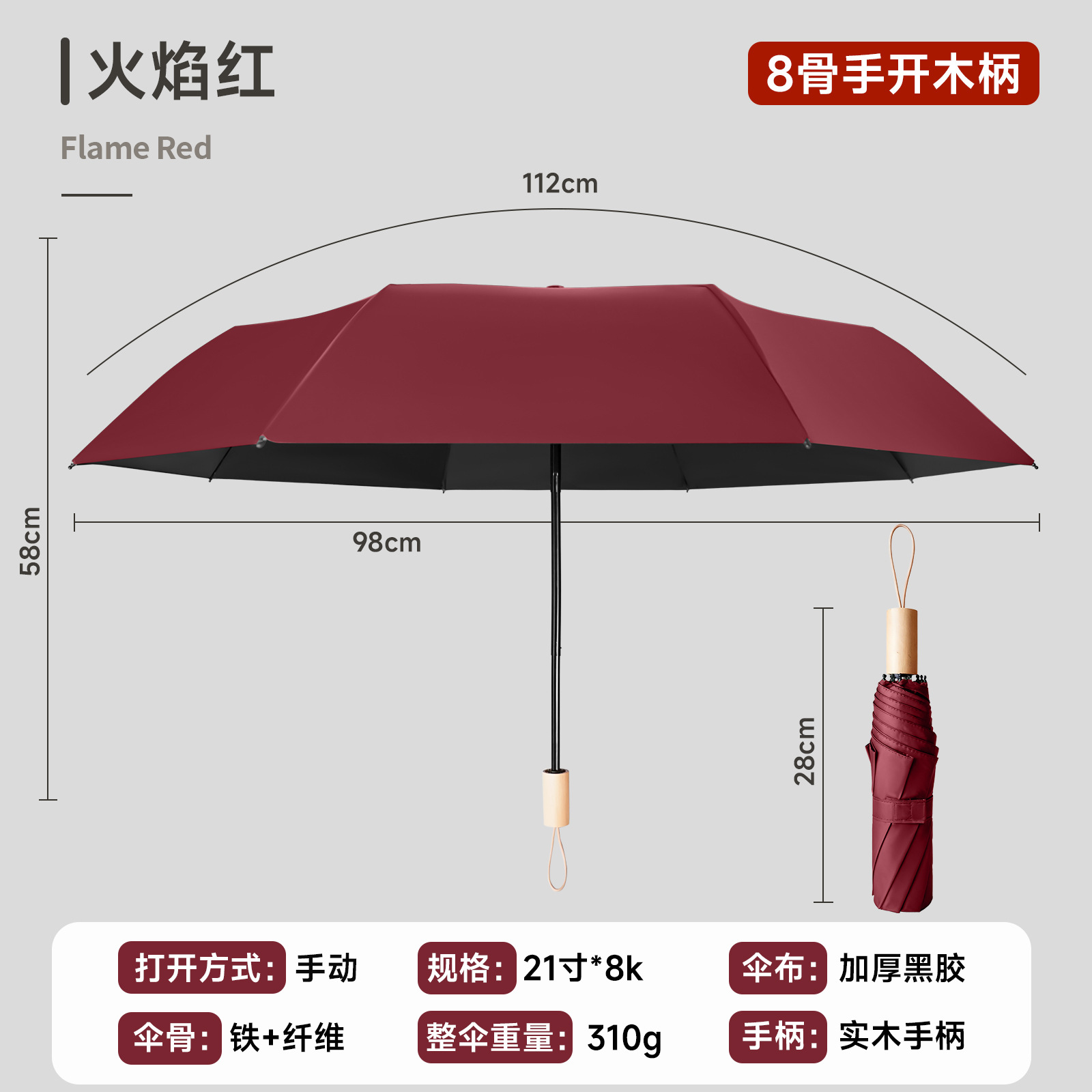 • 불꽃 레드 - 나무 손잡이 8본 수동
