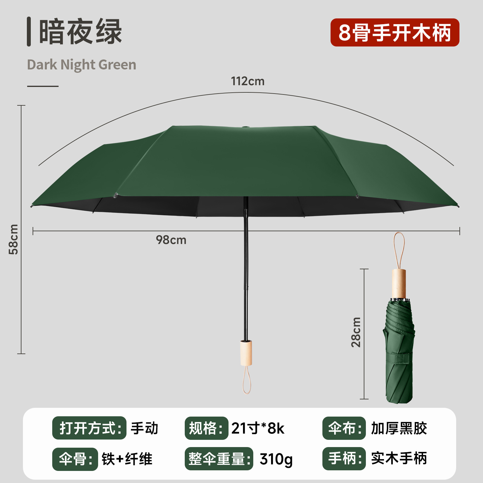 • 다크 나이트 그린 - 나무 손잡이 8본 수동
