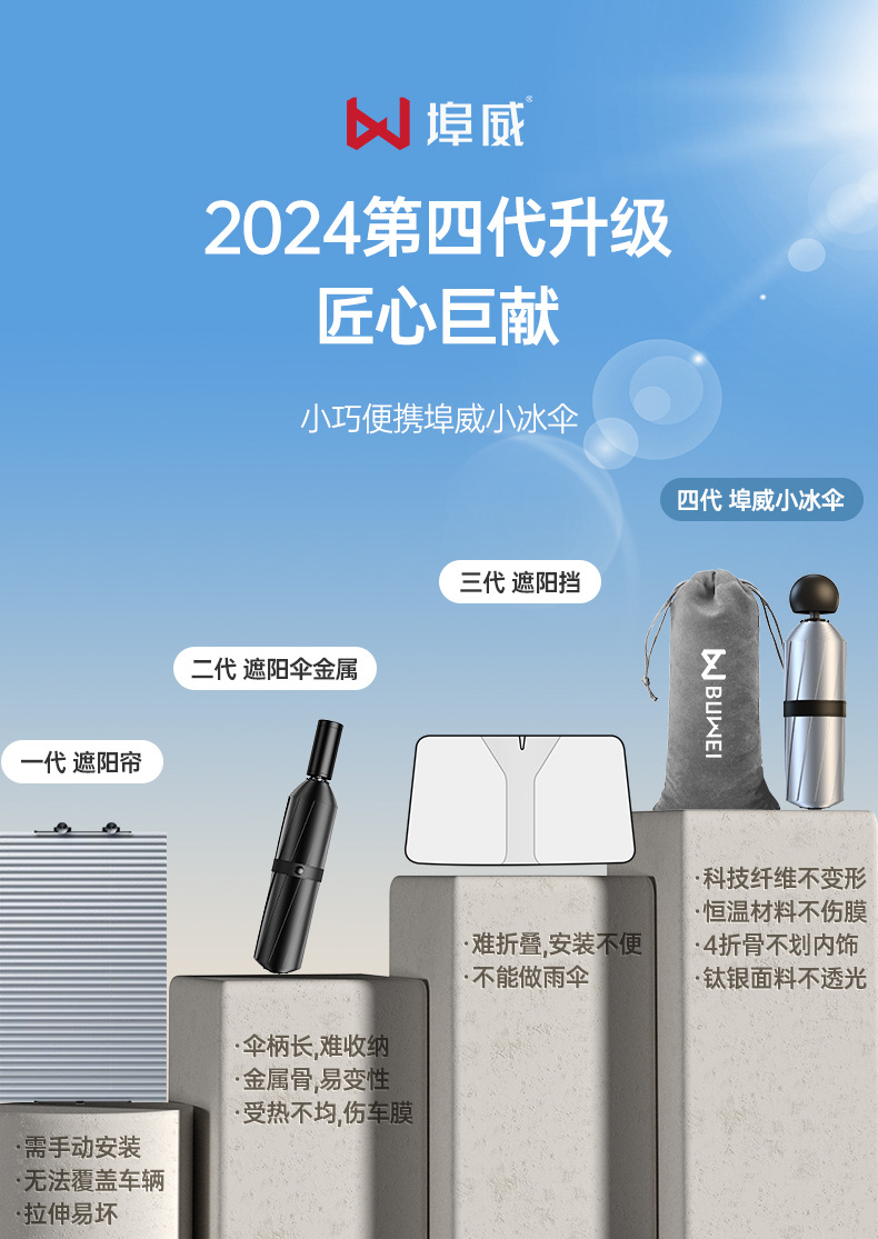 • Buwei ST038 파라솔 60% off 우산 작은 얼음 우산 + 차양 후면 가드 티타늄 실버 100*50
