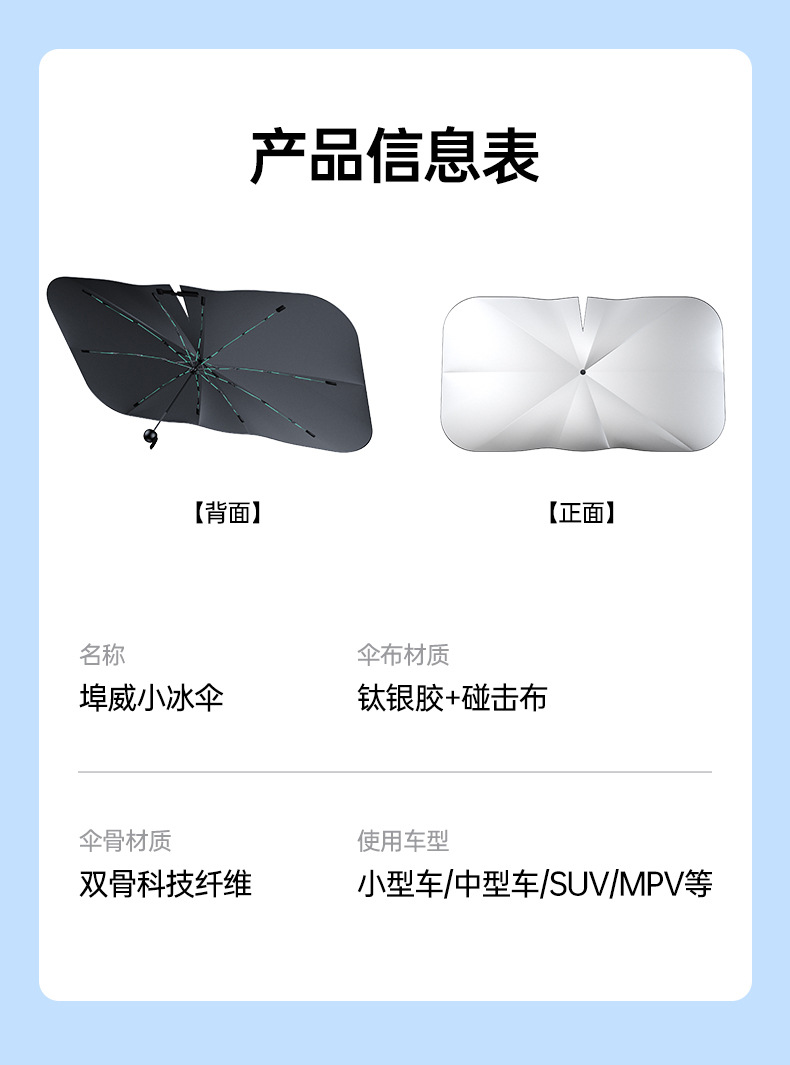 새로운 얼음 도자기 우산 자동차 차양 앞면 차양 커튼 태양 보호 단열 앞 유리 양산 유물