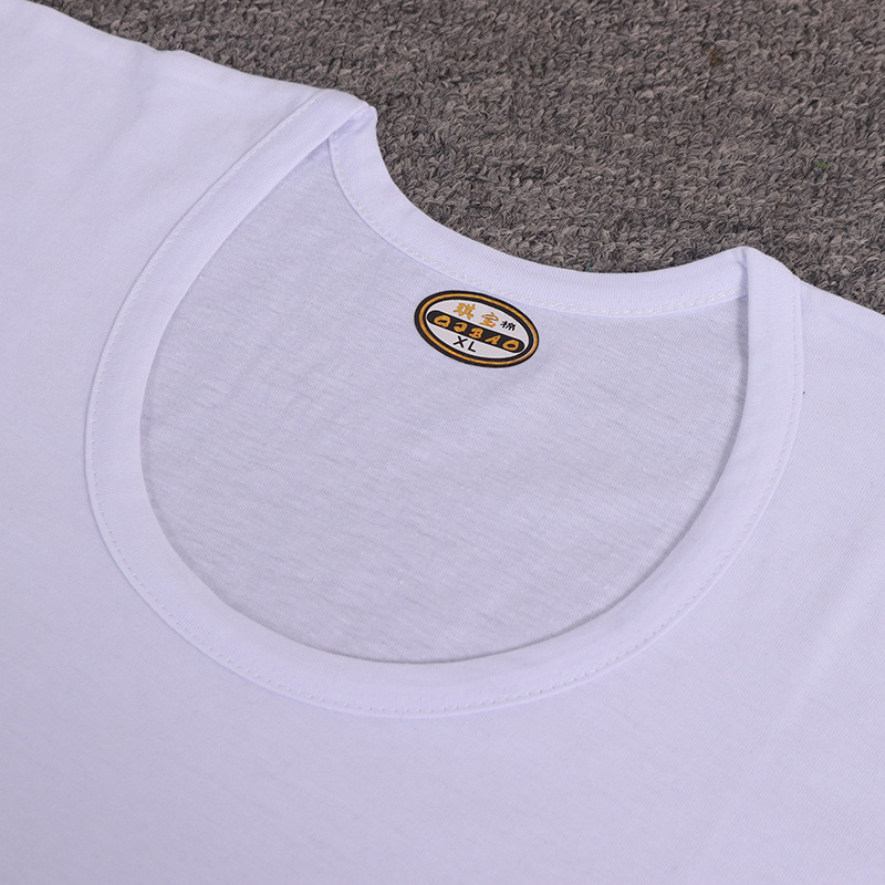 白色采用32支精梳棉面料,柔软透气吸汗,久穿不勾丝,不起球。
