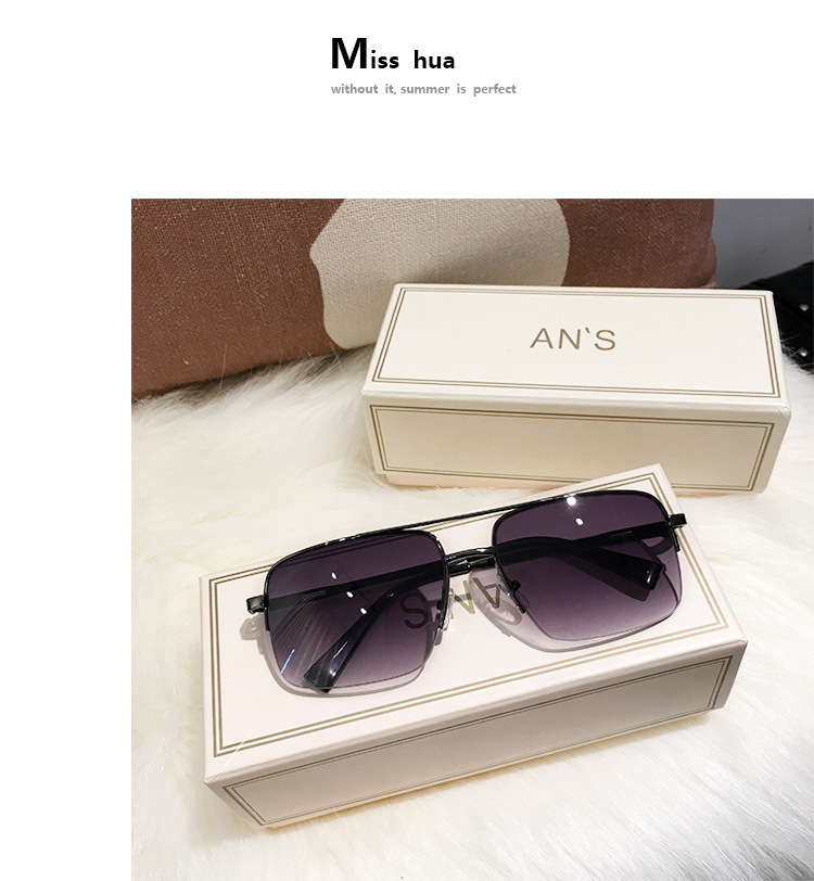 남성 운전 안티 자외선 스퀘어 선글라스 인터넷 연예인 큰 얼굴 눈 유행 성격 청록색 하프 프레임 선글라스스토어 가기