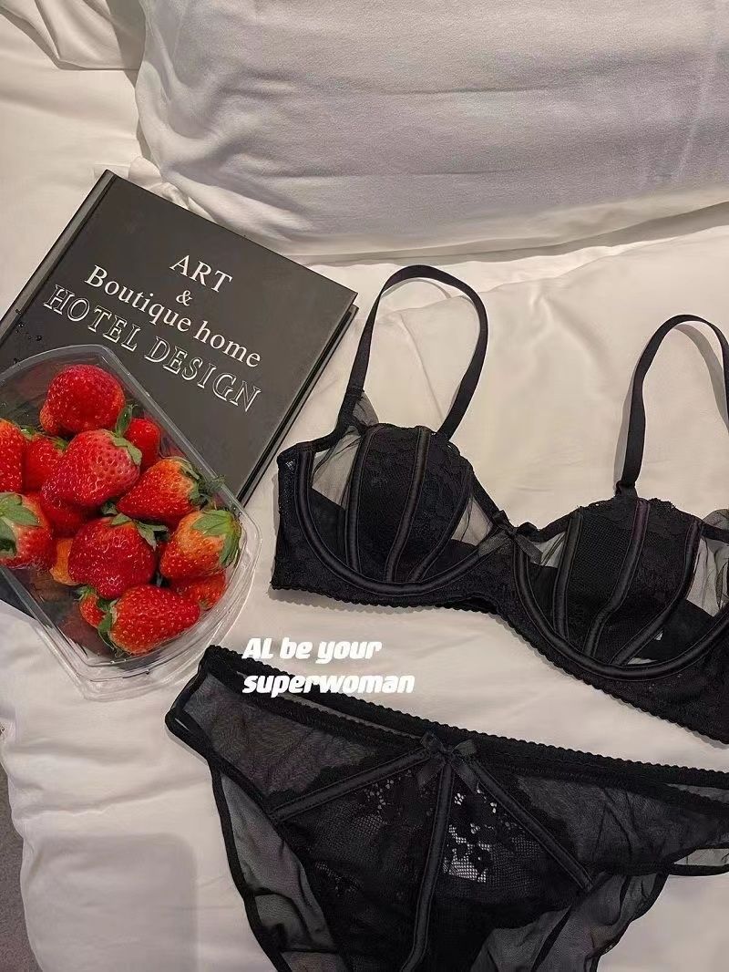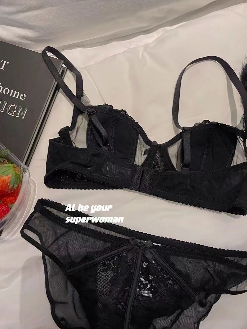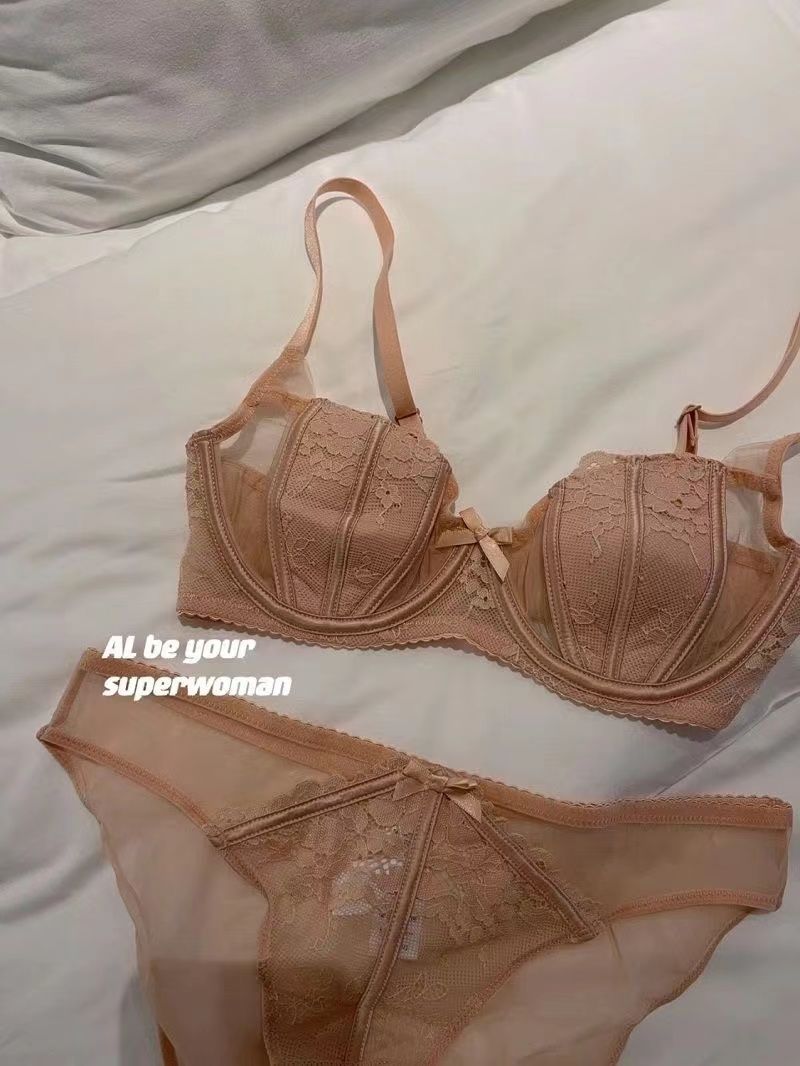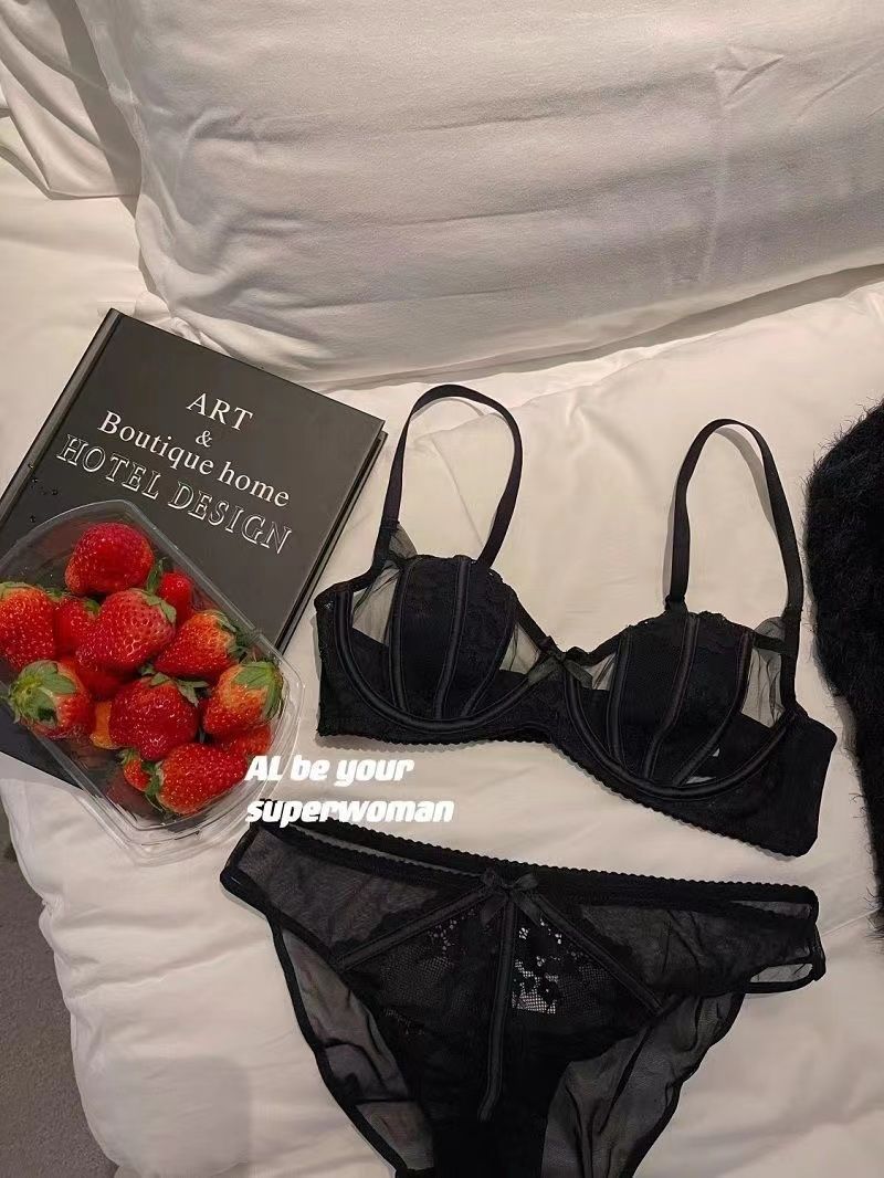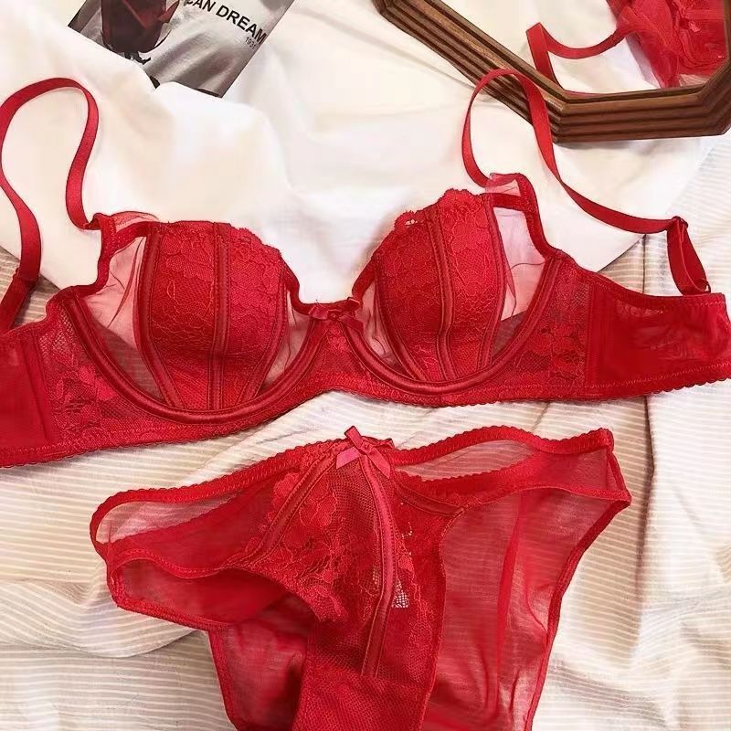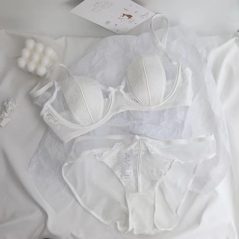 섹시한 더블 우아한 프랑스 스타일 레이스 속옷 세트 여성의 부드러운 스틸 링 푸시 업 편안한 빈 컵 브래지어