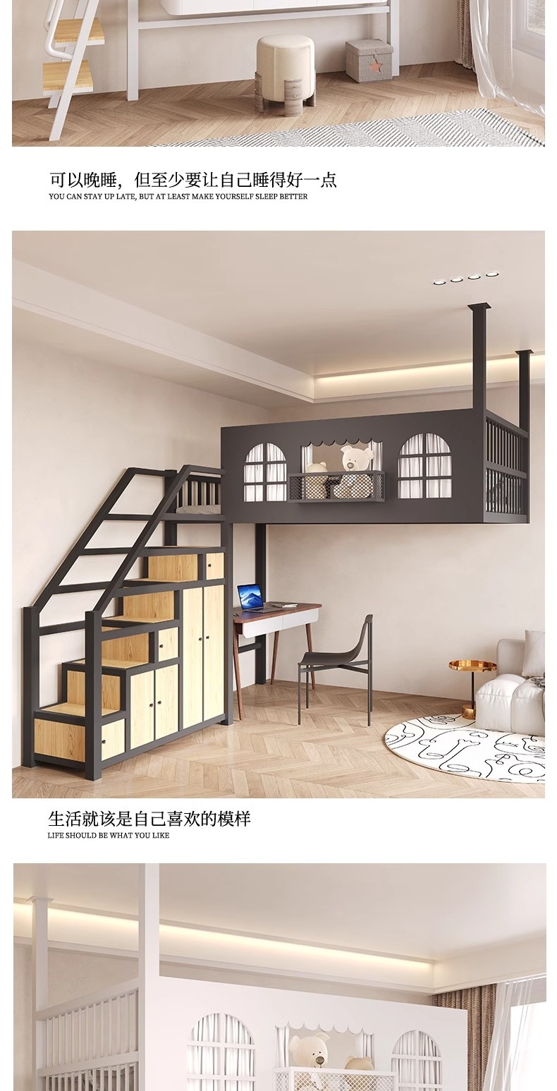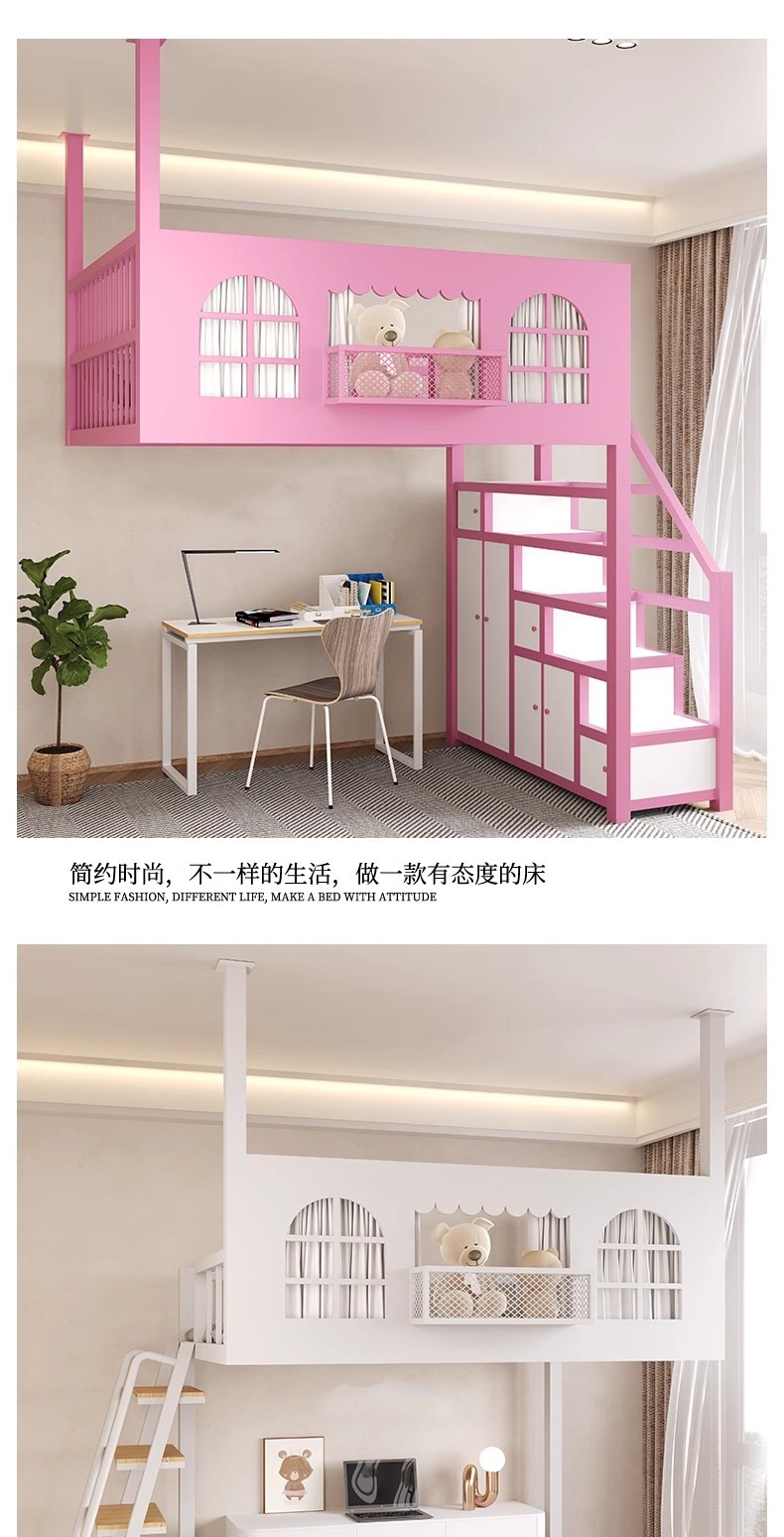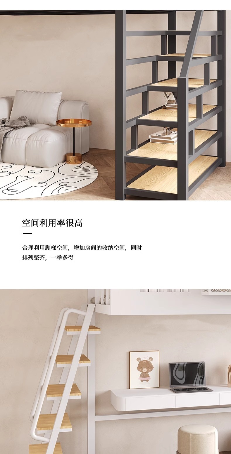 공간 절약형 두꺼운 고가 침대 소형 아파트 싱글 어퍼 교수형 침대 다락방 아이언 해먹 벽걸이 사다리 캐비닛 침대스토어 가기