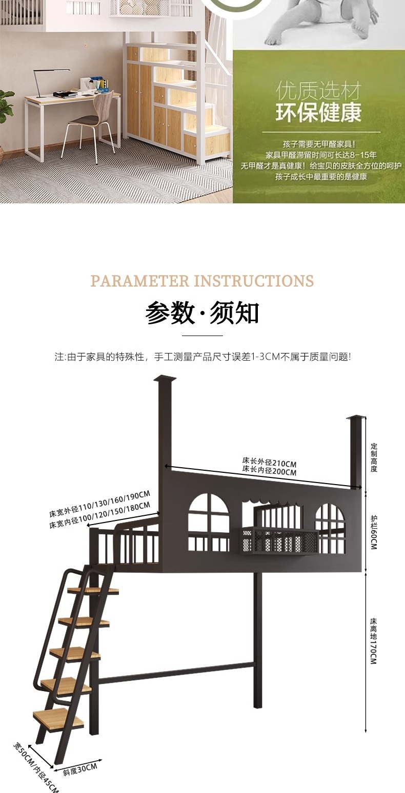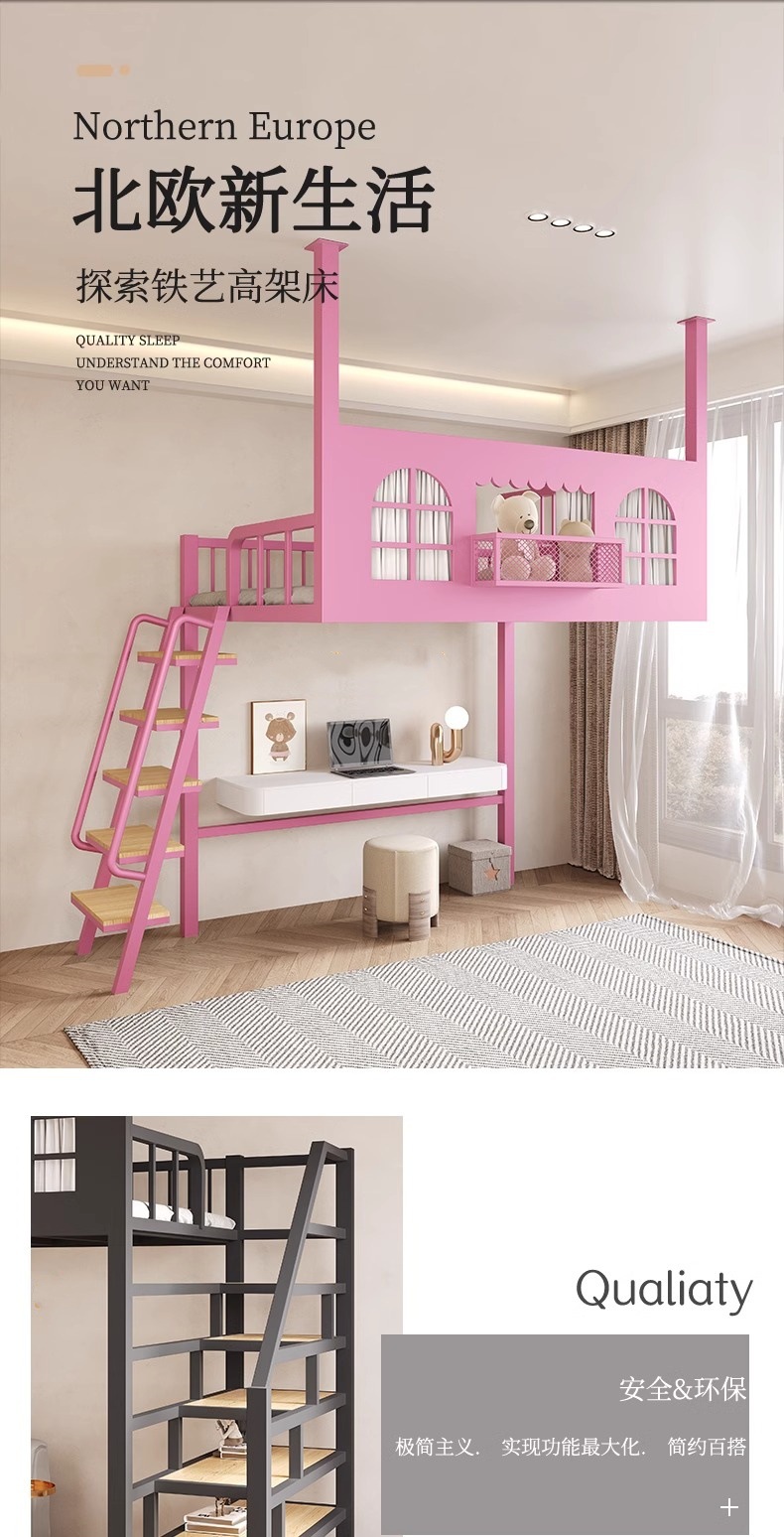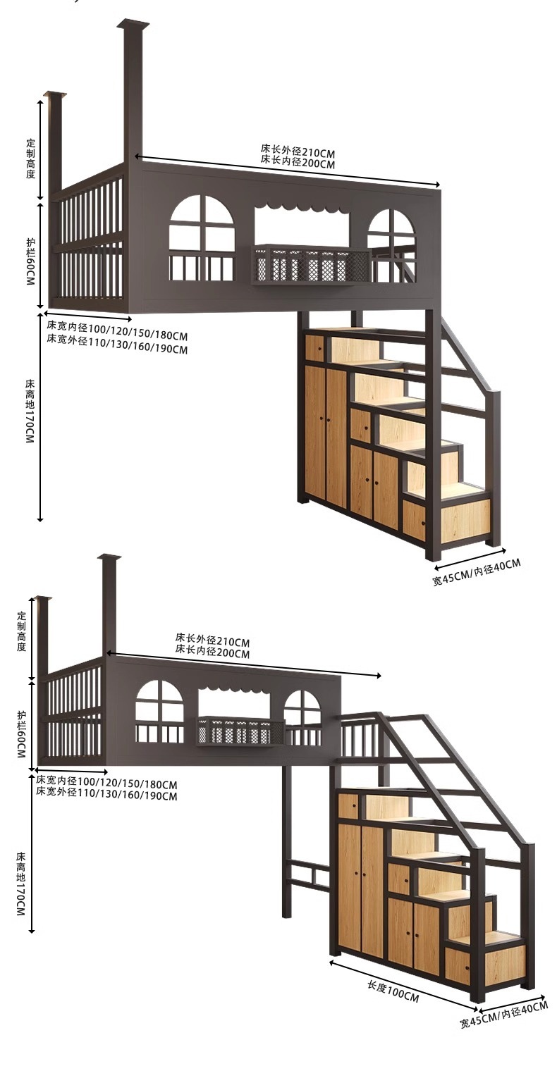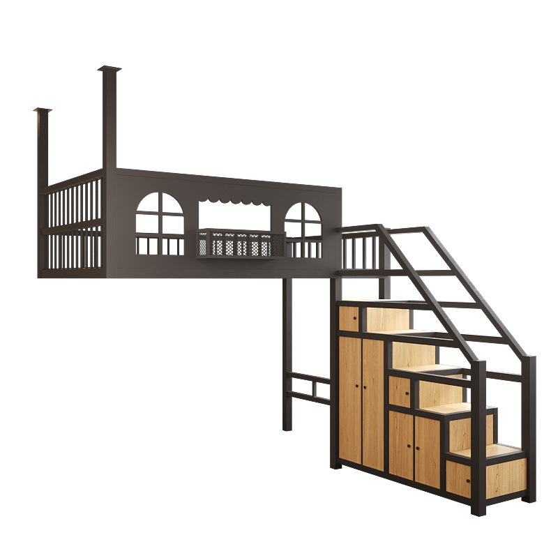 공간 절약형 두꺼운 고가 침대 소형 아파트 싱글 어퍼 교수형 침대 다락방 아이언 해먹 벽걸이 사다리 캐비닛 침대스토어 가기