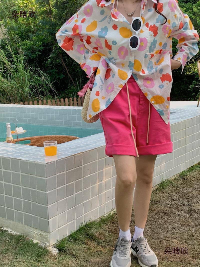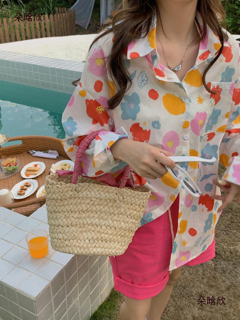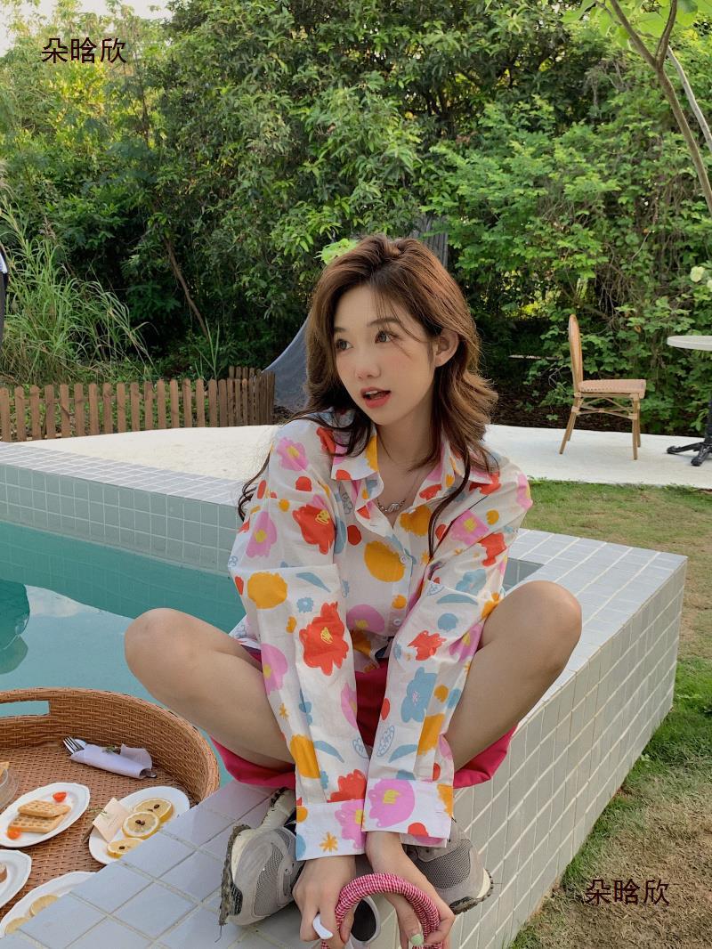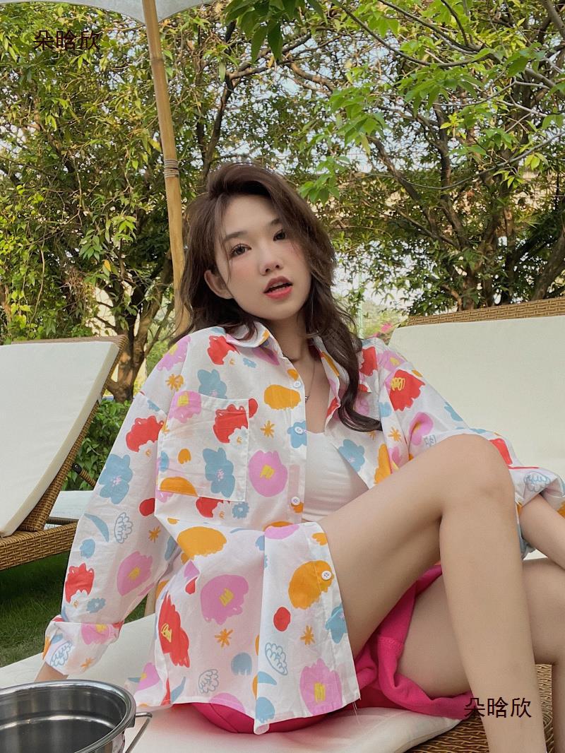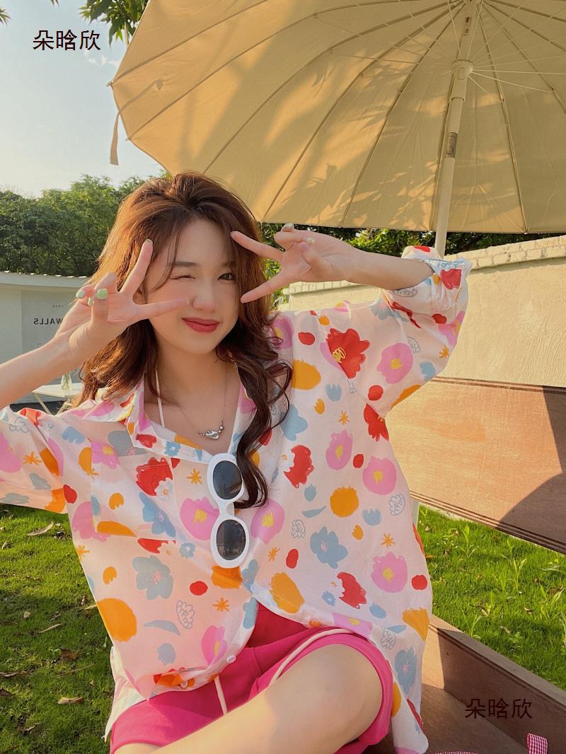 달콤한 꽃 휴가 셔츠 여성의 봄과 여름 느슨한 슬리밍 중장 셔츠 틈새 긴팔 썬 스크린 탑