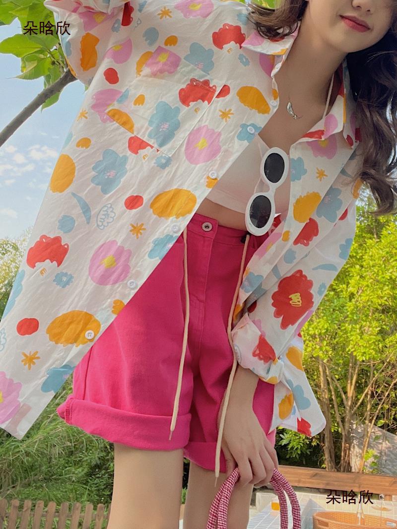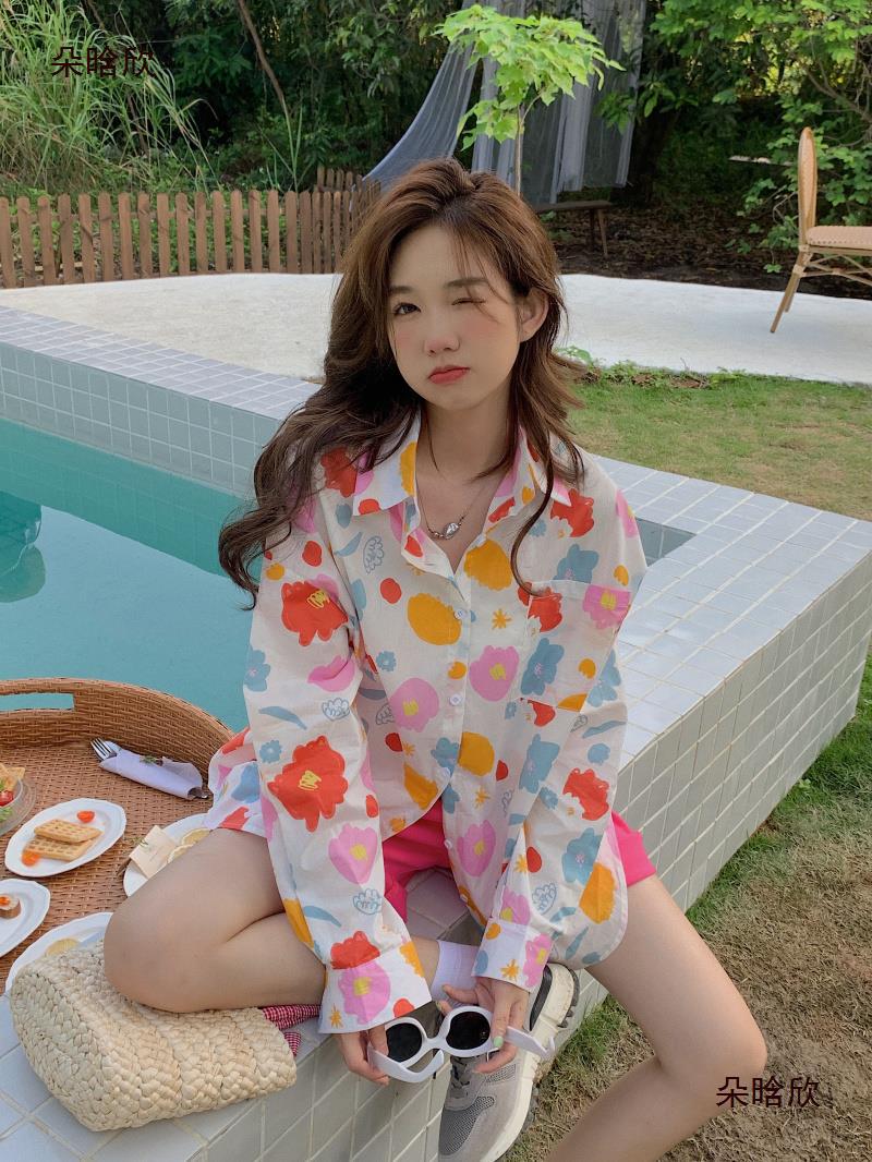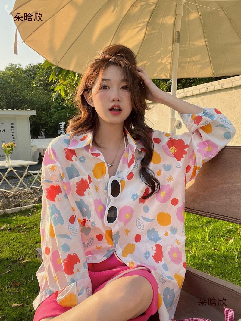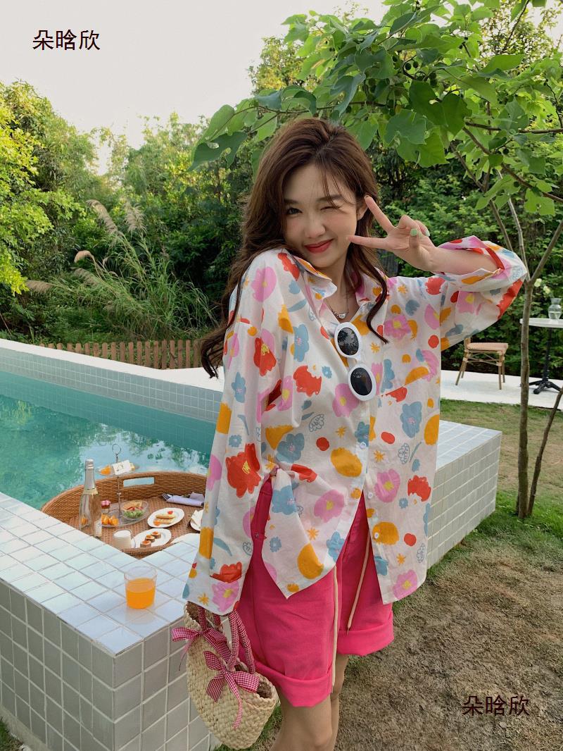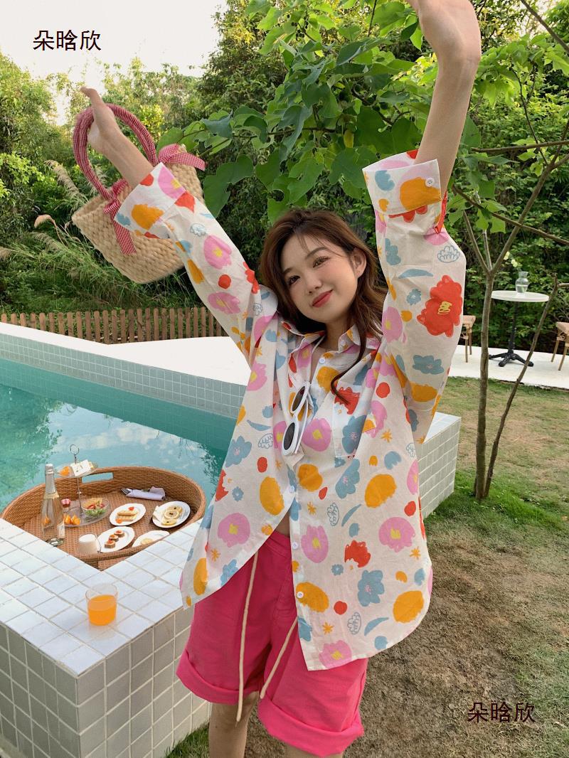 달콤한 꽃 휴가 셔츠 여성의 봄과 여름 느슨한 슬리밍 중장 셔츠 틈새 긴팔 썬 스크린 탑스토어 가기