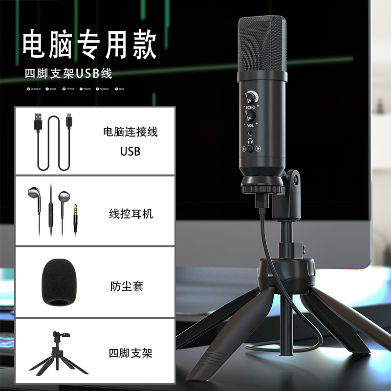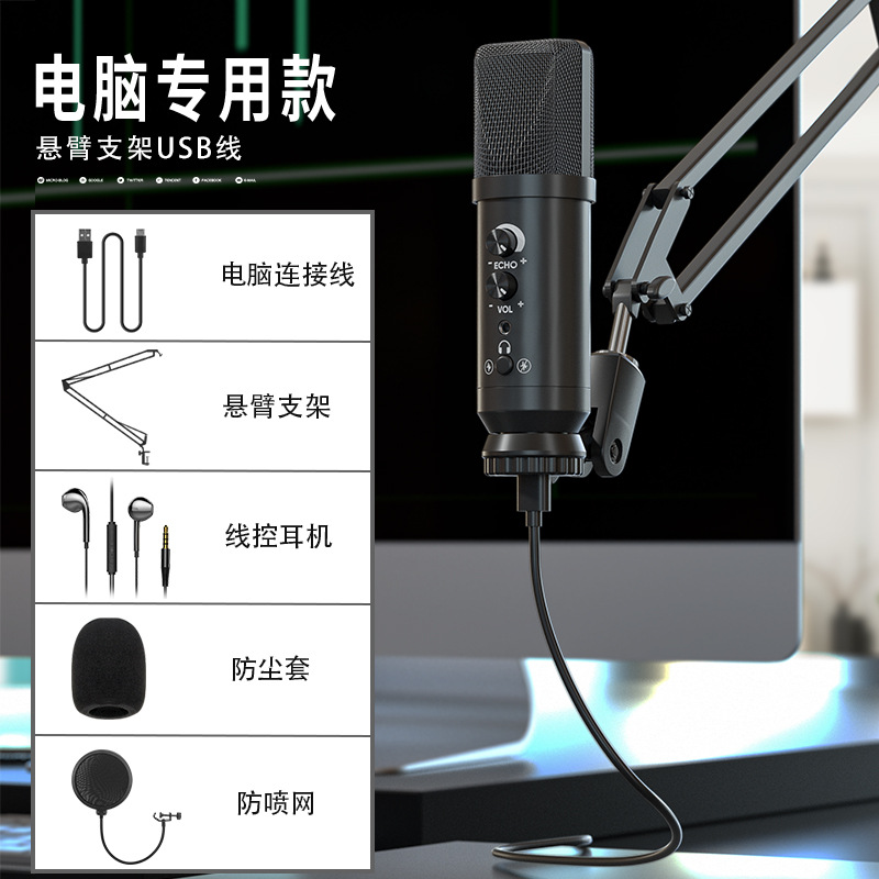 게임 USB 콘덴서 마이크 컴퓨터 휴대 전화 라이브 사운드 카드 노래 노래 녹음 가정용 특수 소음 감소 마이크스토어 가기