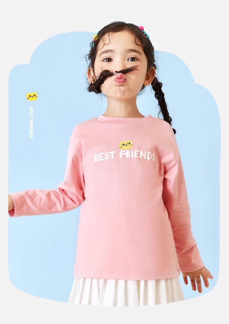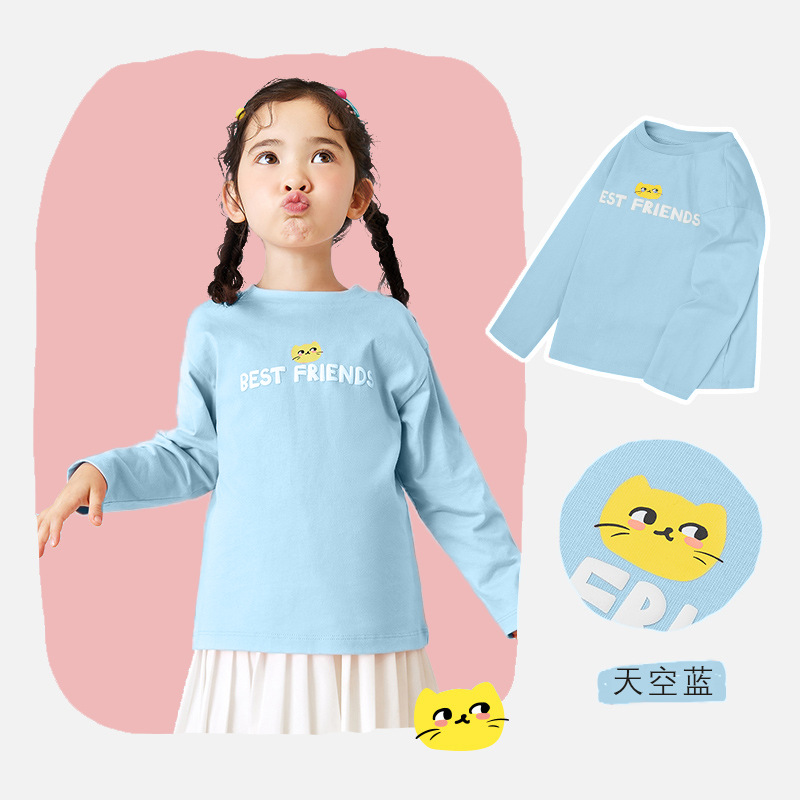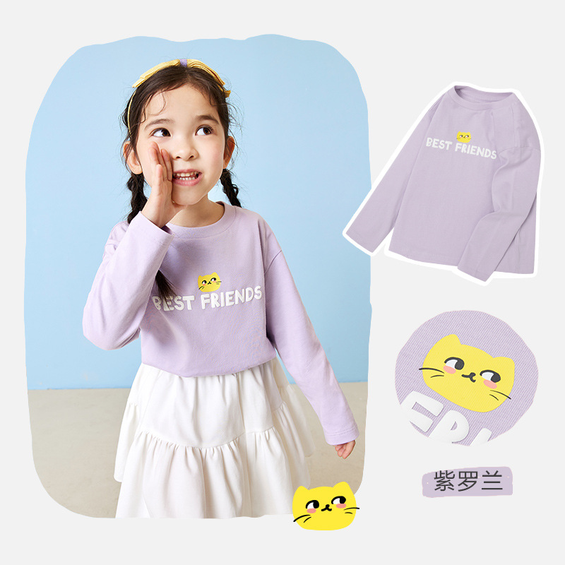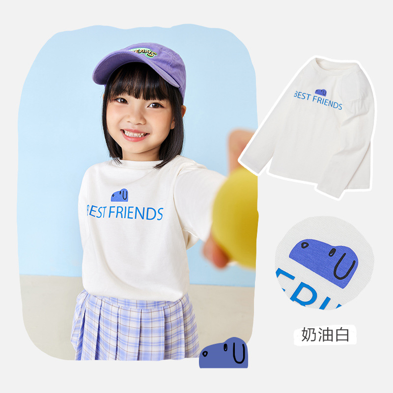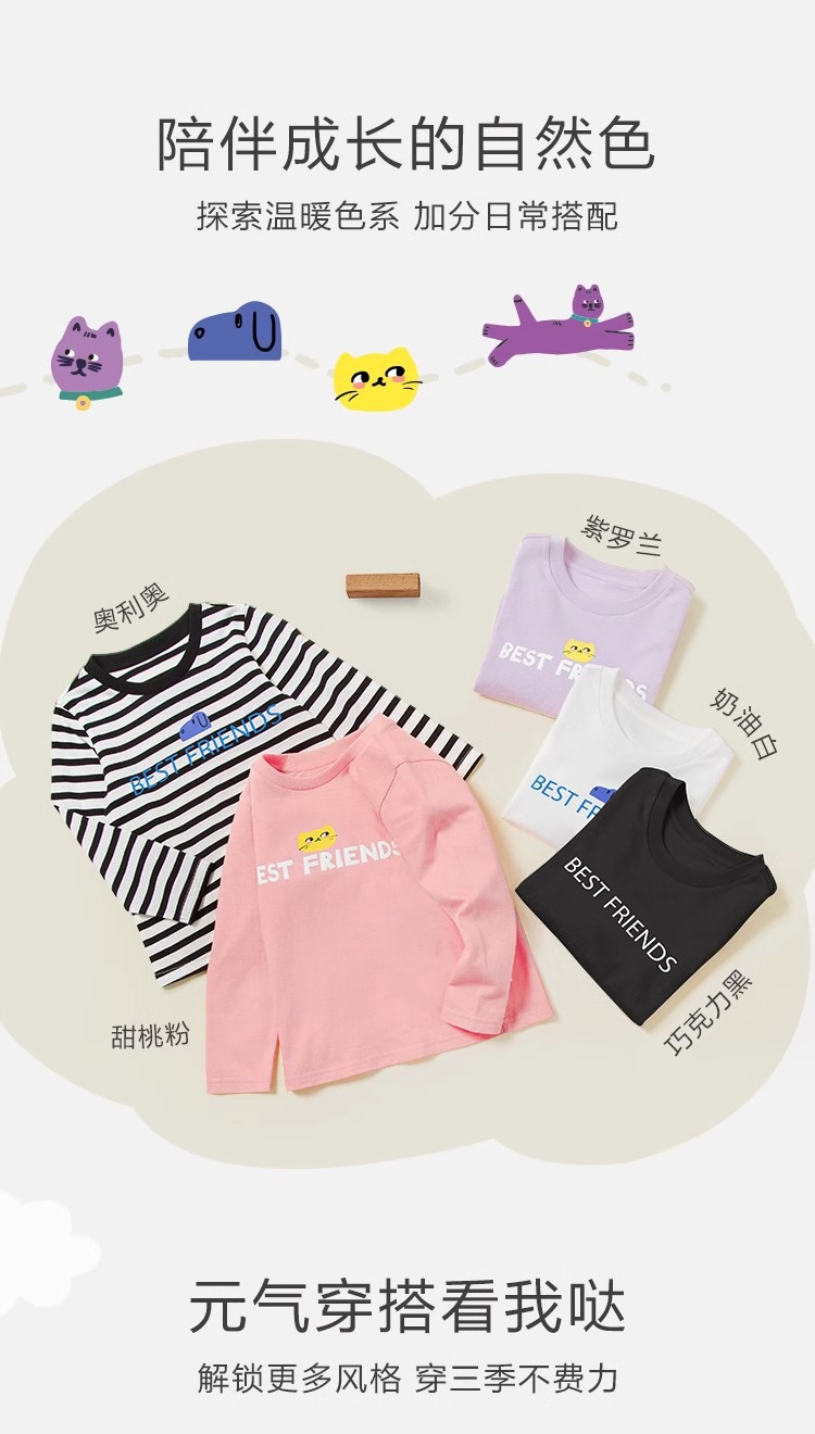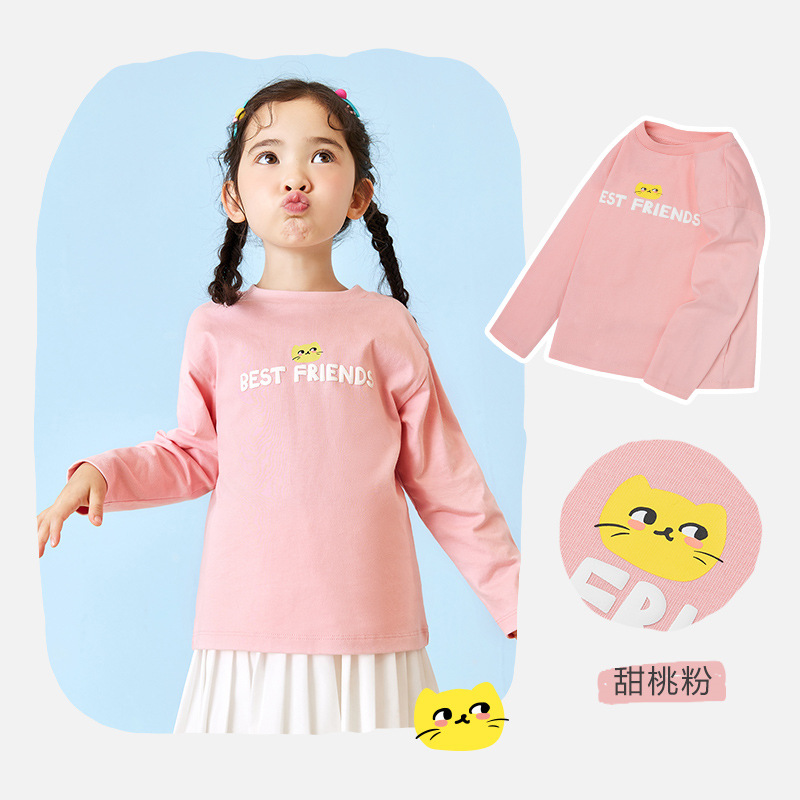 소녀 긴팔 티셔츠 순면 아기베이스 셔츠 올매치 2024 봄 새로운 라운드 넥 만화 인쇄 탑 한국 스타일스토어 가기