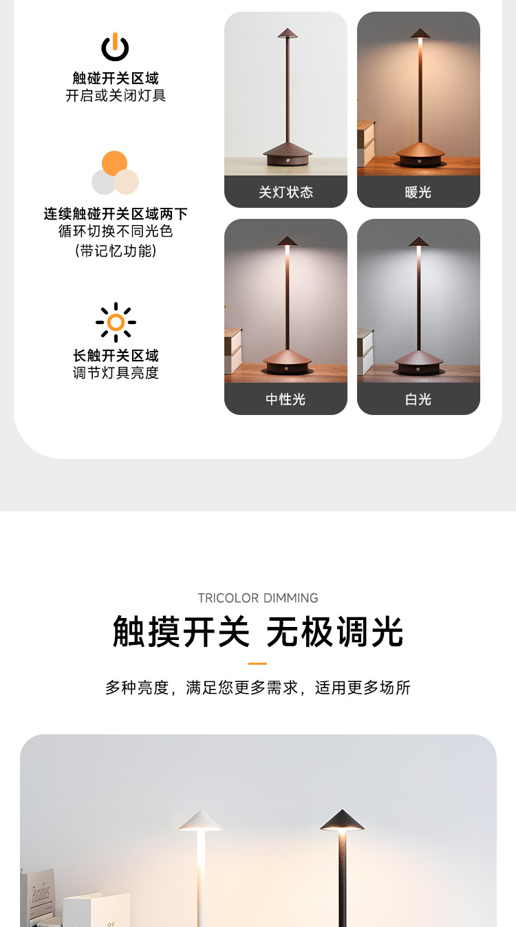 뾰족한 버섯 램프 대외 무역 침실 야외 바 미국 서부 레스토랑 방수 화살표 터치 충전 대기 테이블 램프스토어 가기