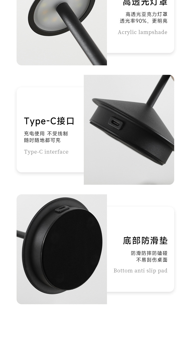 뾰족한 버섯 램프 대외 무역 침실 야외 바 미국 서부 레스토랑 방수 화살표 터치 충전 대기 테이블 램프