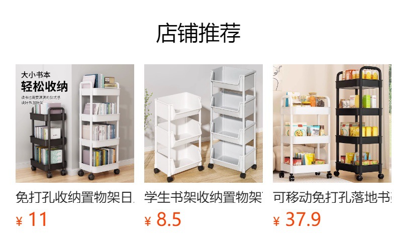 이동식 무타공 바닥 책장 어린이 장난감 수납 선반 가정용 간식 선반 간편한 소형 카트 수납 선반스토어 가기